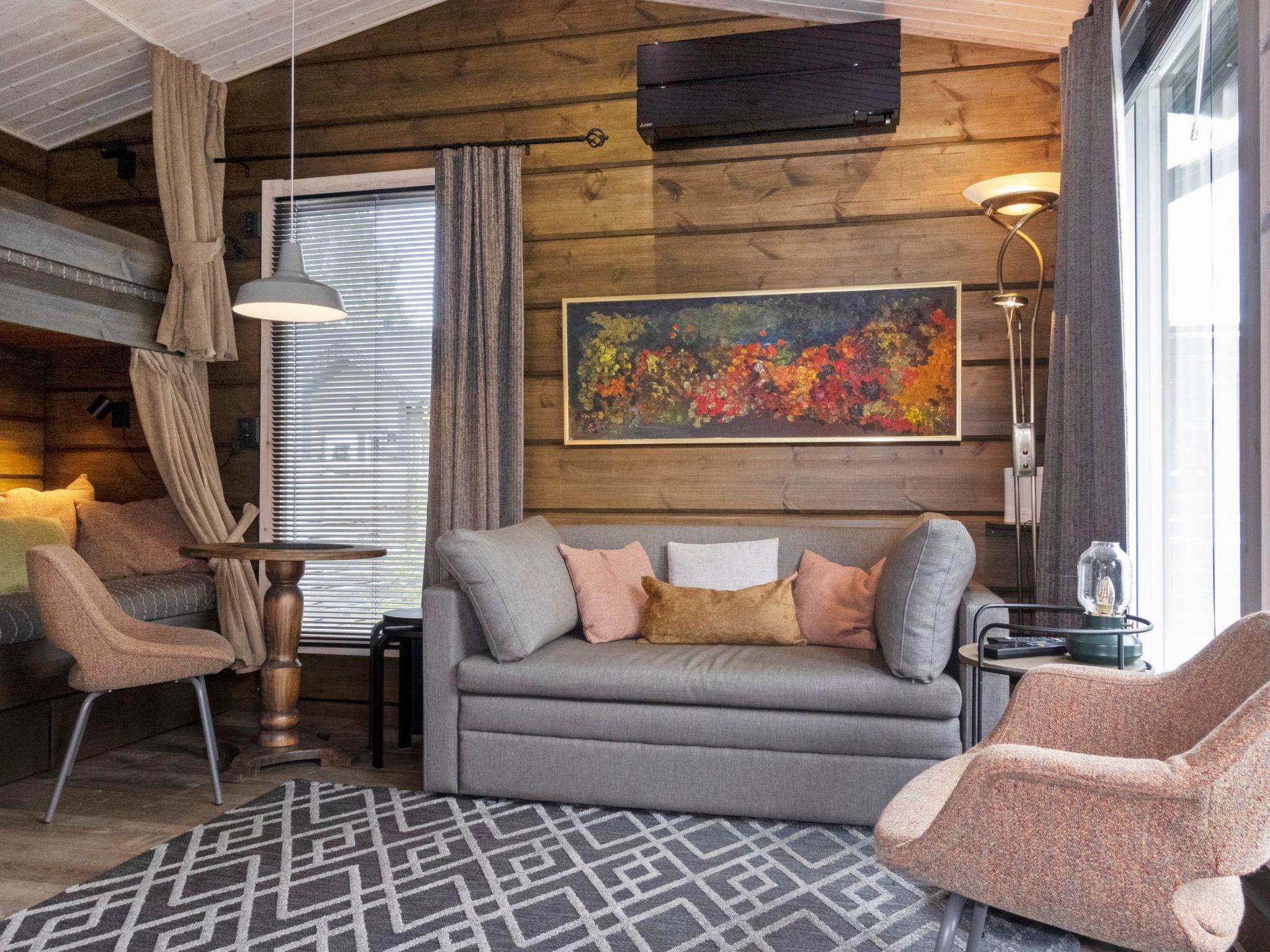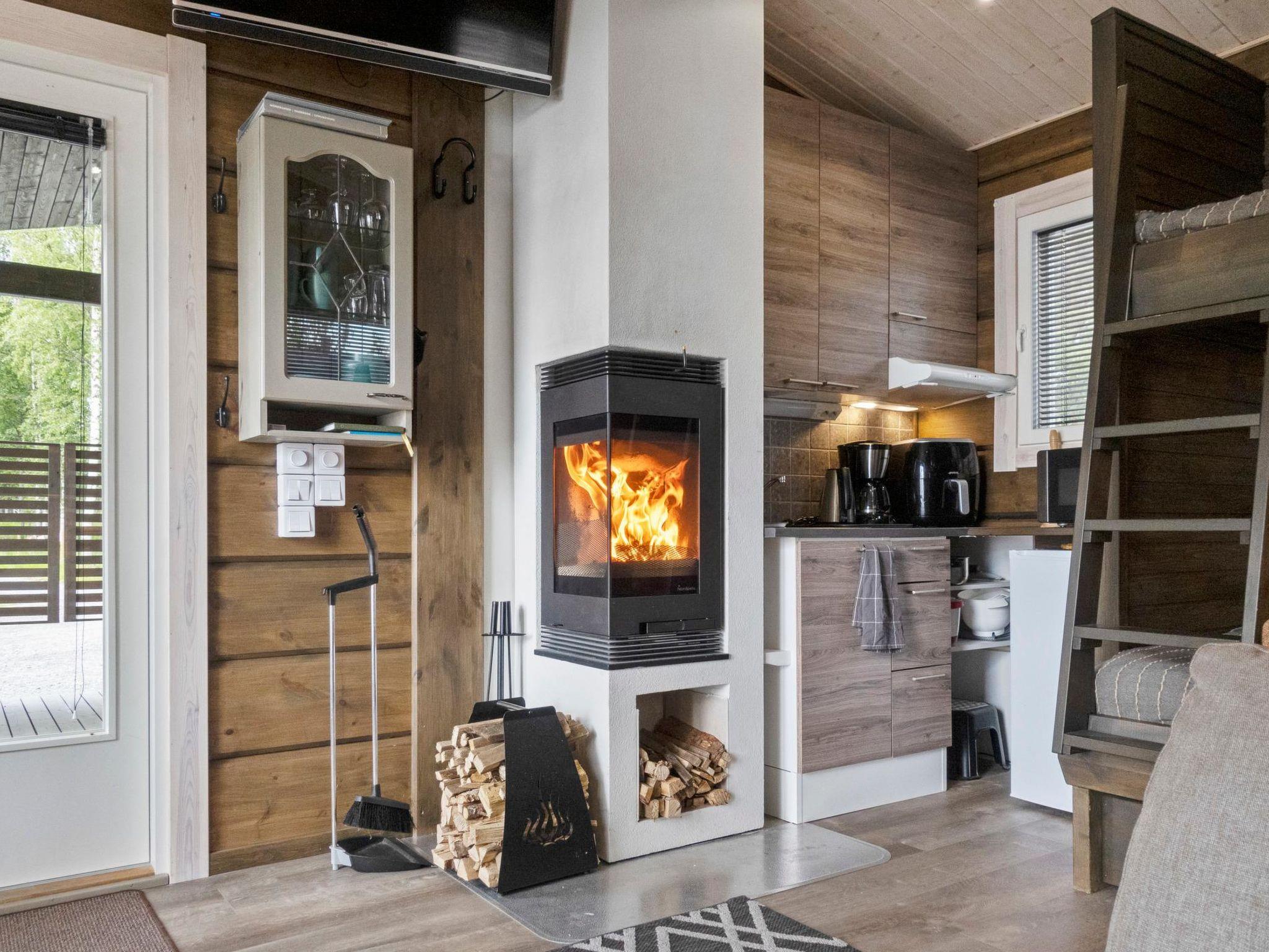 Log cabin, built in 2021. Living room/kitchen with bunk bed (lower bed 120 cm wide) and sofa bed. Sauna with wood-burning sauna stove, washroom/WC in connection with the sauna, access to the sauna via the porch.