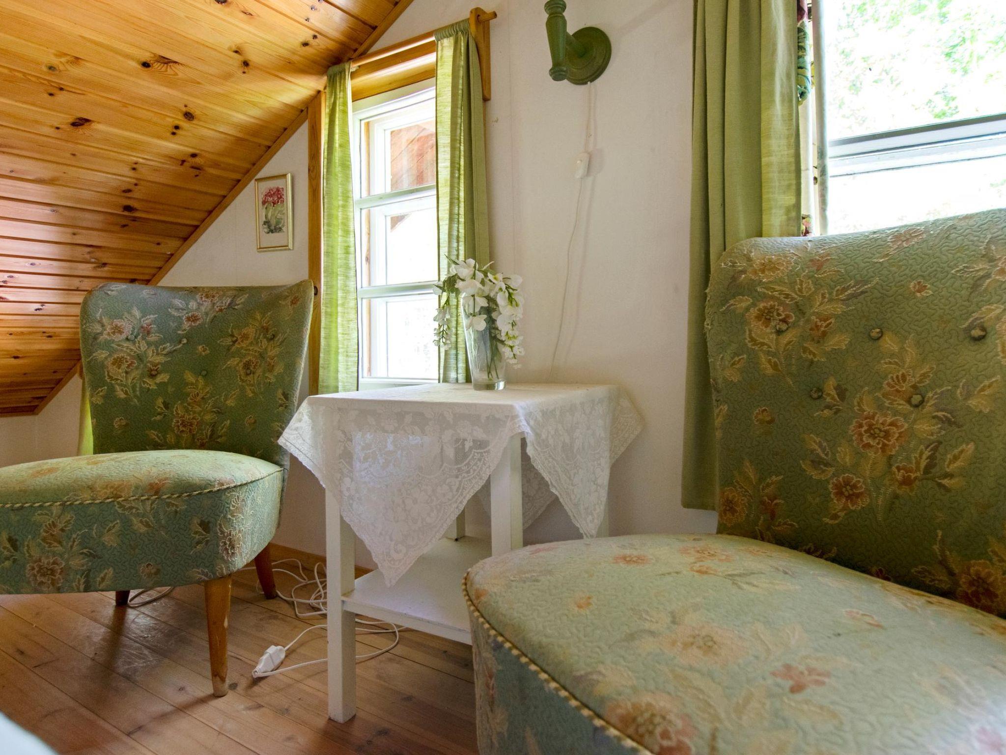 Cottage made from old log building and enlarged in 2004, living room/ kitchen with one extra bed (height 186-189 cm), living room, living room's alcovepart 2 beds, washroom, sauna, upstairs living room, bedroom 2 beds, small bed room with 2 mattresses, kitchenette, large balkony.