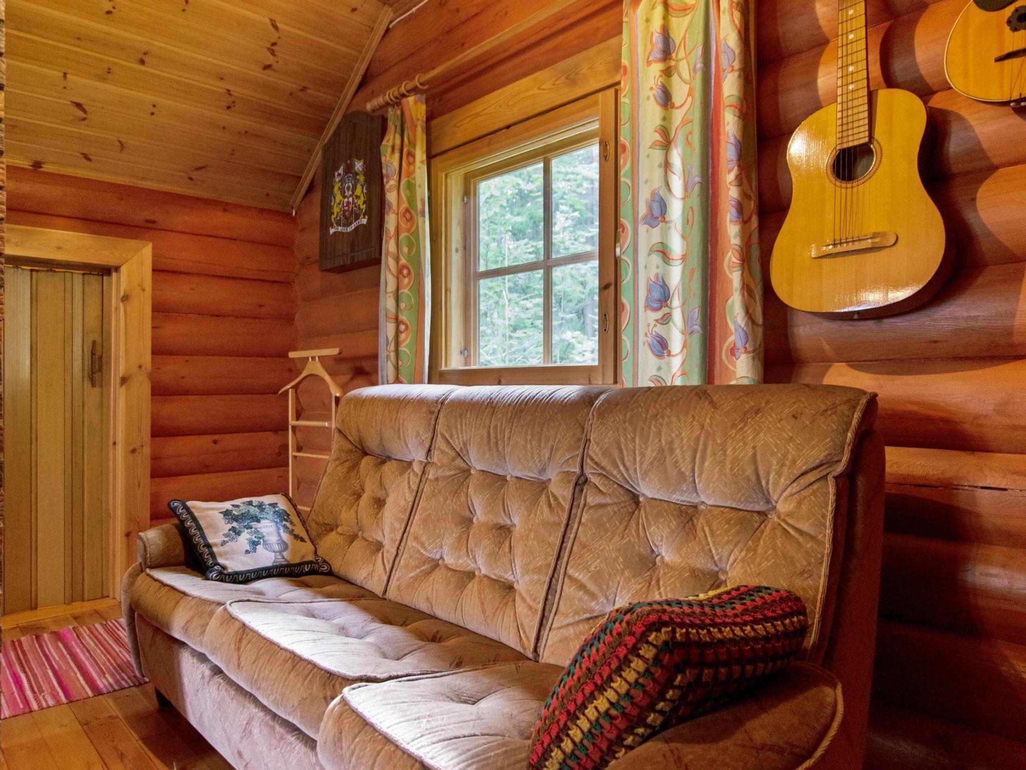 Log chalet 2000, living room/kitchen extra double bed, washroom with WC, roofed terrace on 3 sides. In upstairs there are lounge area, balcony and double bed. Cottage is made of half-round logs and tastefully painted. In kitchen a wood-burning stove with an oven is a useful extra.