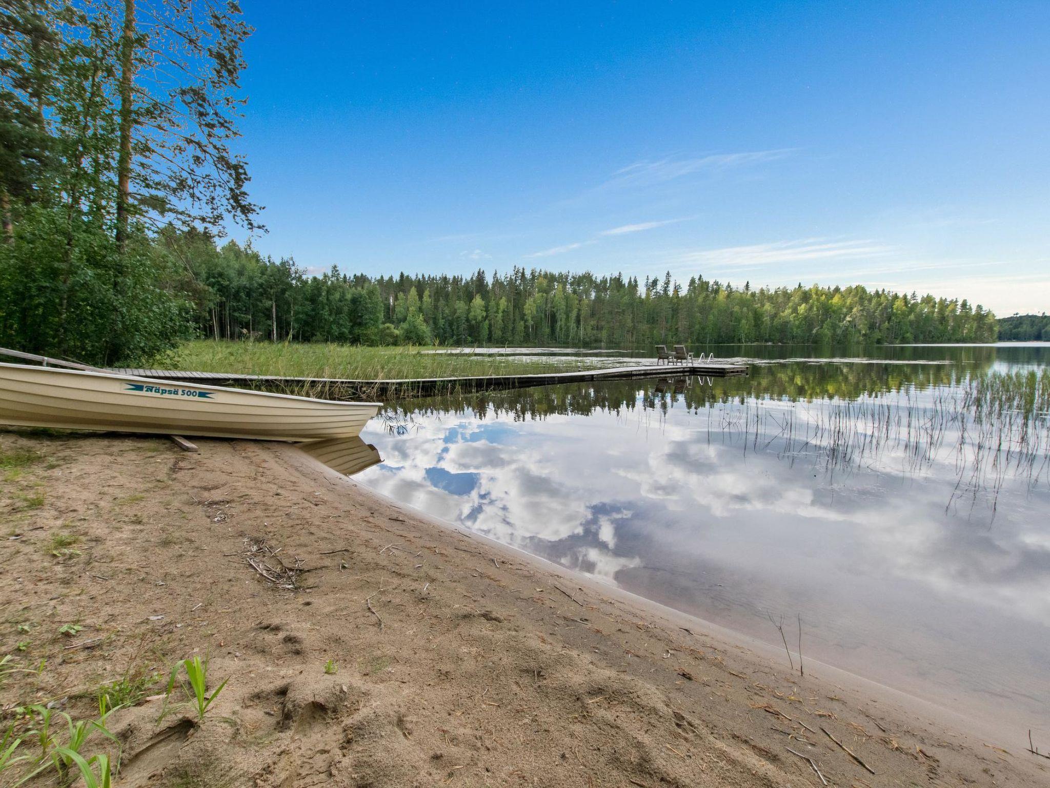 82 km north-west of Jyväskylä, Iso-Löytänäjärvi 20 m (length 5 km, a width of 1 km), hard, sandy, gently sloping beach, own boat.
