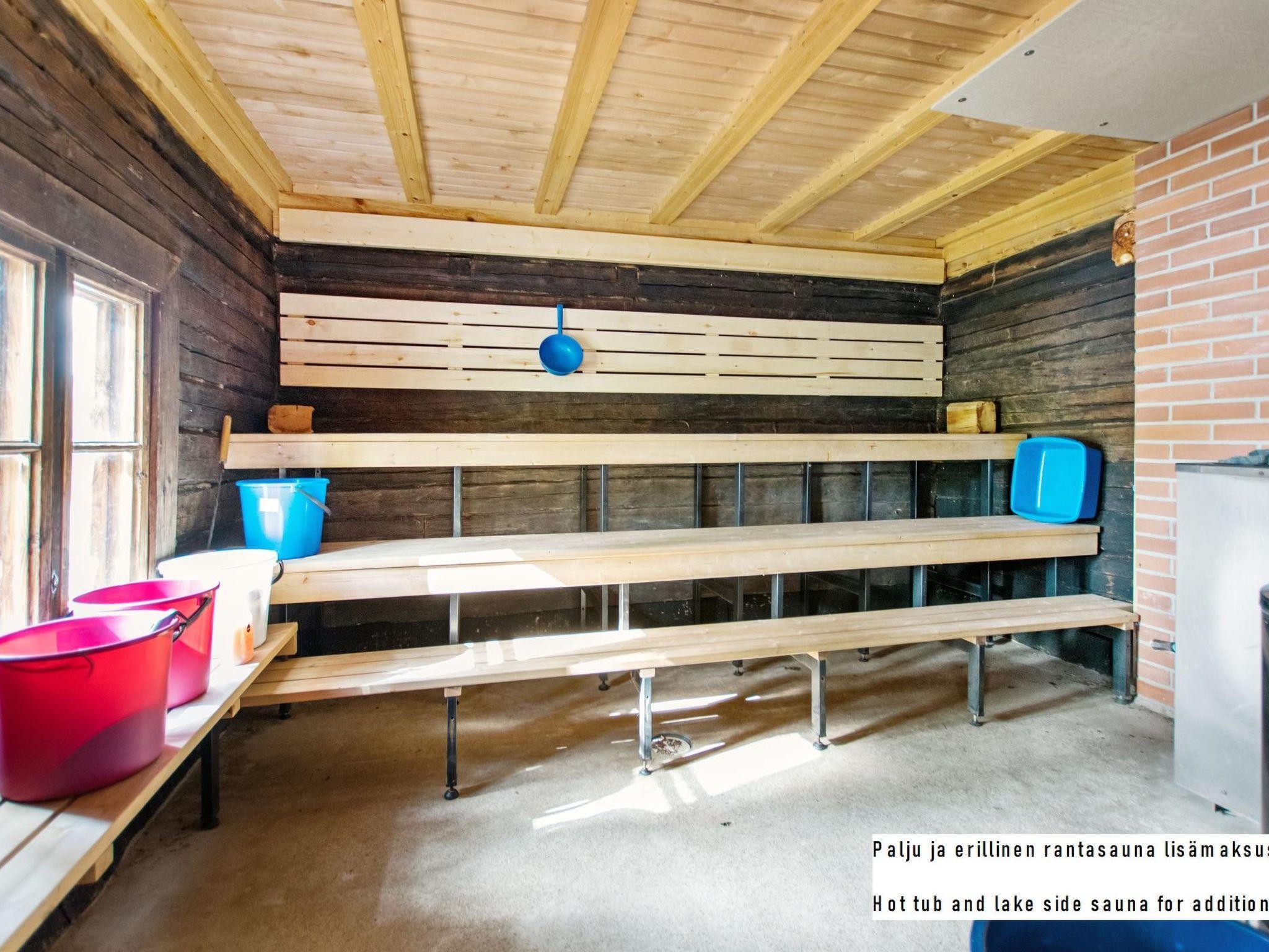 Owner rents out a lakeside sauna and pre-heated hot tub for extra price 150 e/one use (winter time 200e), distance about 200 m from the cottage. Lakeside sauna and hot tub can be rented if clients of the other cottage haven't yet rent it.