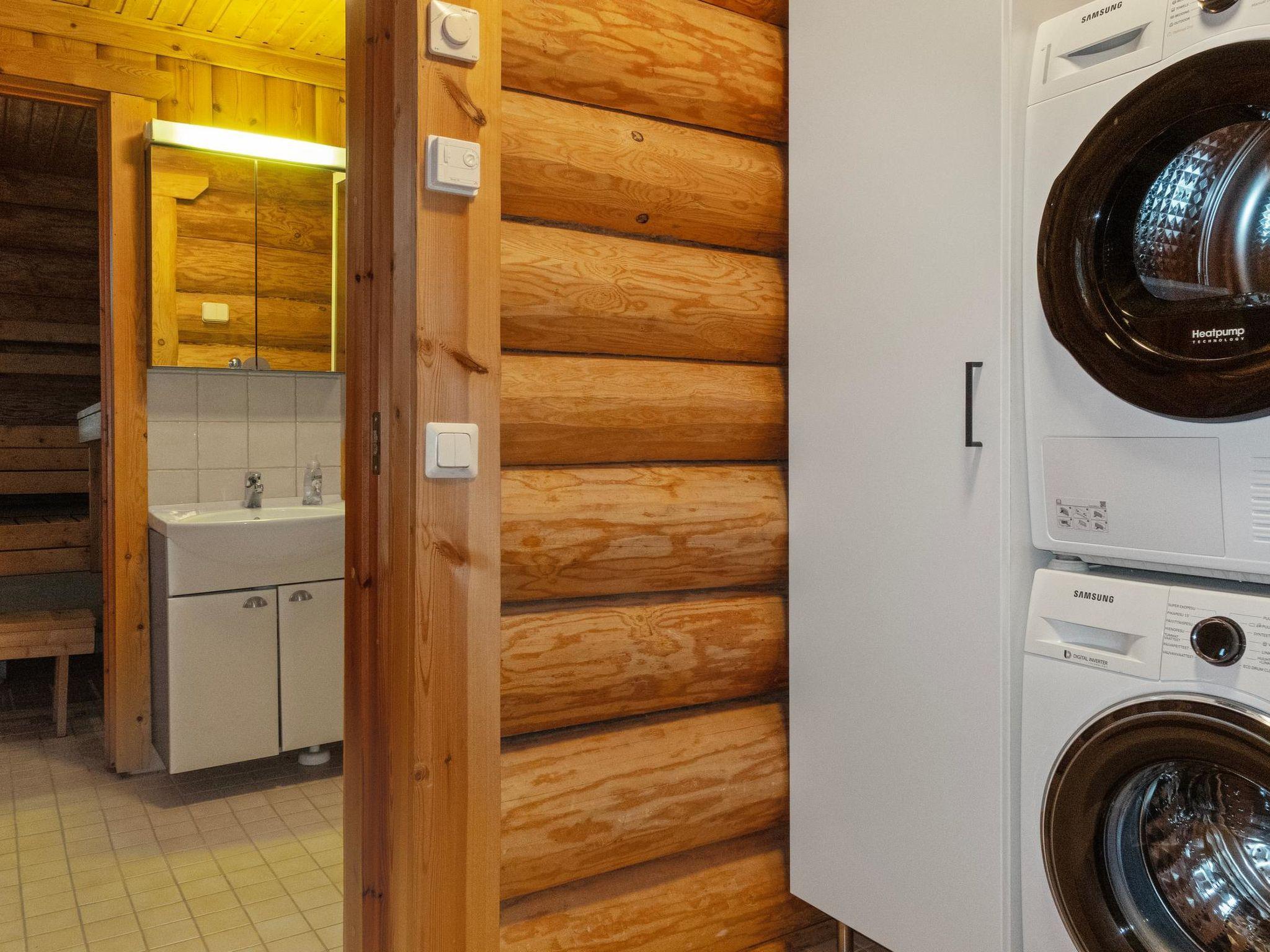 The dressing room contains a washing machine and a tumble dryer. The bathroom has a WC and a shower cubicle. The large sauna is electrically heated.