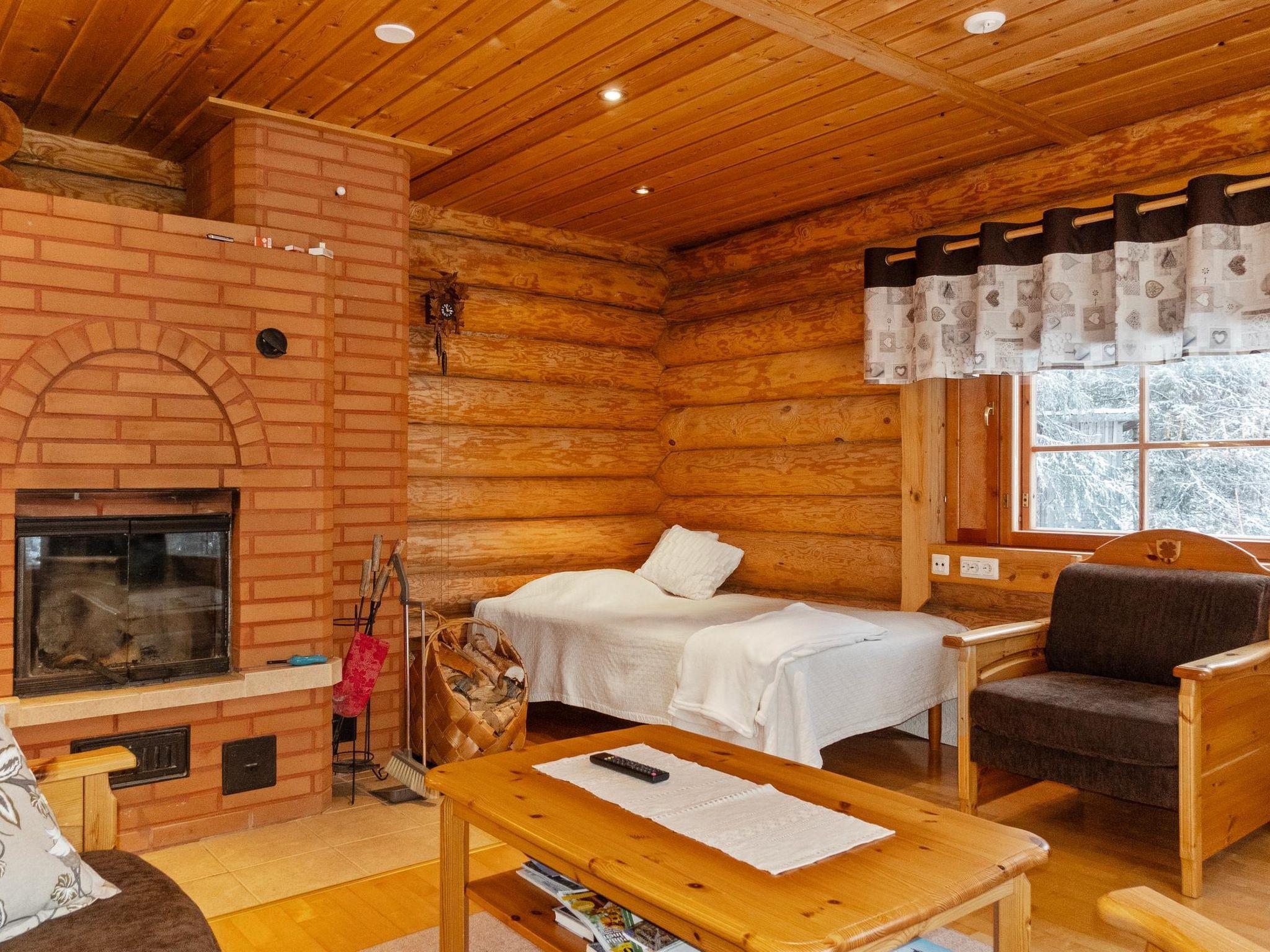Handcrafted from logs, the cabin was completed in 2002. The cabin has one bedroom with a double bed. The spacious living area includes two 120 cm wide beds and a sofa bed. There is also an additional bed under the sofa, and the sofa itself serves as a bed. Additionally, the living area features a large fireplace.
