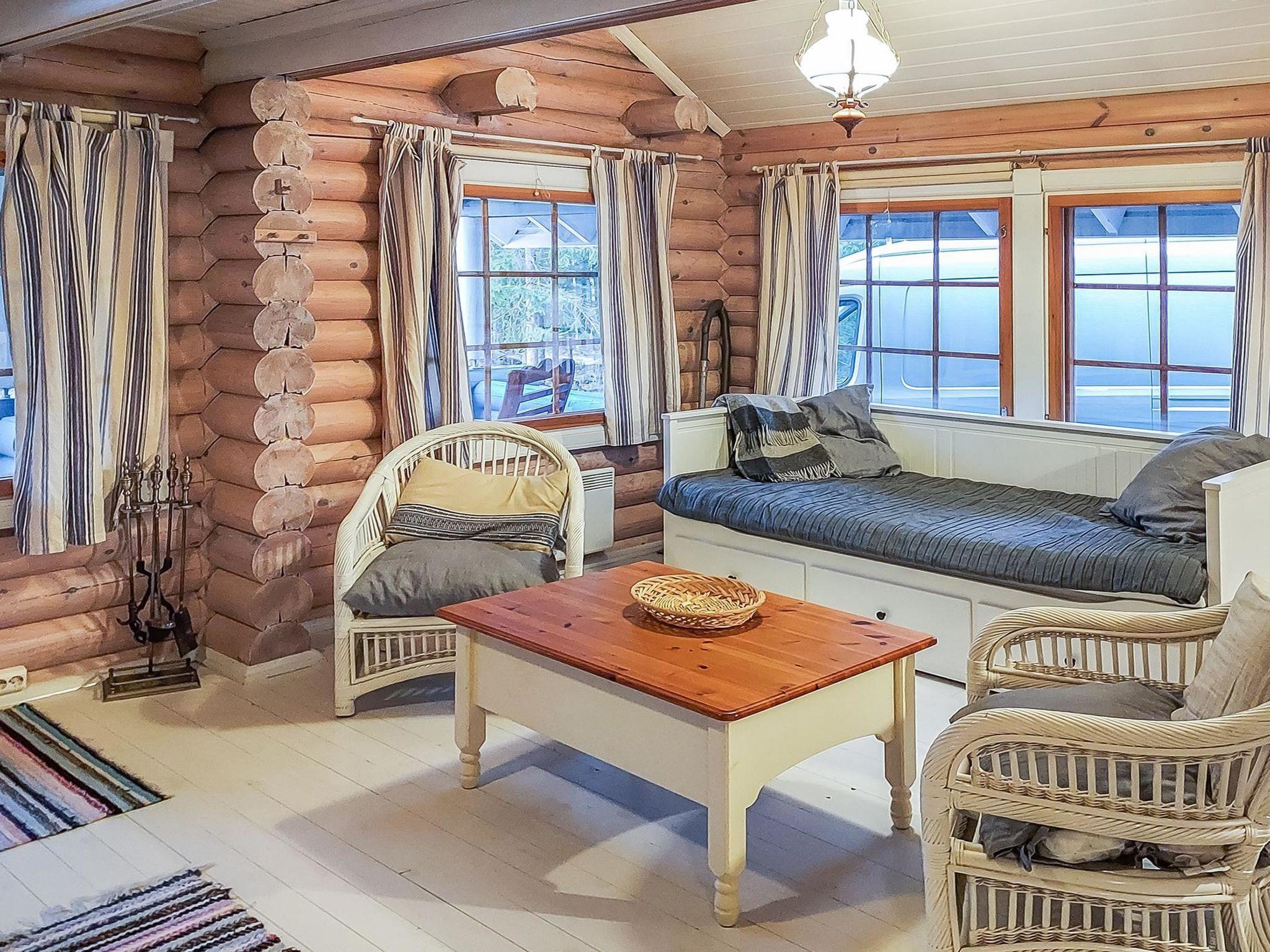 Log cottage 2003, living room/ kitchen extra bed, sleeping alcove 2 beds, sleeping loft 2 beds and 2 mattresses, washroom, sauna, open porch and balcony. Own well.