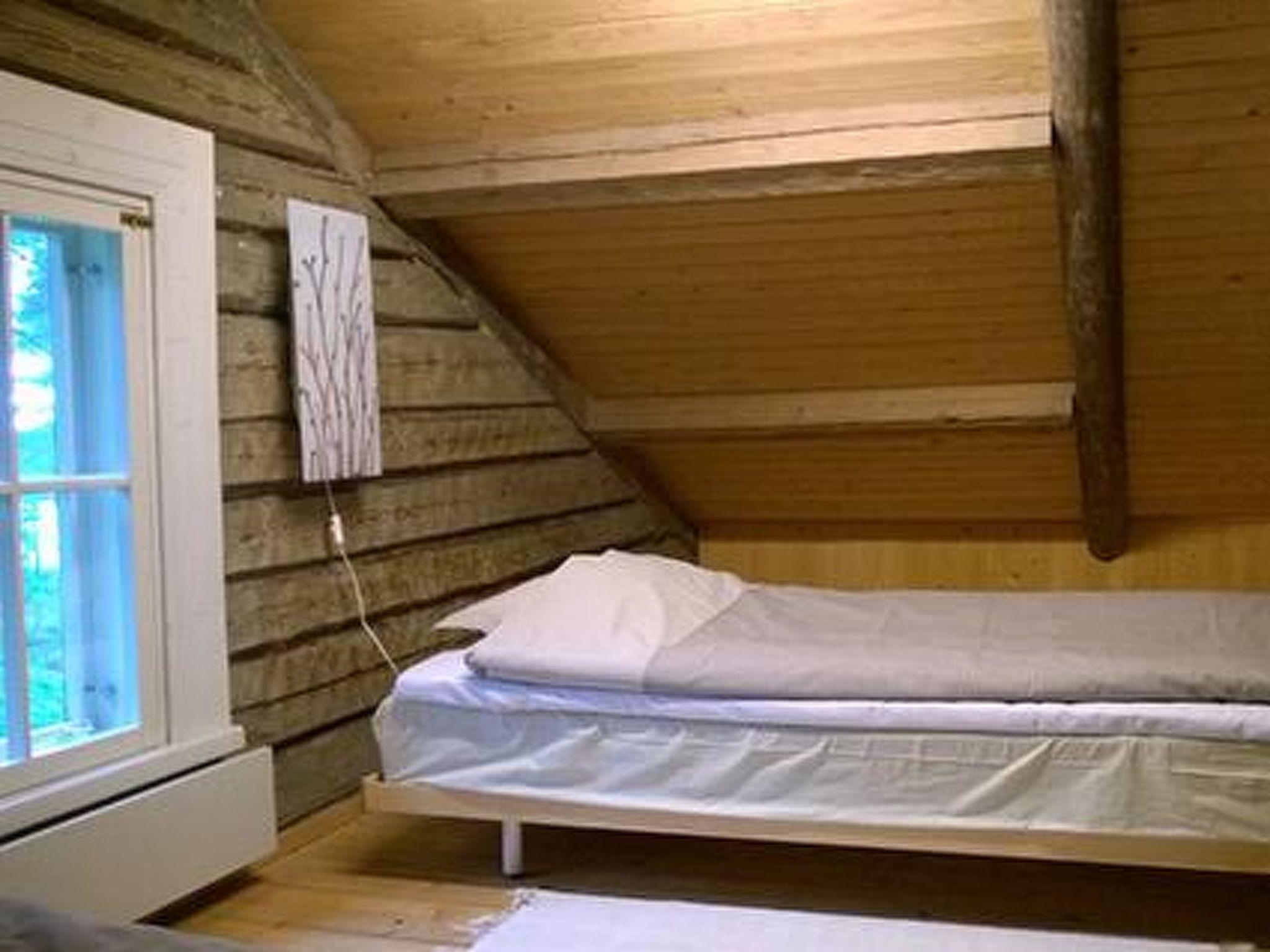 Log cottage 1986, living room/kitchen, bedroom 2 beds, upstairs 2 sleeping alcoves closed off by curtains, 3 beds in each (exceptionally in this property, alcoves are included in the number of bedrooms). Additionally 2 extra beds upstairs glazed and open porch.