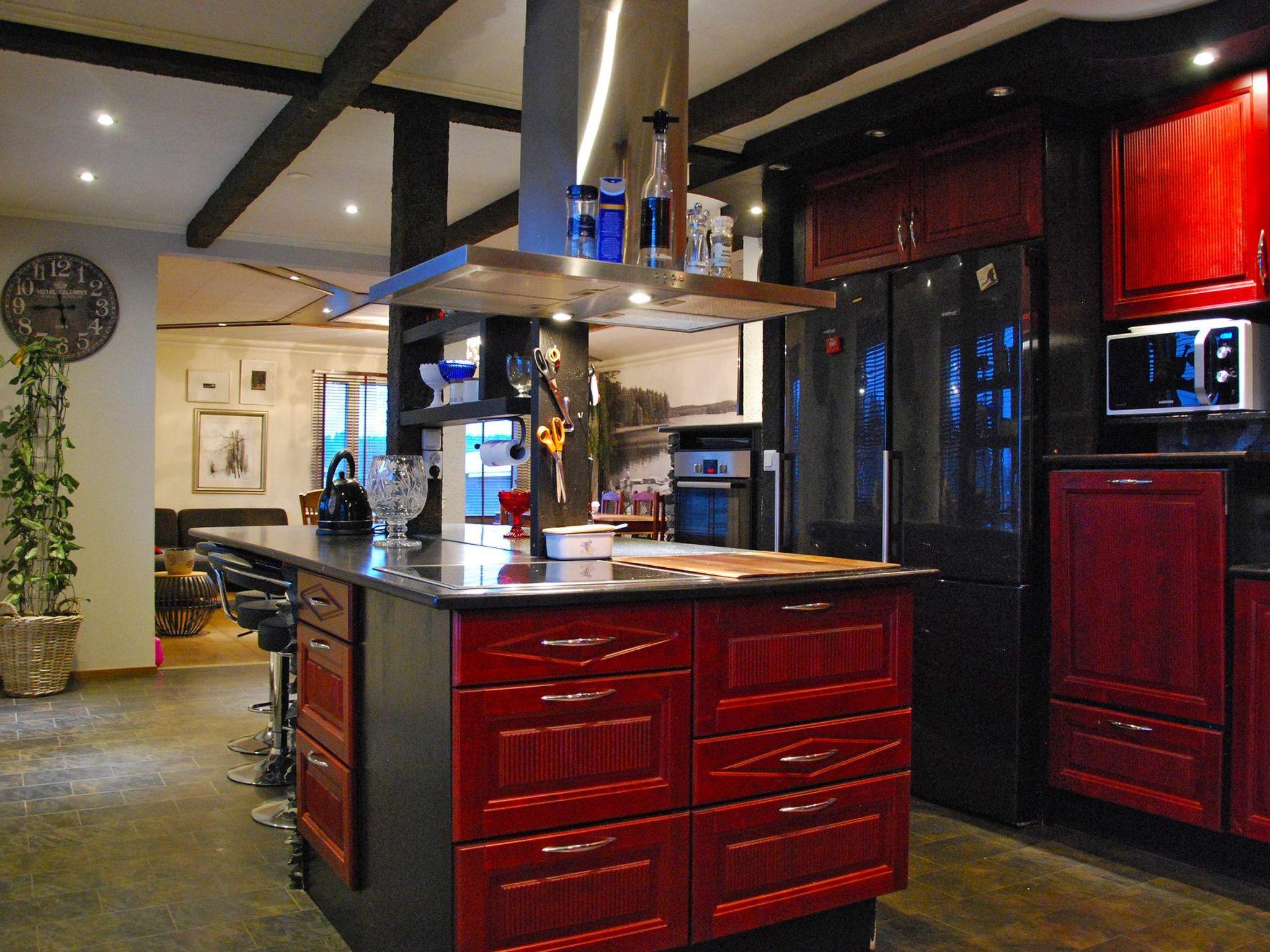 This impressive and spacious house with a swimming pool is located in Sastamala, just 45 km from Tampere. Inside, the pool area features a 6×3 m swimming pool (water temperature approximately 22°C, depth around 1.3 m, deepening to about 1.45 m at one end), a small cold pool, a spacious sauna, and a bathroom with two showers. There is also a heat-storing fireplace and a living area with amenities such as a bar counter.