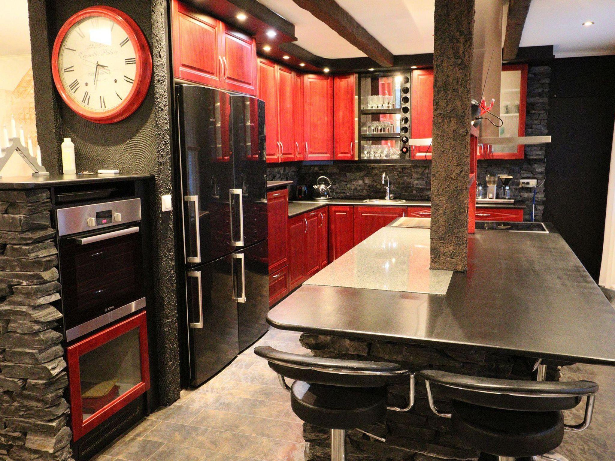 The main bedroom downstairs has a double bed and a cozy LED fireplace. On the upper floor, there are two bedrooms, each equipped with three beds: a double bed and a single bed. The upper floor hall features a sofa bed for two. Wireless internet and a Bluetooth amplifier are available throughout the house.
