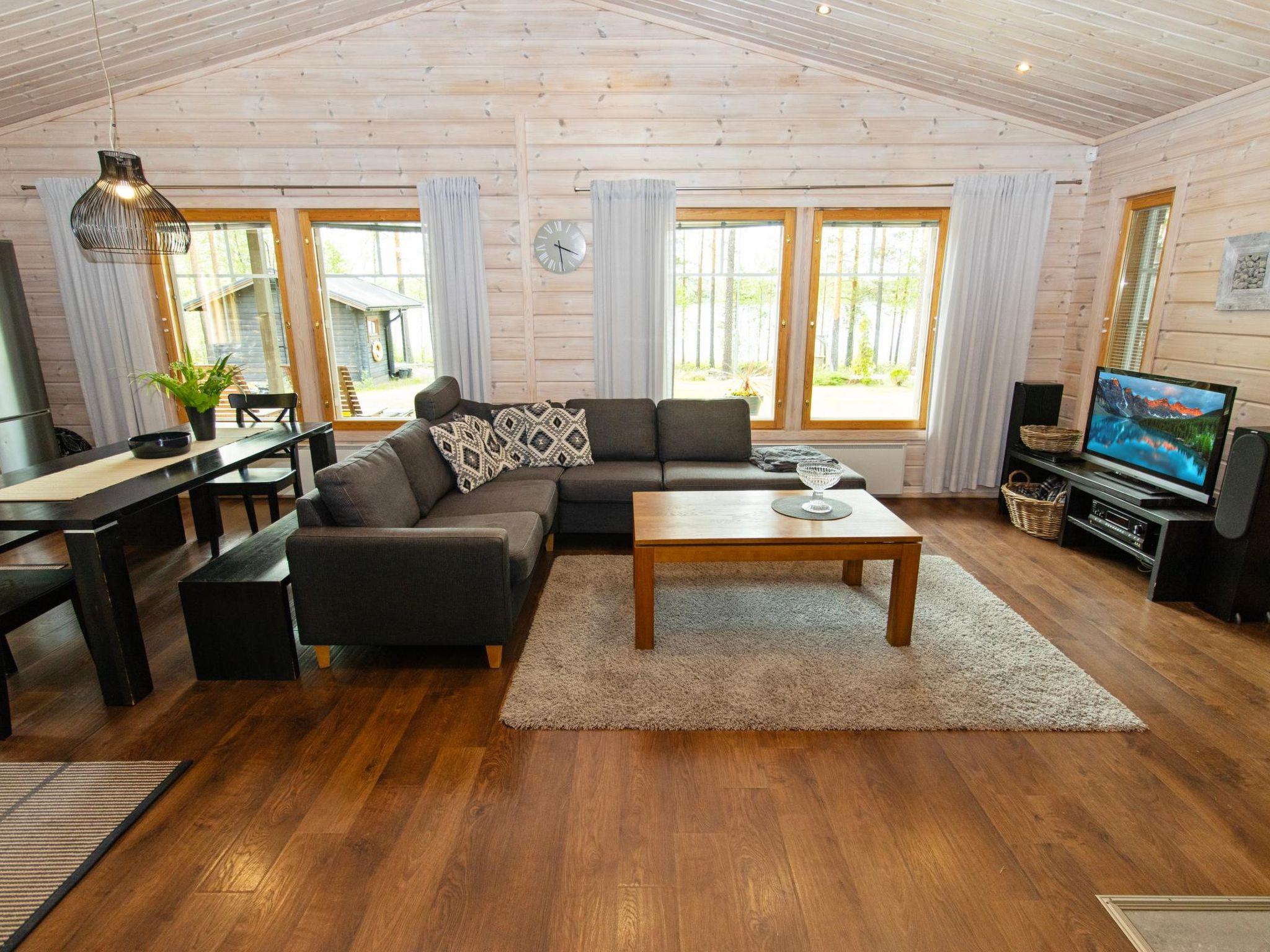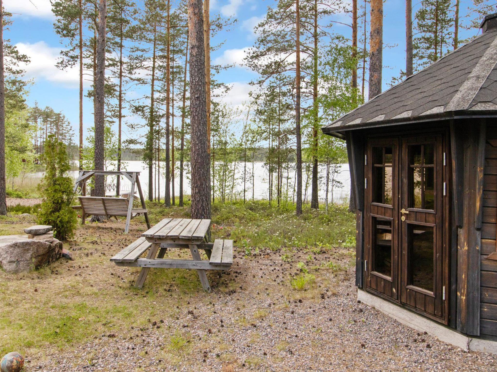 The property includes a separate, atmospheric lakeside log sauna, where you can enjoy the authentic heat of a wood-burning sauna stove. Just a few steps from the sauna lead you to your private pier — a perfect spot for a refreshing morning swim. The peaceful location and high-quality finish make this cabin a superb choice for a leisurely escape amidst nature.