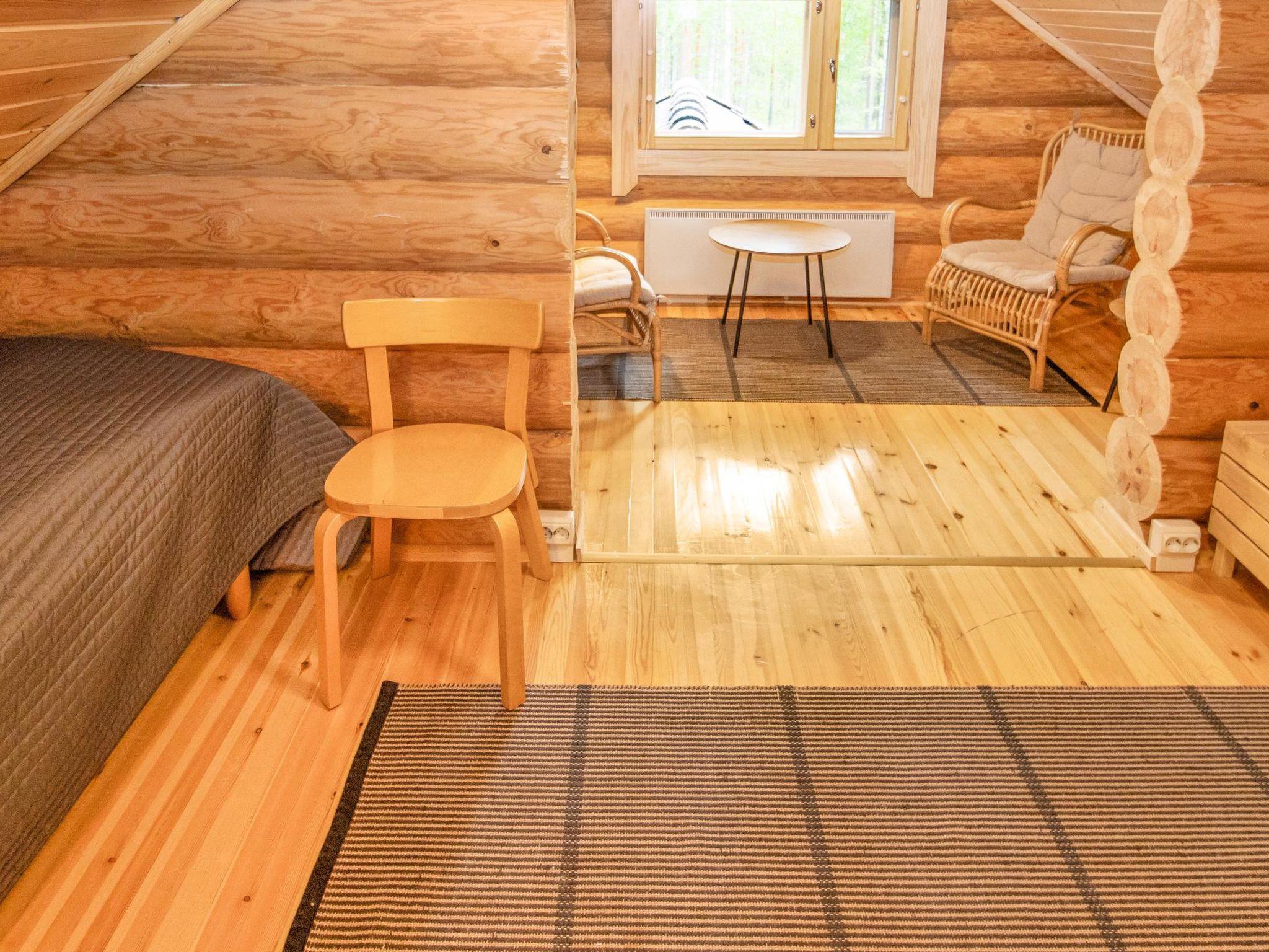 The property includes a separate, atmospheric lakeside log sauna where you can enjoy the authentic warmth of a wood-burning sauna stove. Just a few steps from the sauna lead you to your private pier – perfect for a refreshing morning swim. With its peaceful setting and high-quality finish, this cabin is ideal for both leisure and remote work retreats in the heart of nature.
