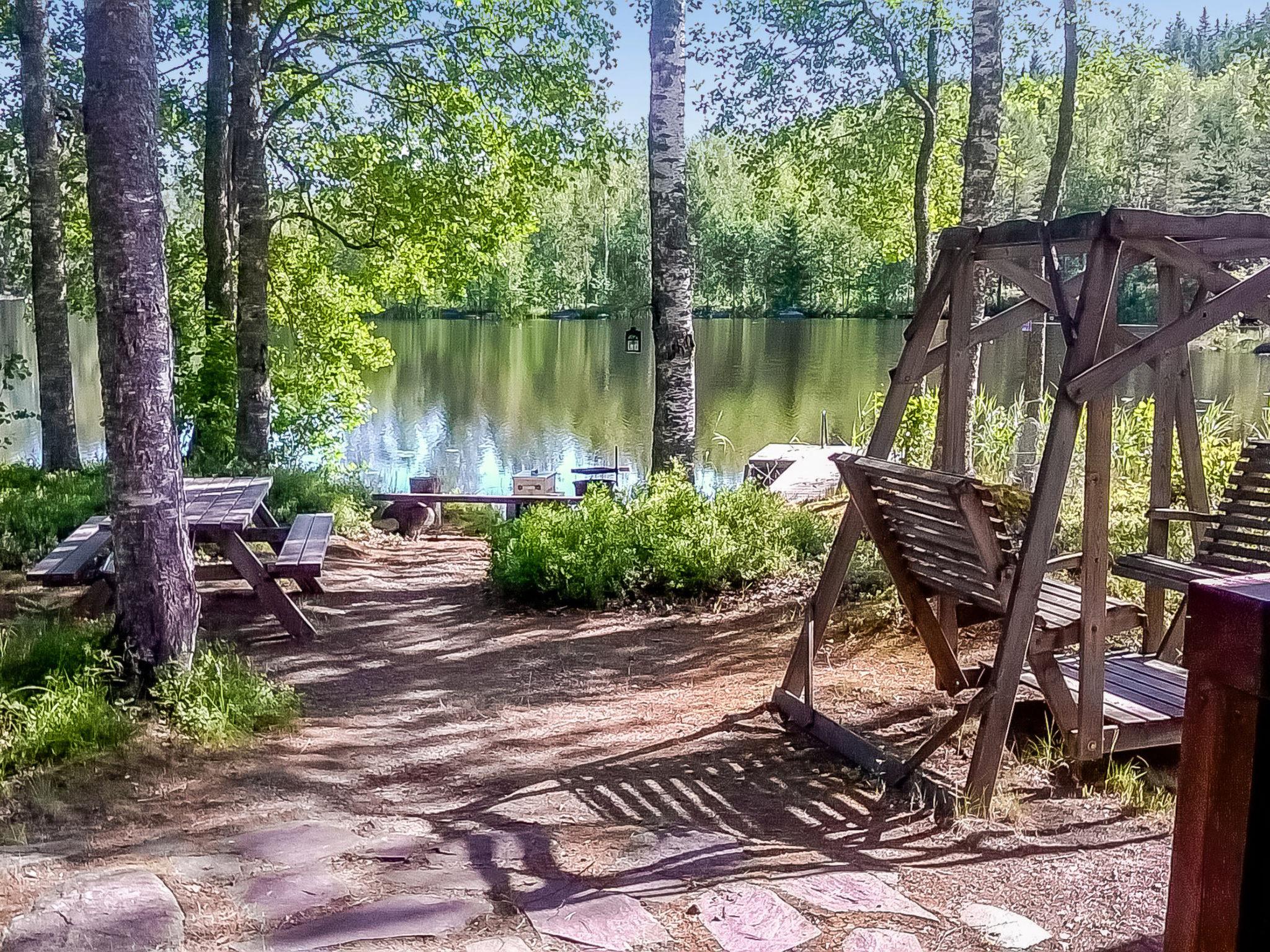64 km north of Savonlinna. Lake Ruokojärvi 10 m (length 7 km, breadth 1 km), shallow water, sandy bottom. Pier, own boat at lake Ruokojärvi. Lean -to at lake Saimaa, distance 2.5 km. Lake Saimaa 2.5 km. At lake Saimaa own rowing boat (+ outboard motor for hire). Note! Motor boat in the picture is not for rent or in use.