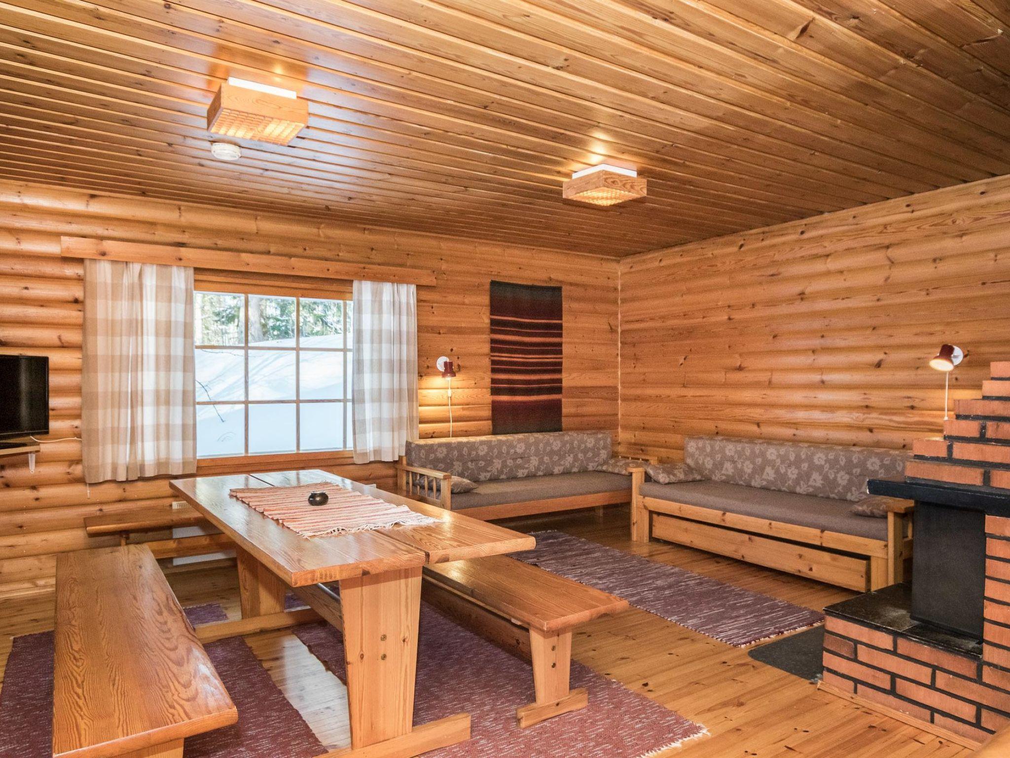Wooden cabin, renovated 1992, kitchenette, 2 bedrooms with 2 beds in each, living room with 2 extra beds (couch), sauna (electric sauna stove), dressing room, open veranda. Drinking water will be fetched from owner.