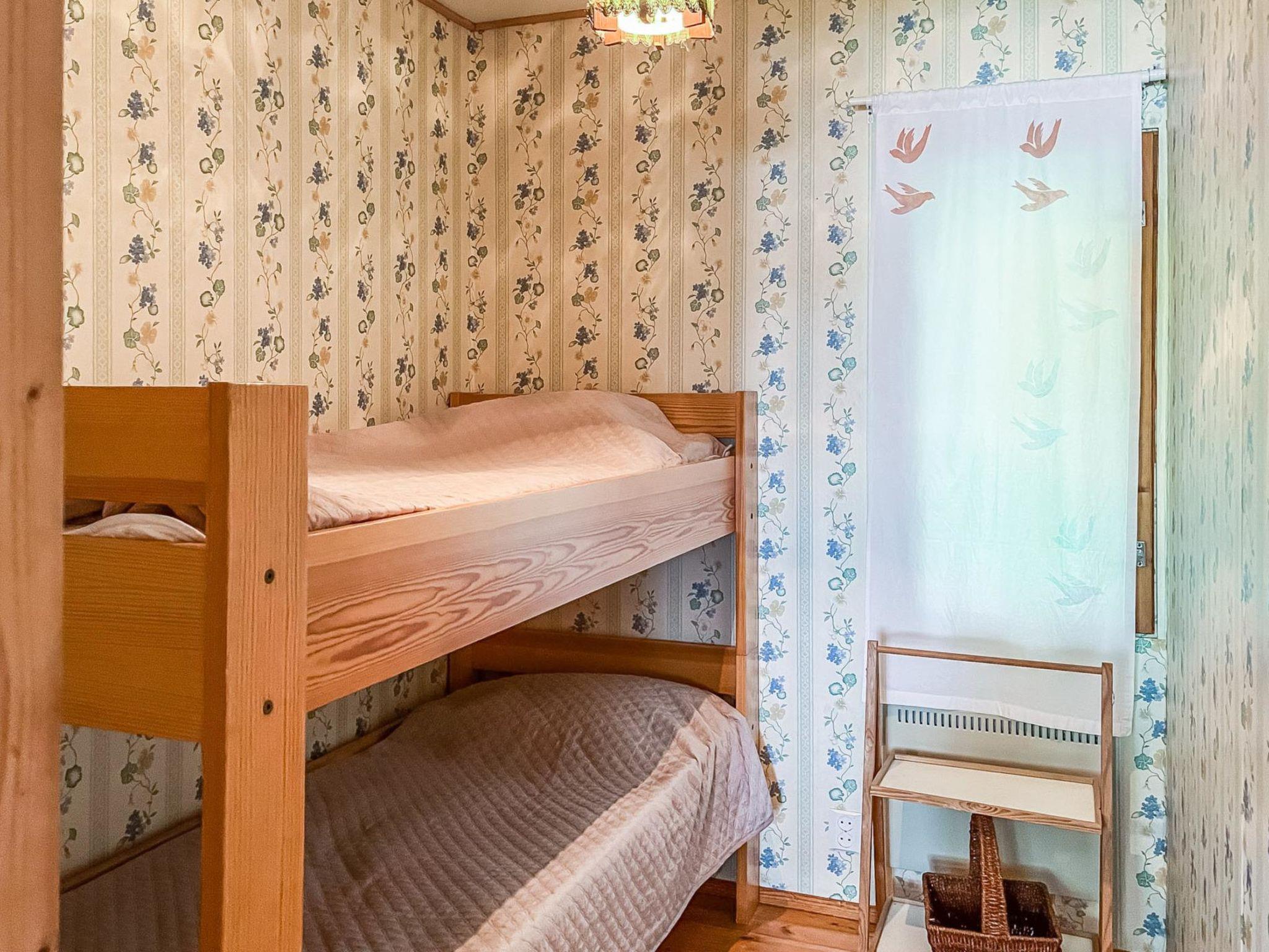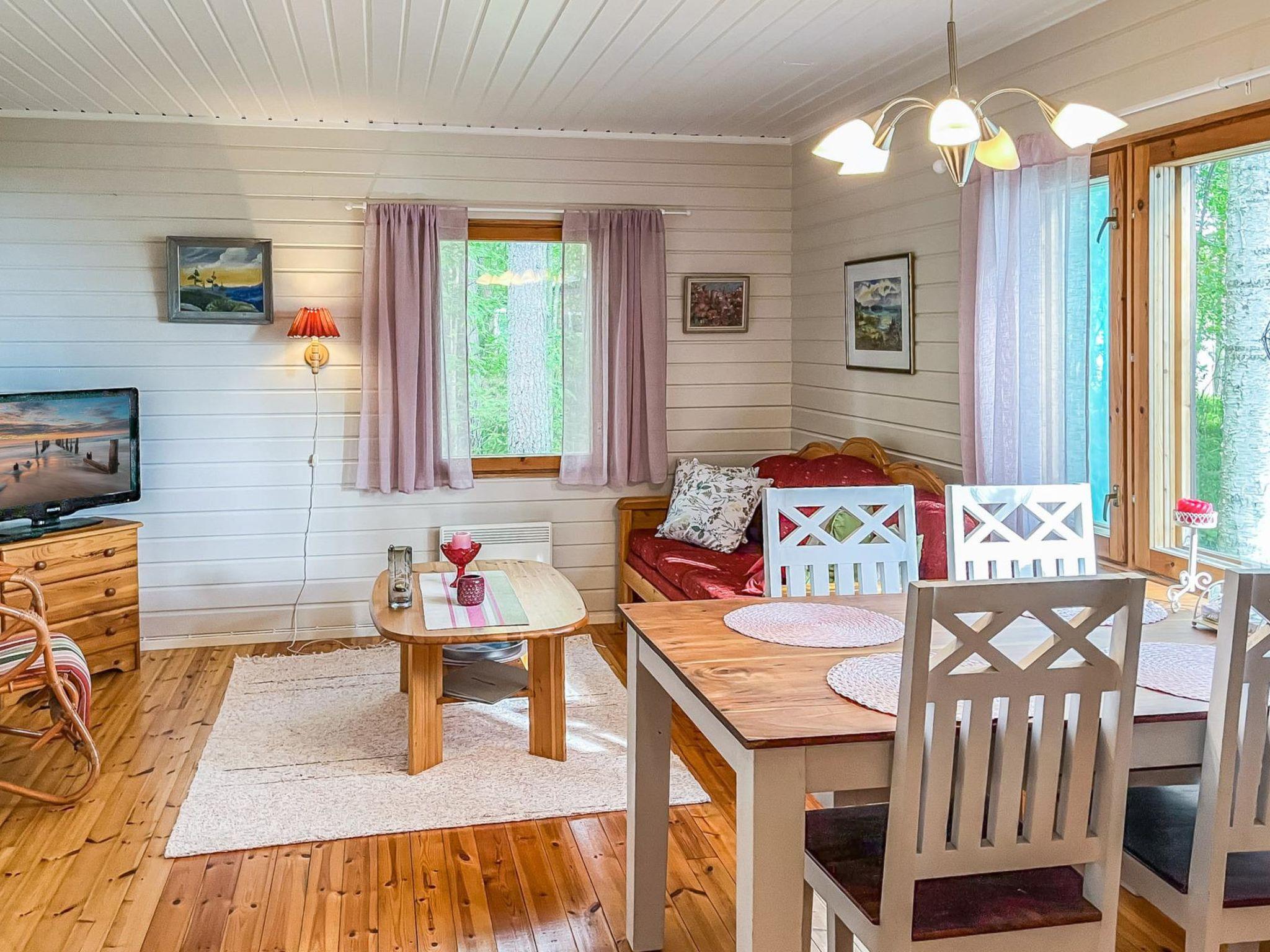 35 km north of Savonlinna. Lake Saimaa/Haukivesi 25 m, shallow water, firm, rocky sandy bottom. Pier, own boat. Wooden cabin 1981, kitchen, living room with 1 extra bed, 2 bedrooms with 2 beds in each, sauna (renovated 2014, electric sauna stove), washroom, open veranda.