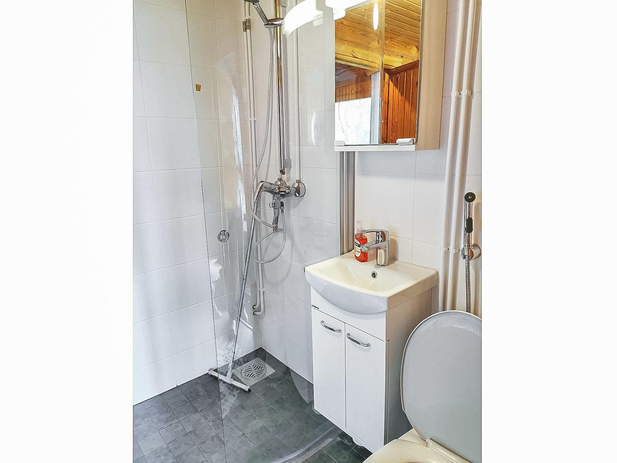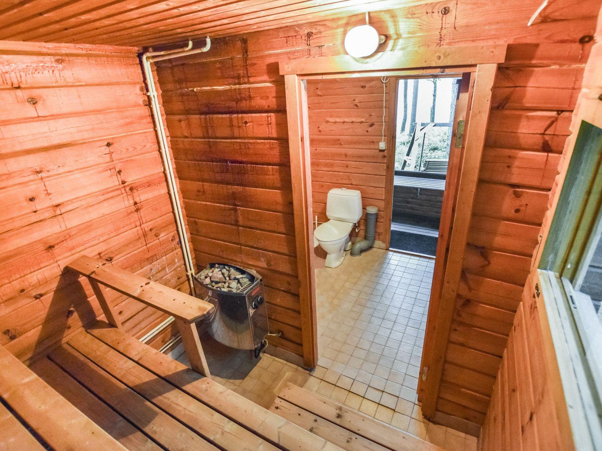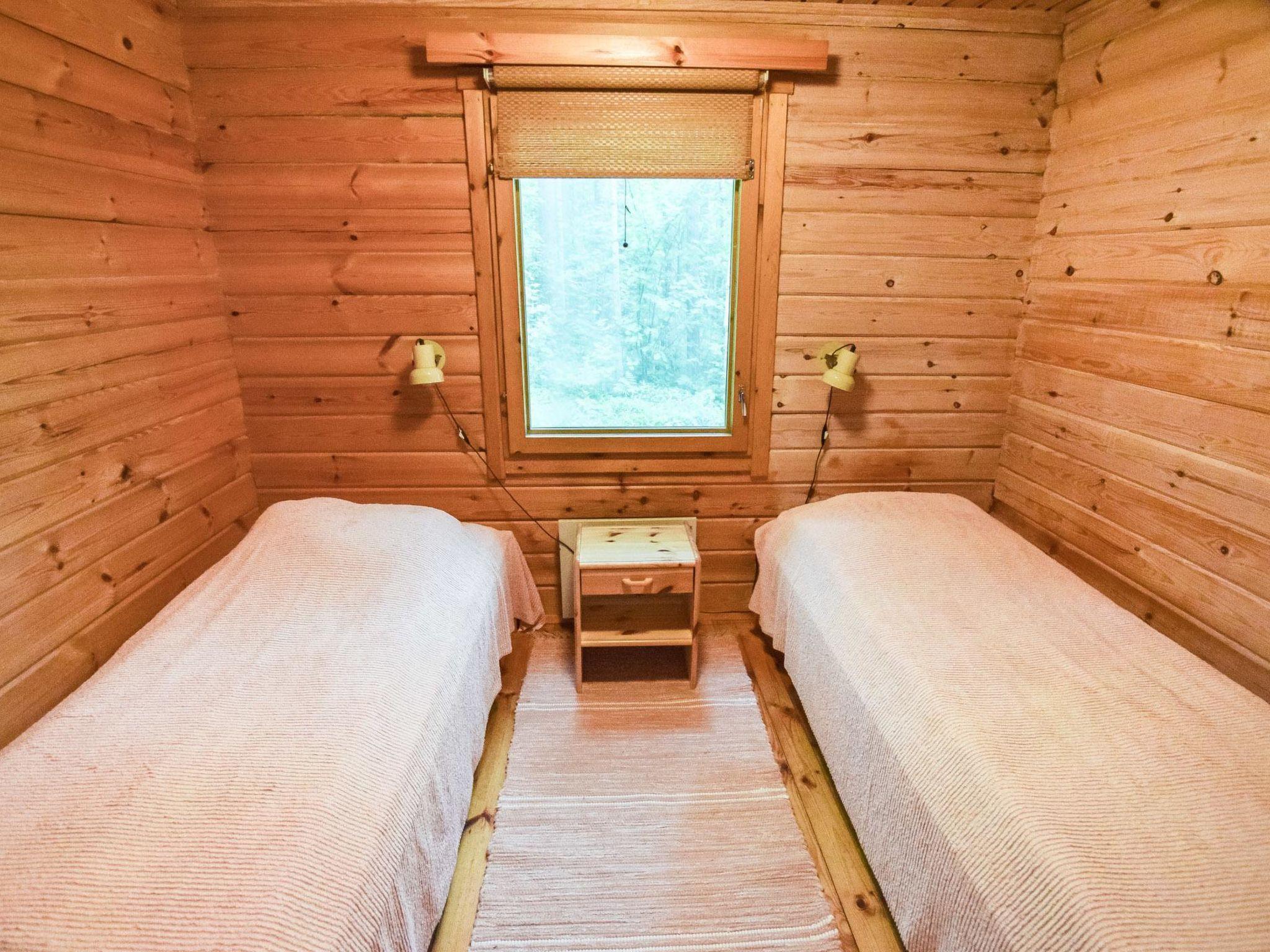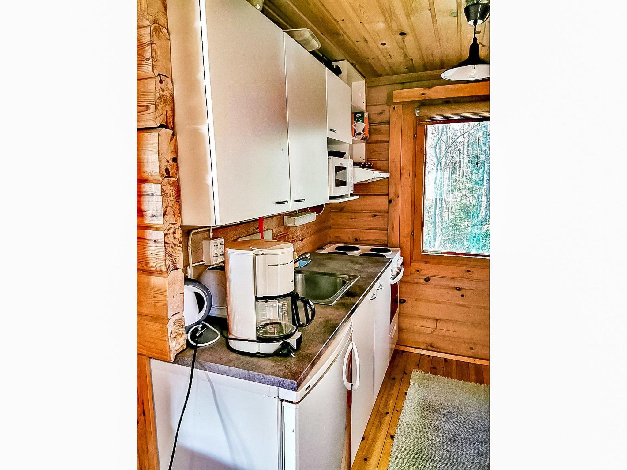 Log cabin 1983, kitchenette, 2 bedrooms with 2 beds in each, living room with 1 bed, washroom, sauna (electric sauna stove), open veranda. Kitchen and washing room renovated 2021.