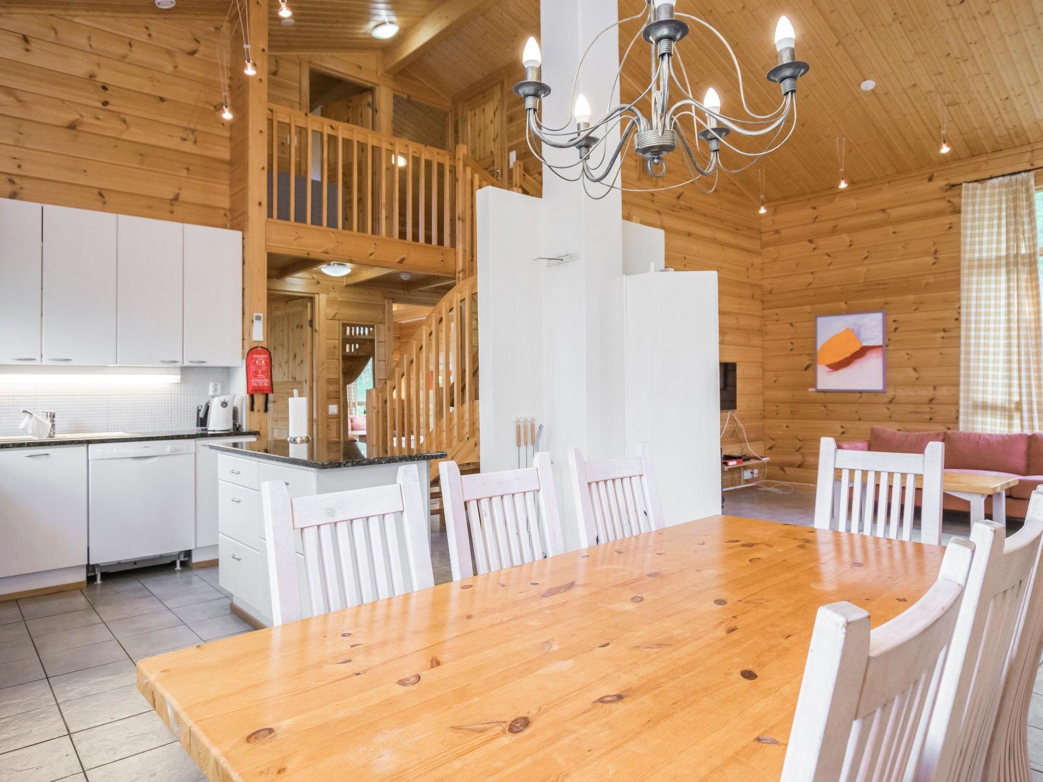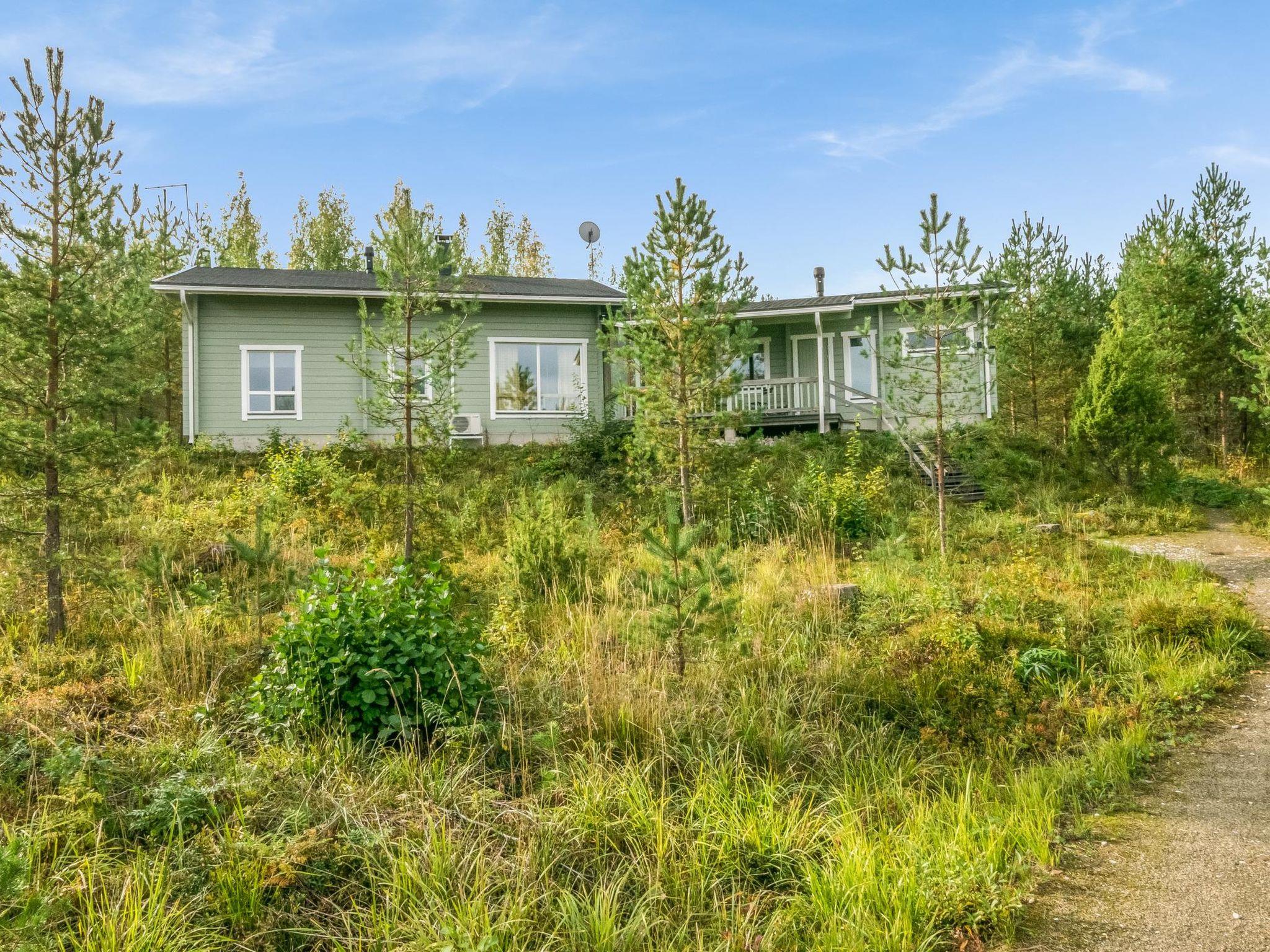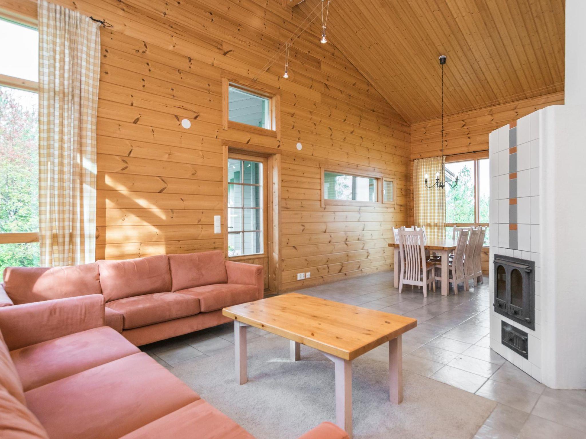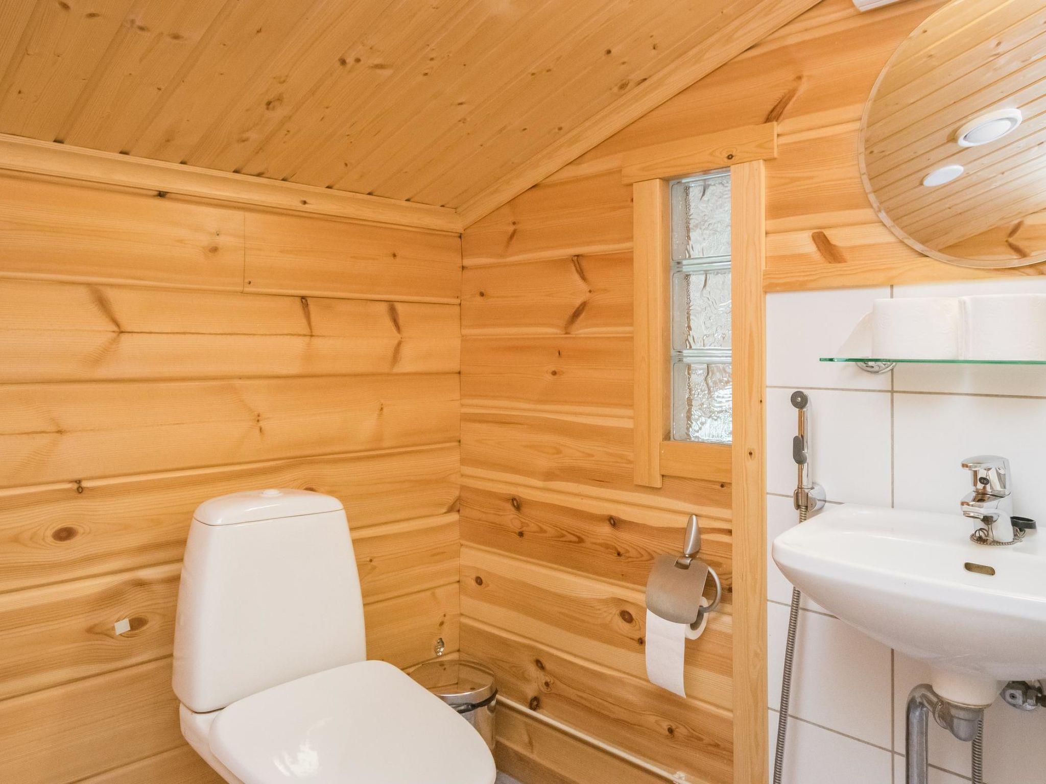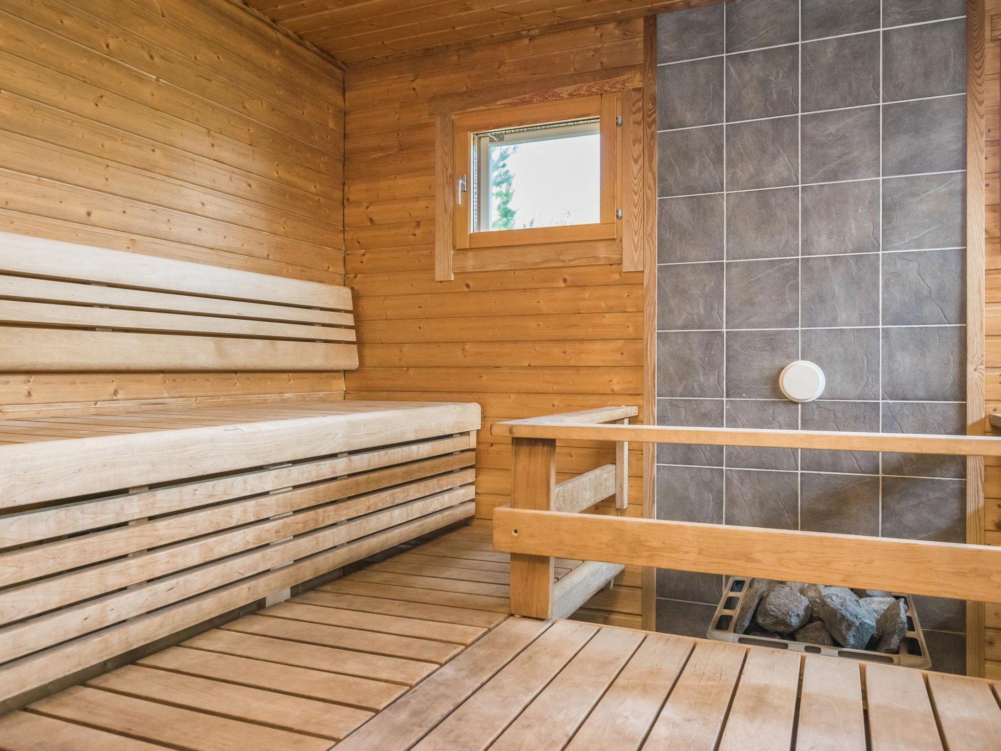 Log chalet 2003, living room/kitchen. Downstairs 2 bedrooms with 2 beds in each, WC. Upstairs 2 bedrooms with 2 beds in each, WC. Separate sauna area with the dressing room, washroom (2 showers), sauna (electric stove), WC. Entrance to sauna department through porch.