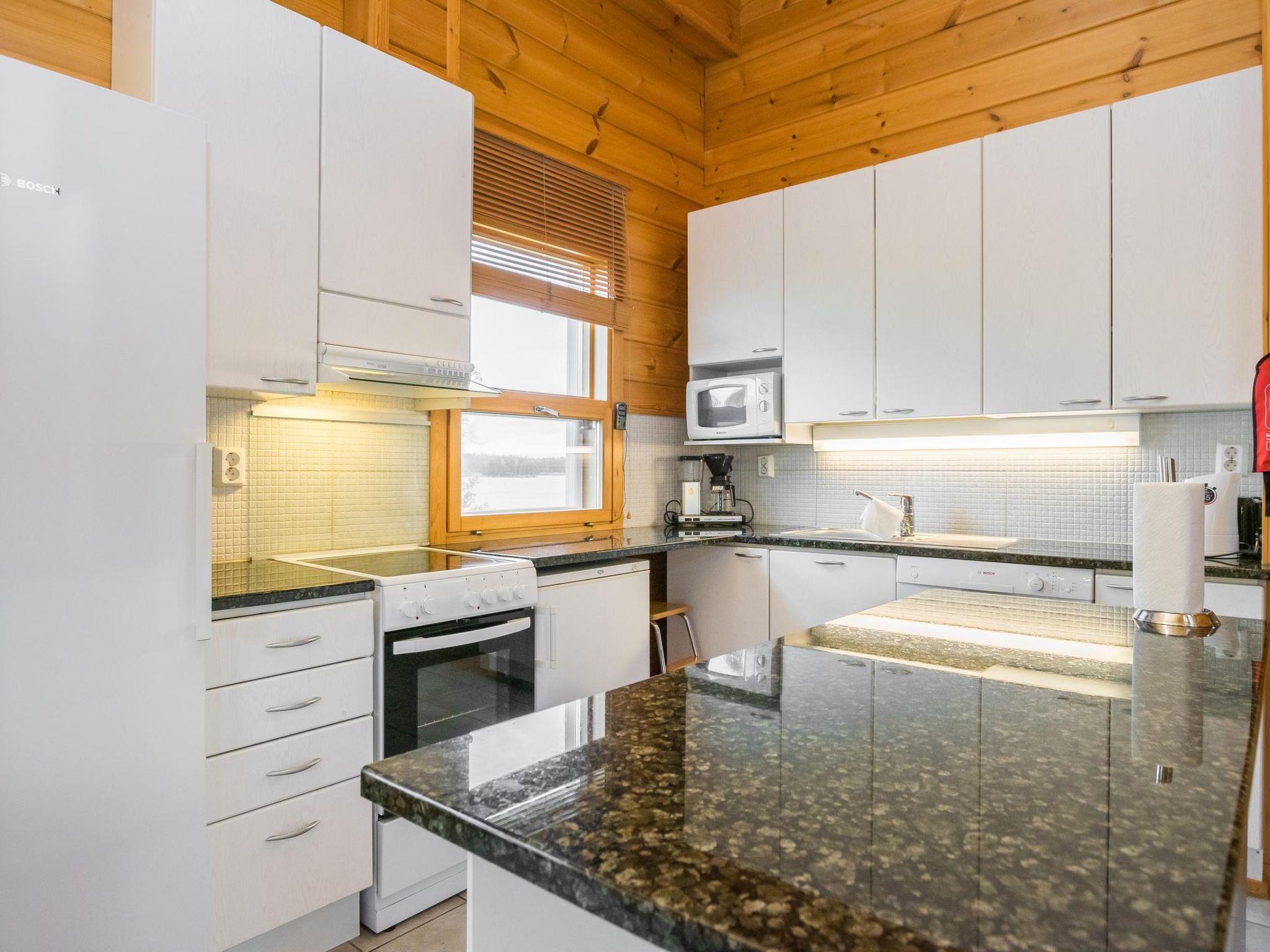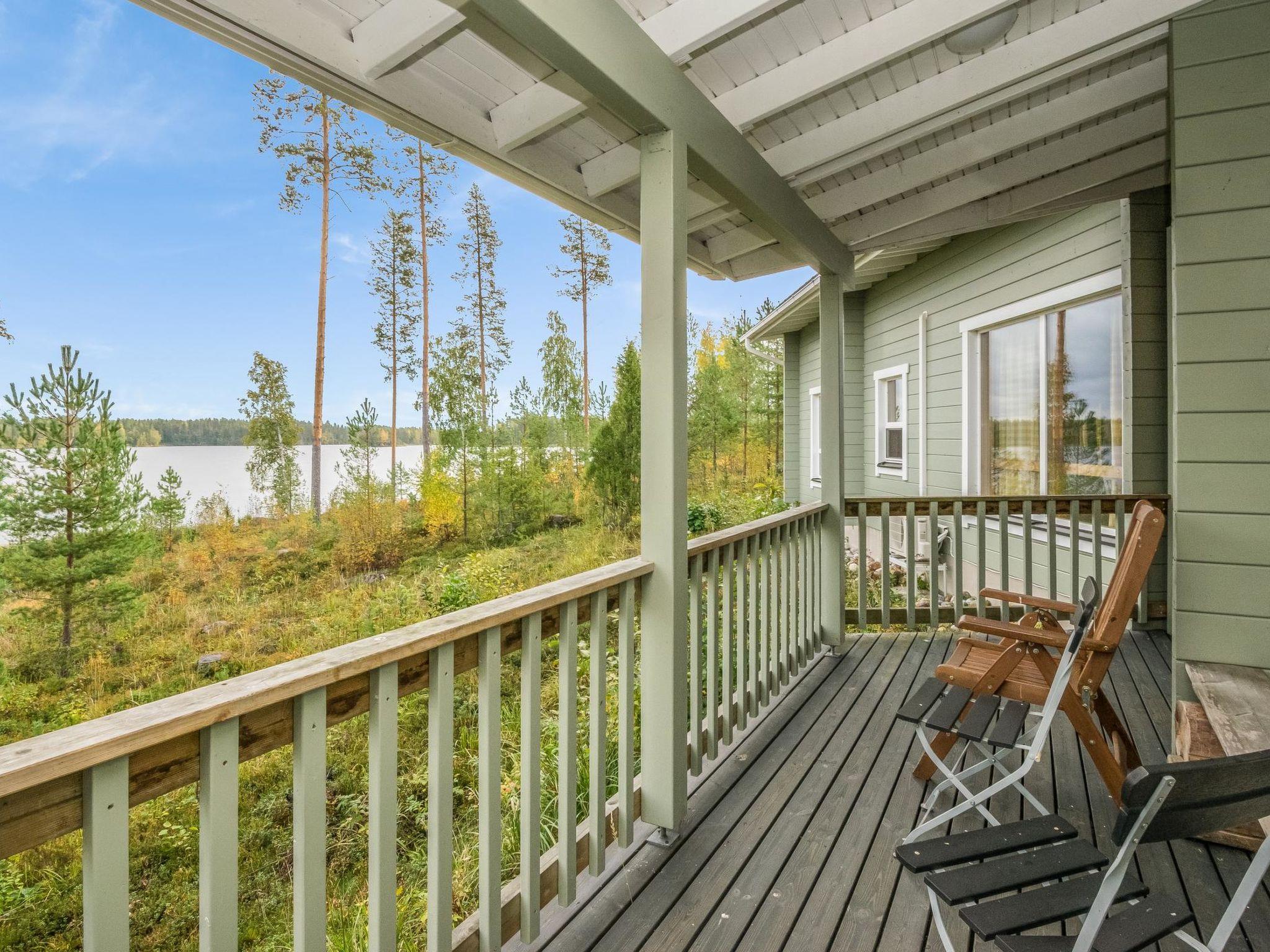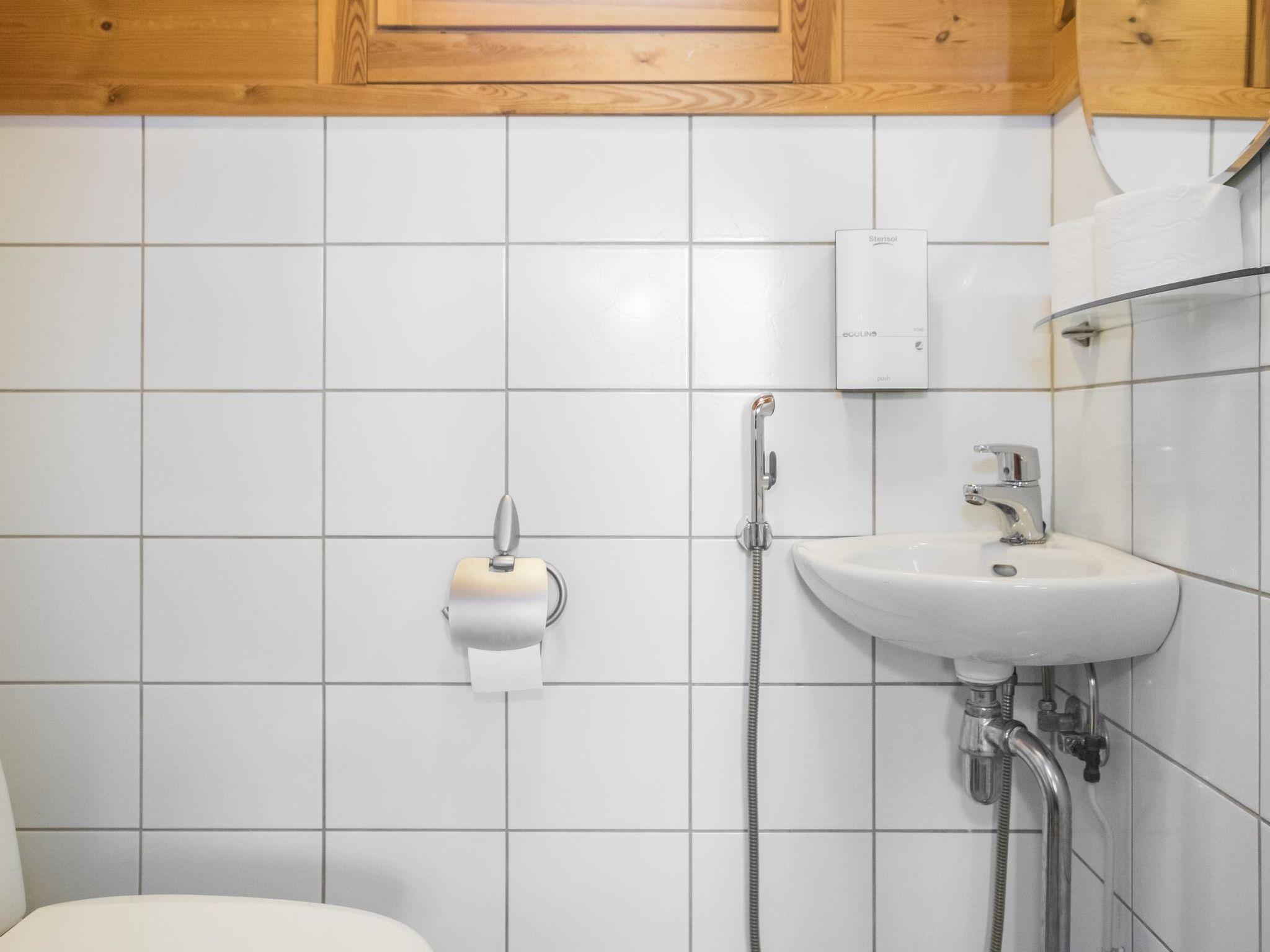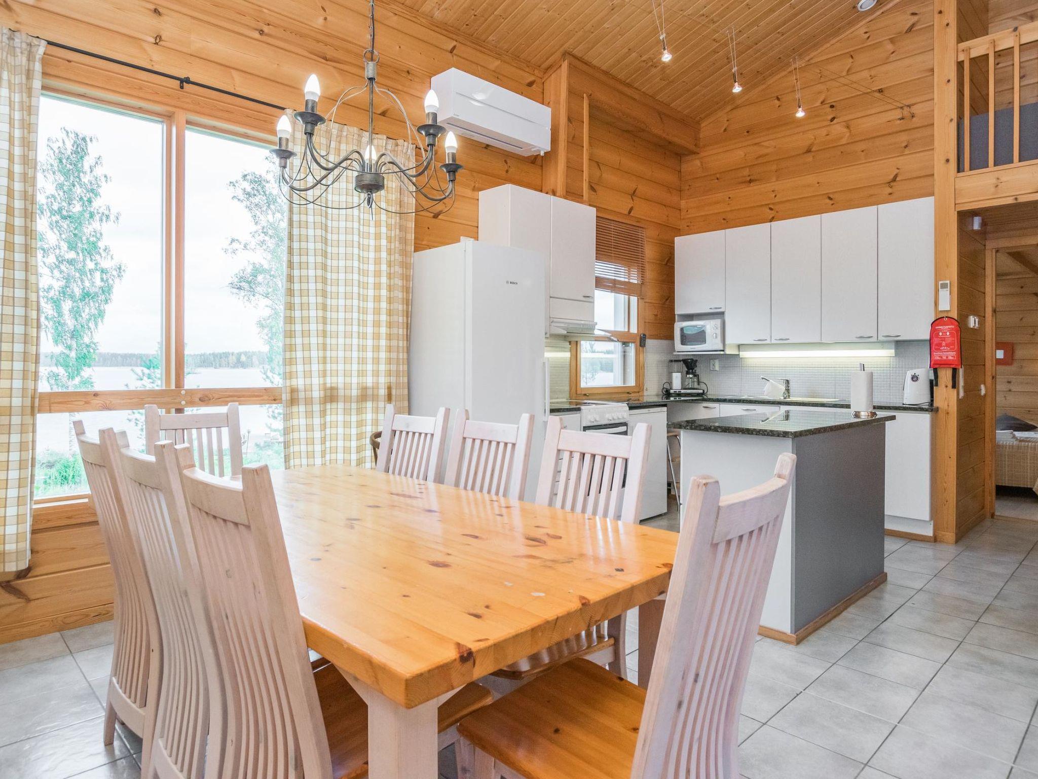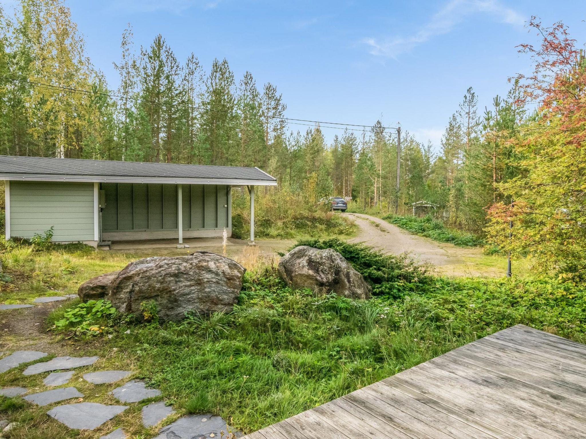 Log chalet 2003, living room/kitchen. Downstairs 2 bedrooms with 2 beds in each, WC. Upstairs 2 bedrooms with 2 beds in each, WC. Separate sauna area with the dressing room, washroom (2 showers), sauna (electric stove), WC. Entrance to sauna department through porch.