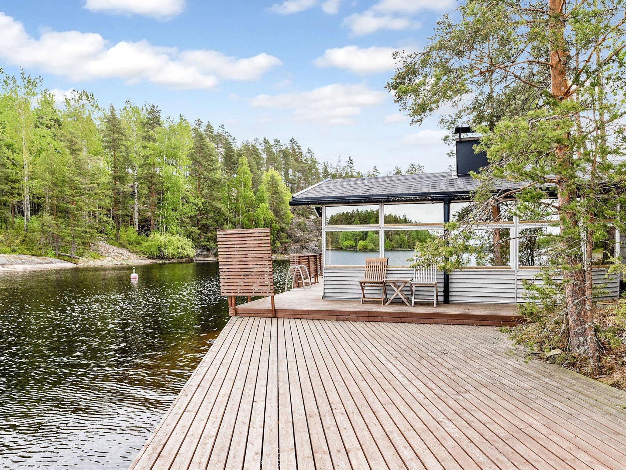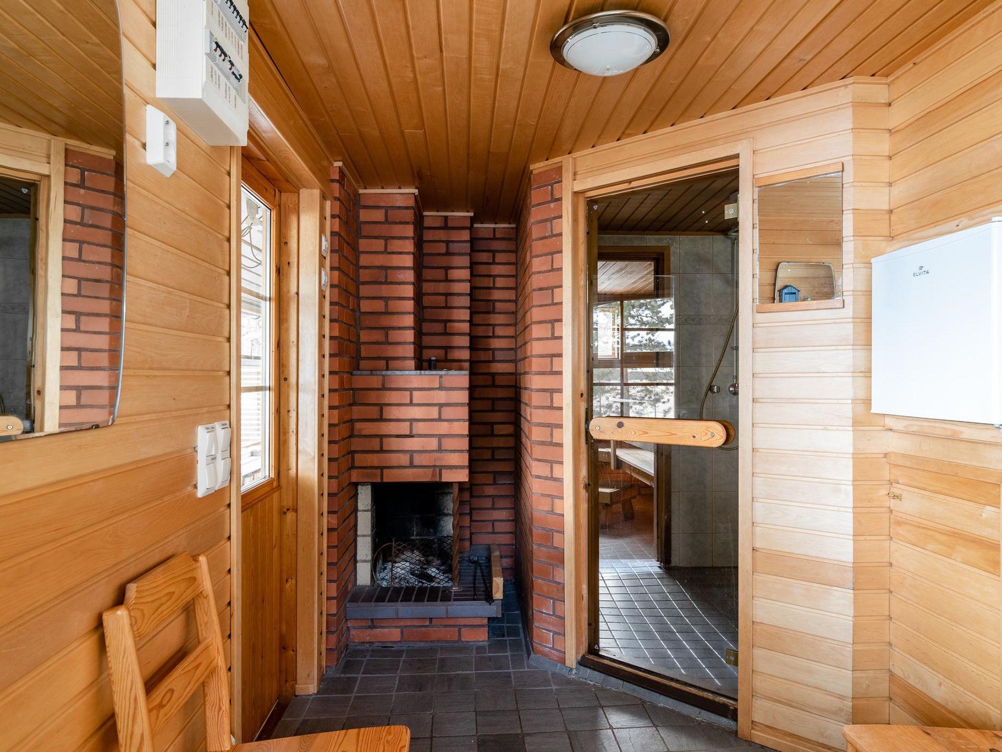 Separate sauna building (both wood heated sauna stove and electric sauna stove) 20 m² with washroom and fireplace room.