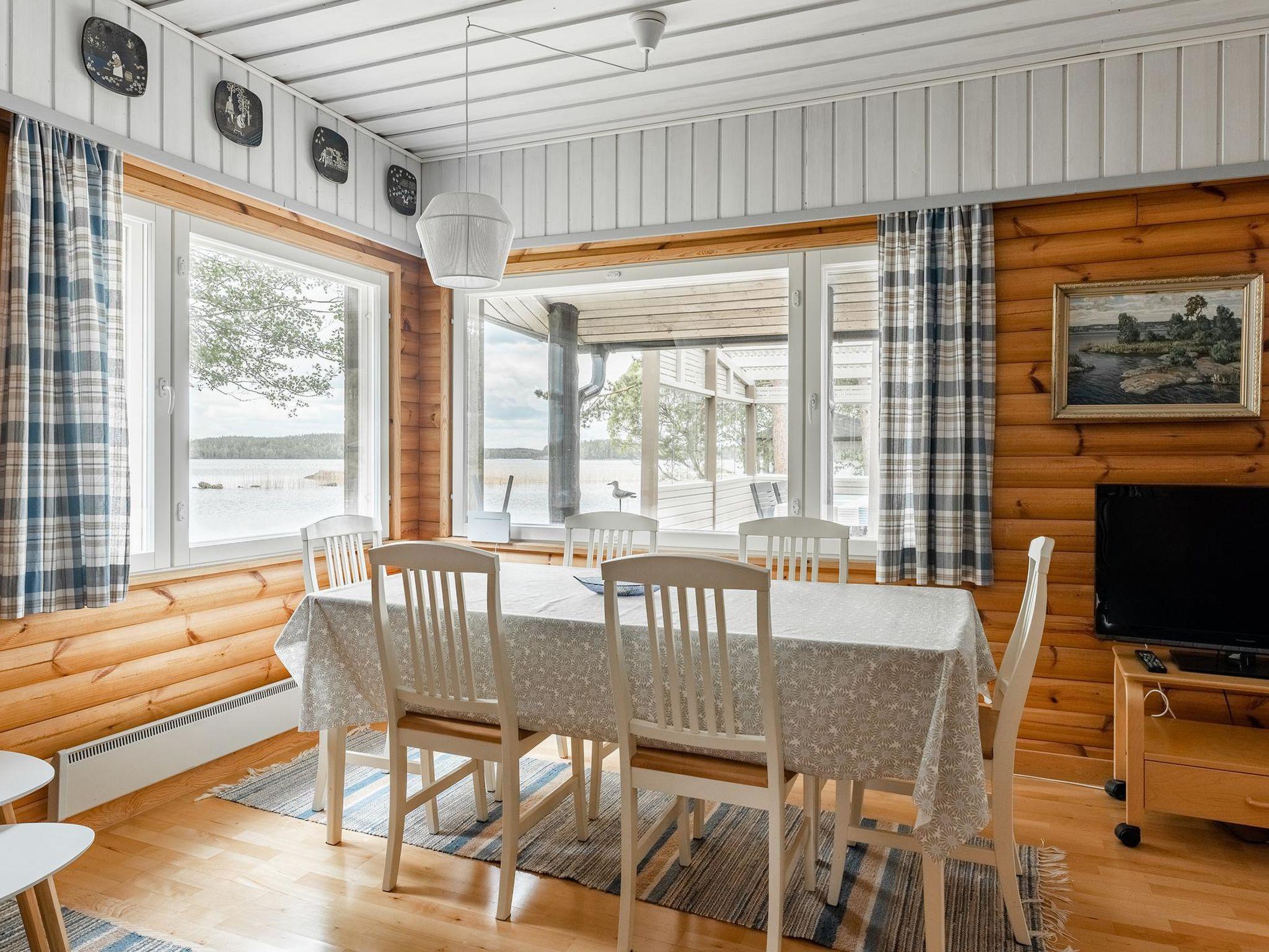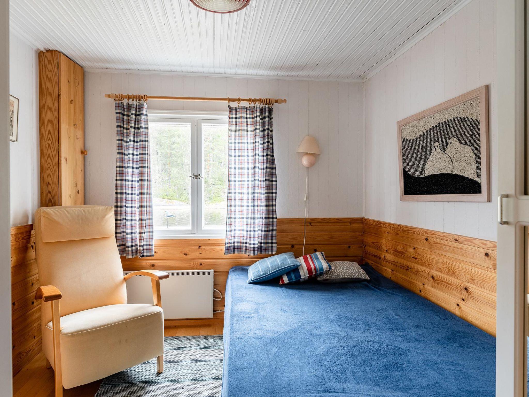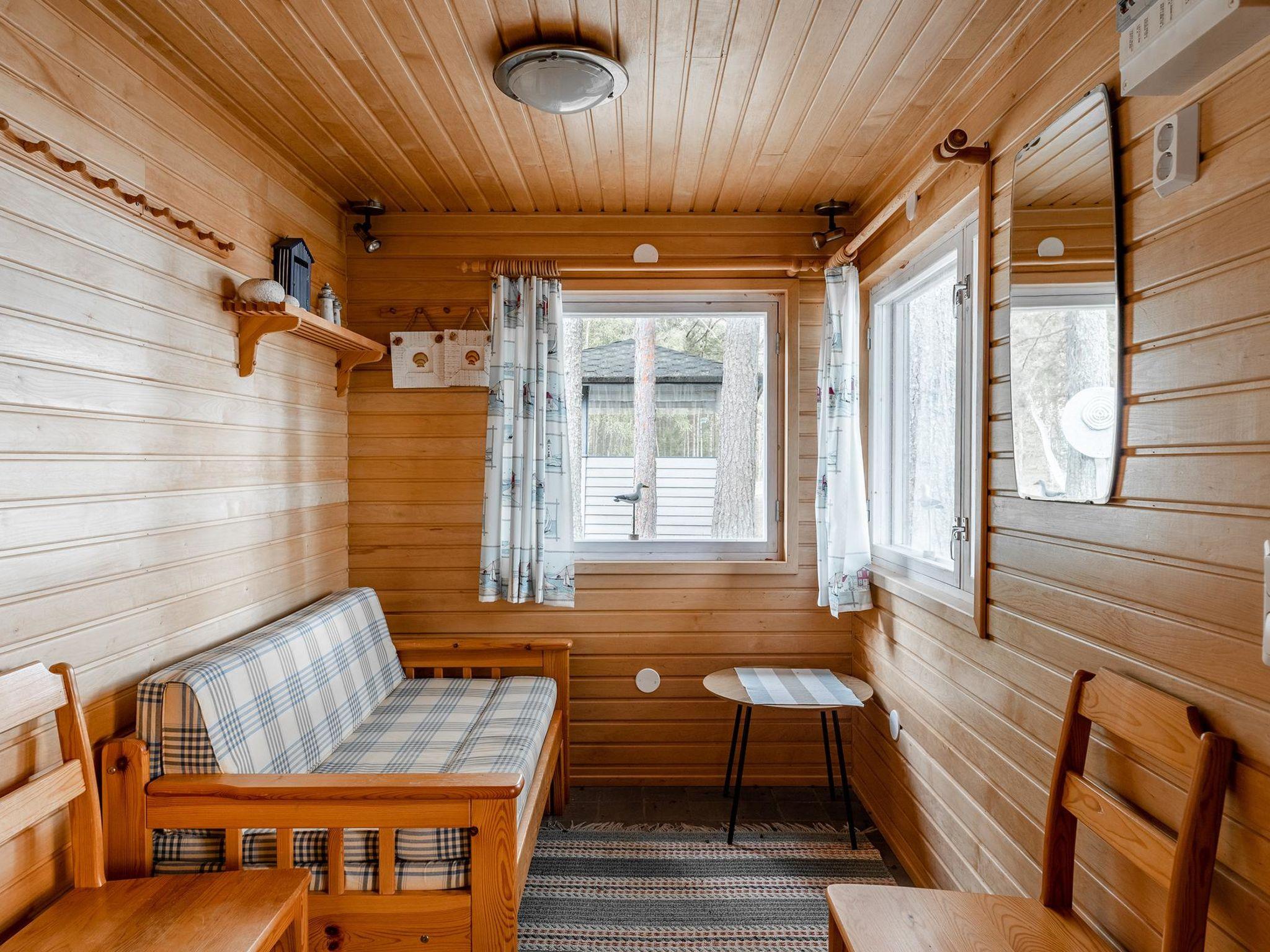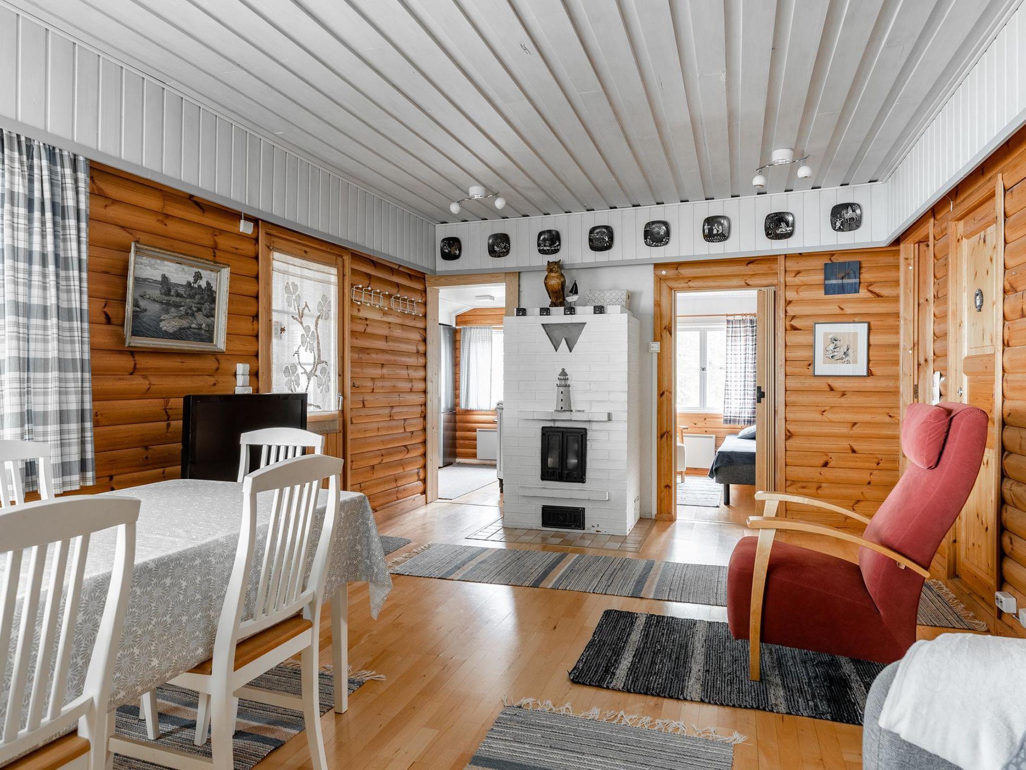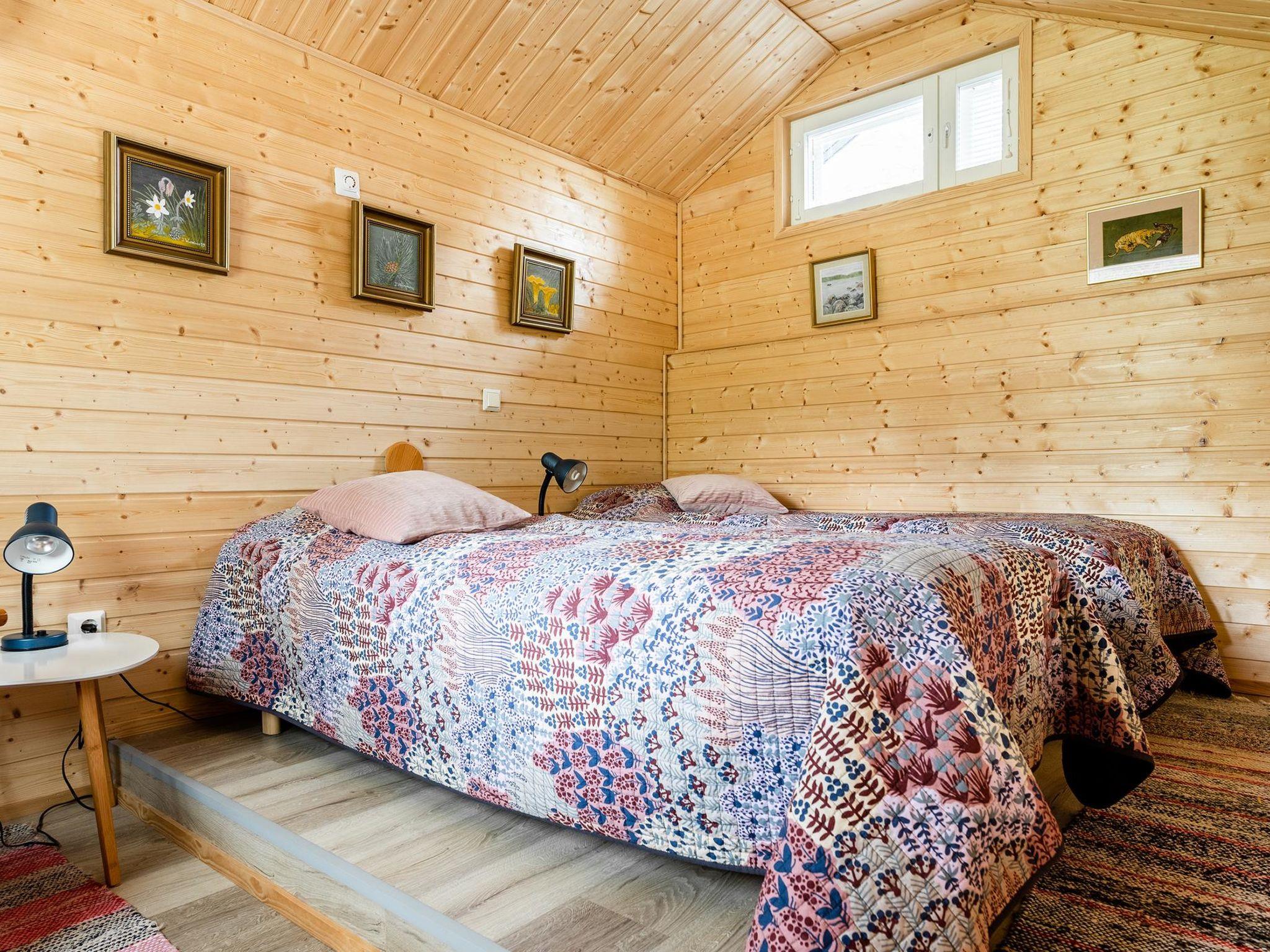 Wooden cabin 1995, renovated in 2010 and 2020, kitchen, living room, bedroom (11 m²) double bed, bedroom (7 m²) 120 cm wide bed, on the loft two beds (11 m², room height 230 cm), washroom with shower and toilet, renovated in 2025.