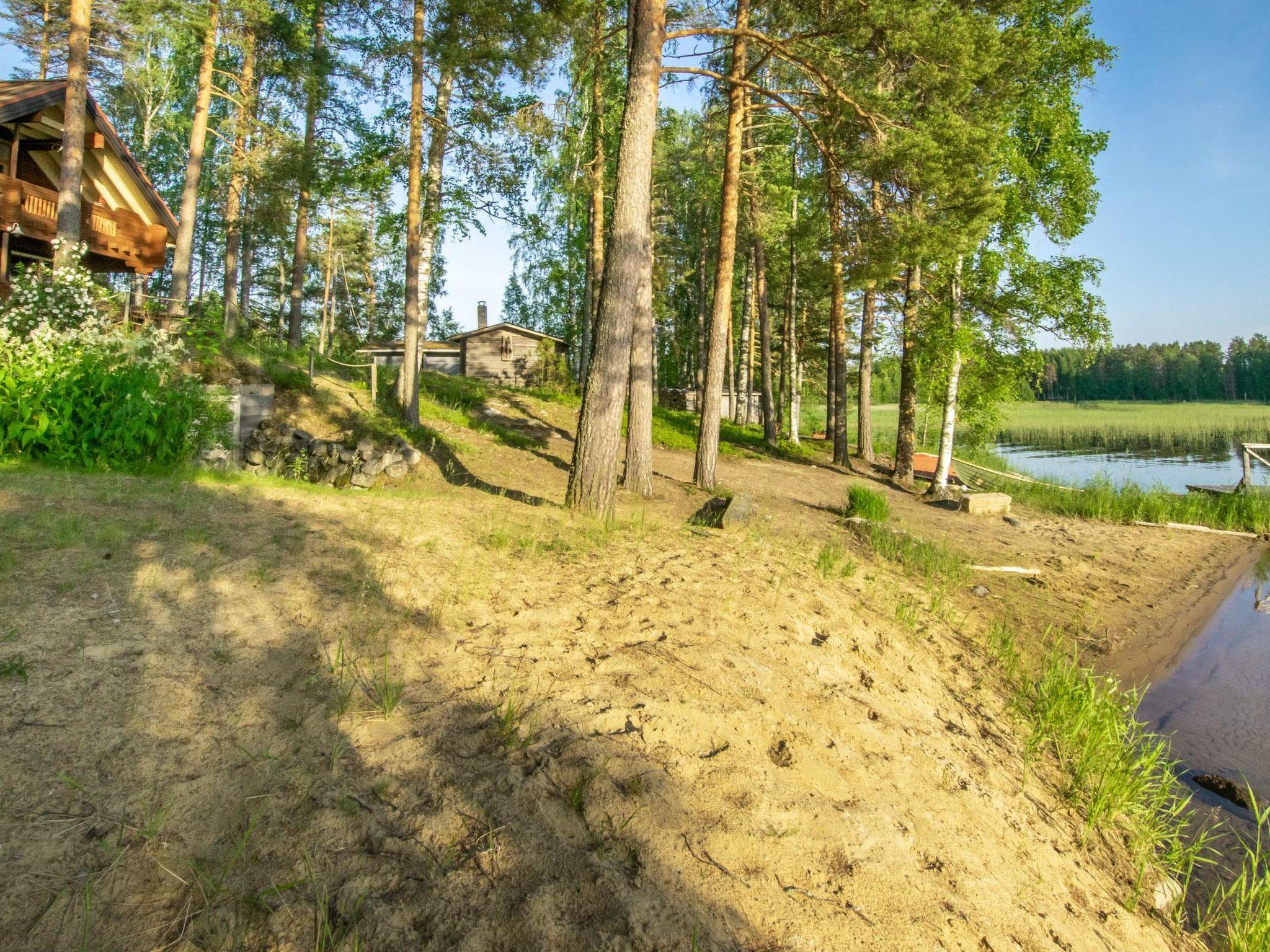 52 km to the northeast from Savonlinna, lake Saimaa/Pataselkä 25 m, hard, gently deepening sand bottom, farter soft mud bottom, pier, rowing boat.