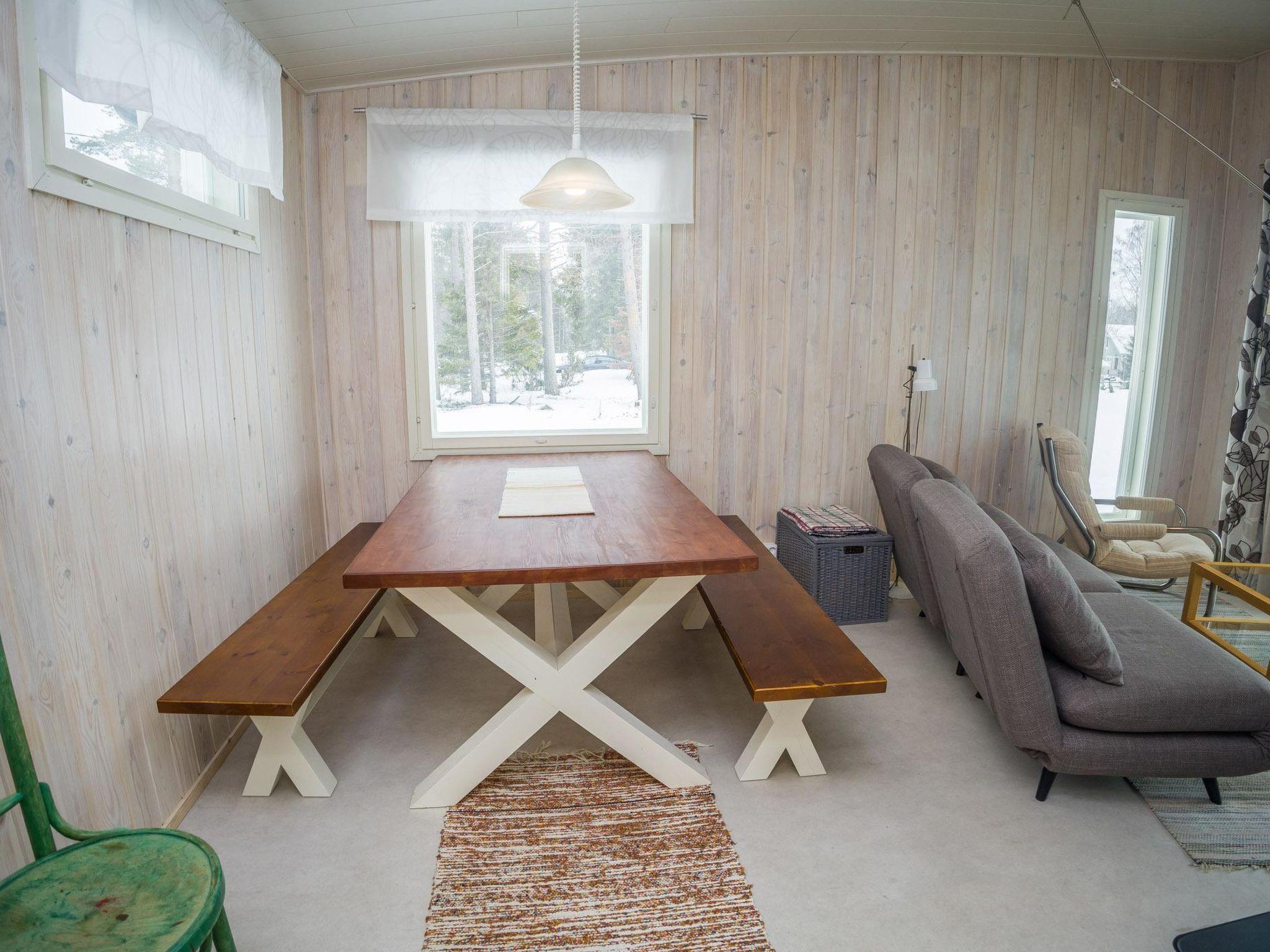 In the other section, you can relax in the sauna or by the fireplace, and it can also be used for overnight stays if needed. The cabin features a full-width terrace with stunning westward views of the sea. Large sliding glass doors provide seamless access to the terrace and offer extensive sea views from inside as well. There is a swimming area at the shore, along with a boat and a canoe. During the summer, you can hike, mountain bike, or pick berries in the surrounding forests, while in winter, you can enjoy skiing and snowmobiling directly on the frozen sea.