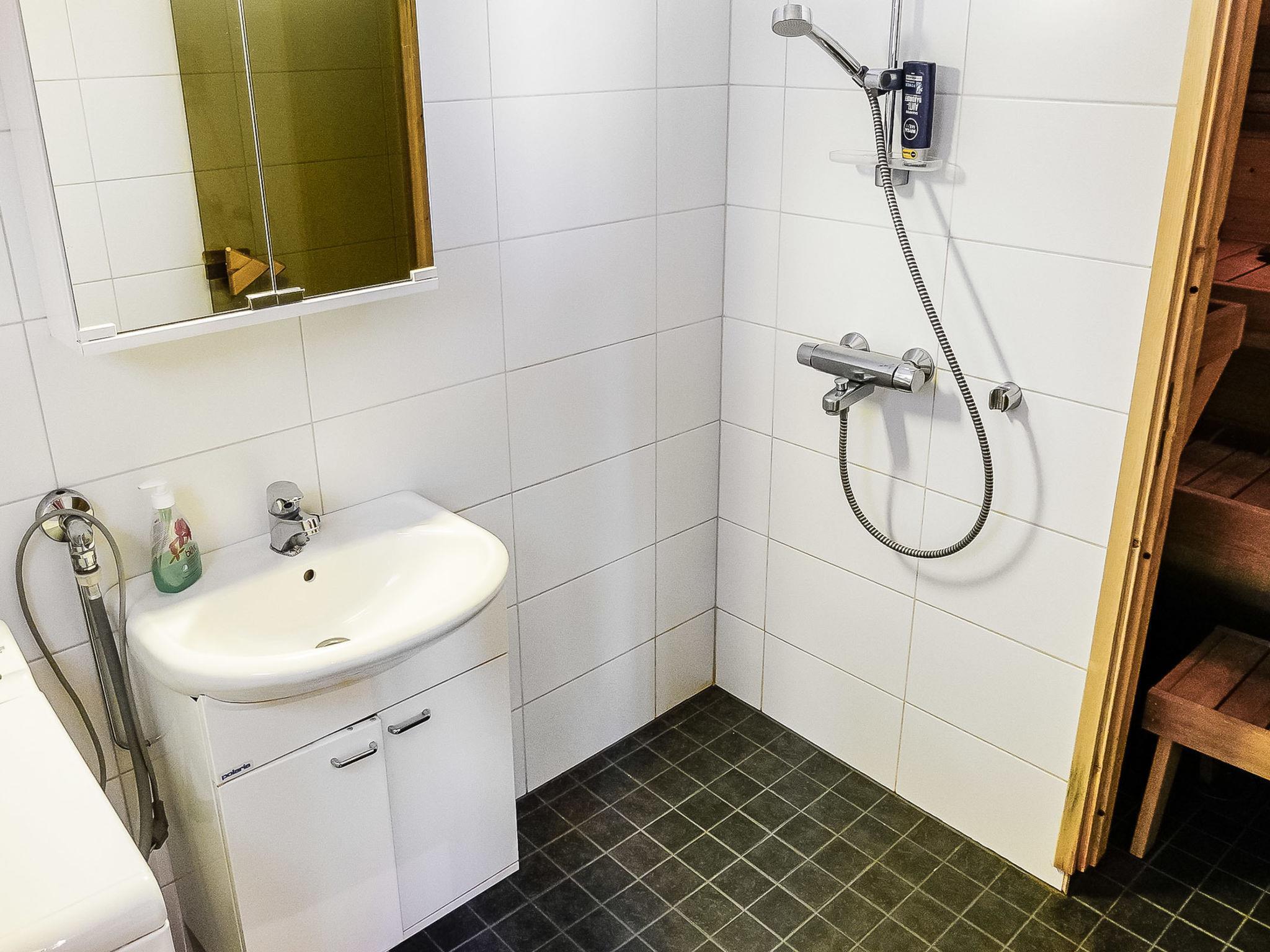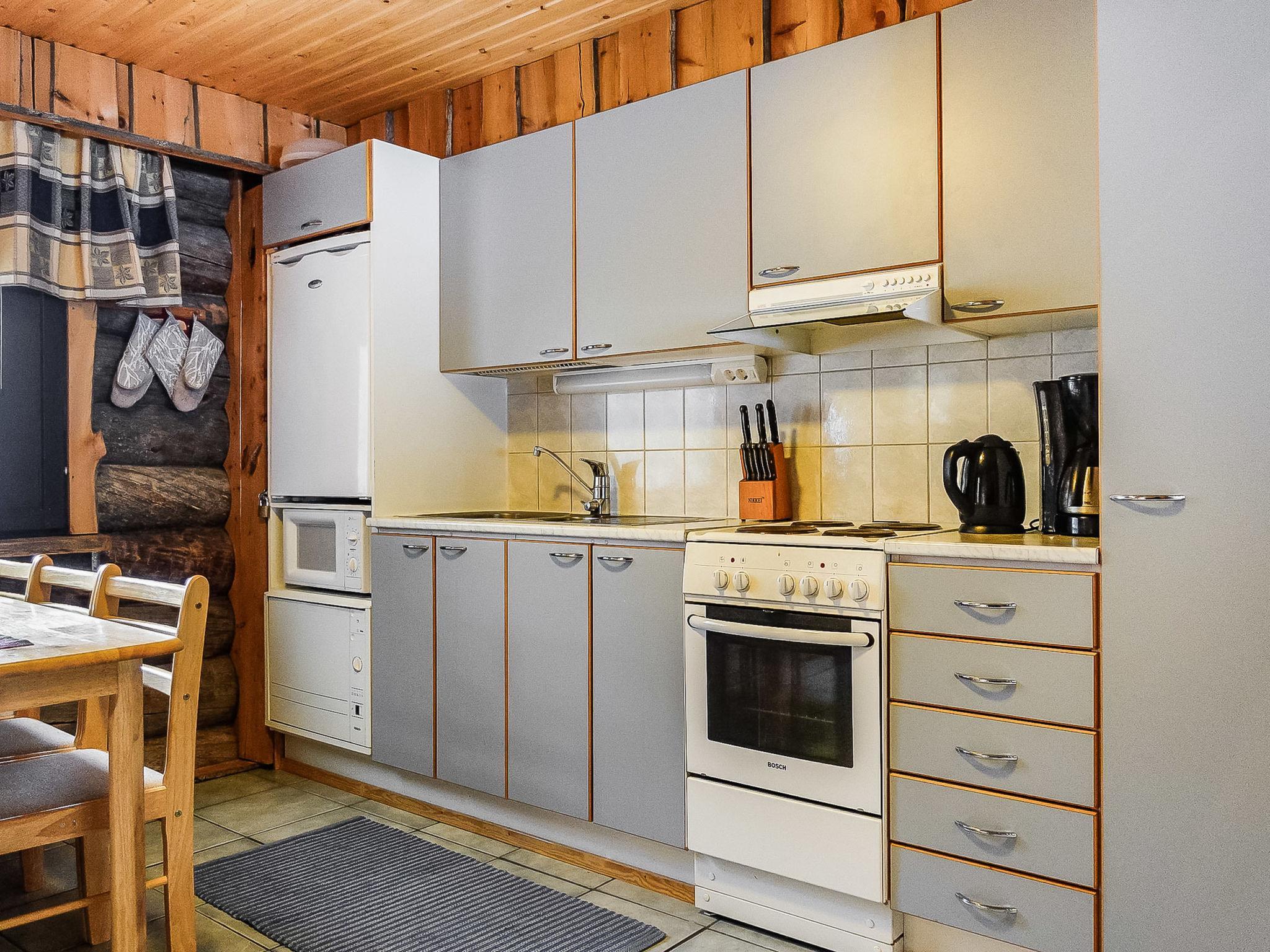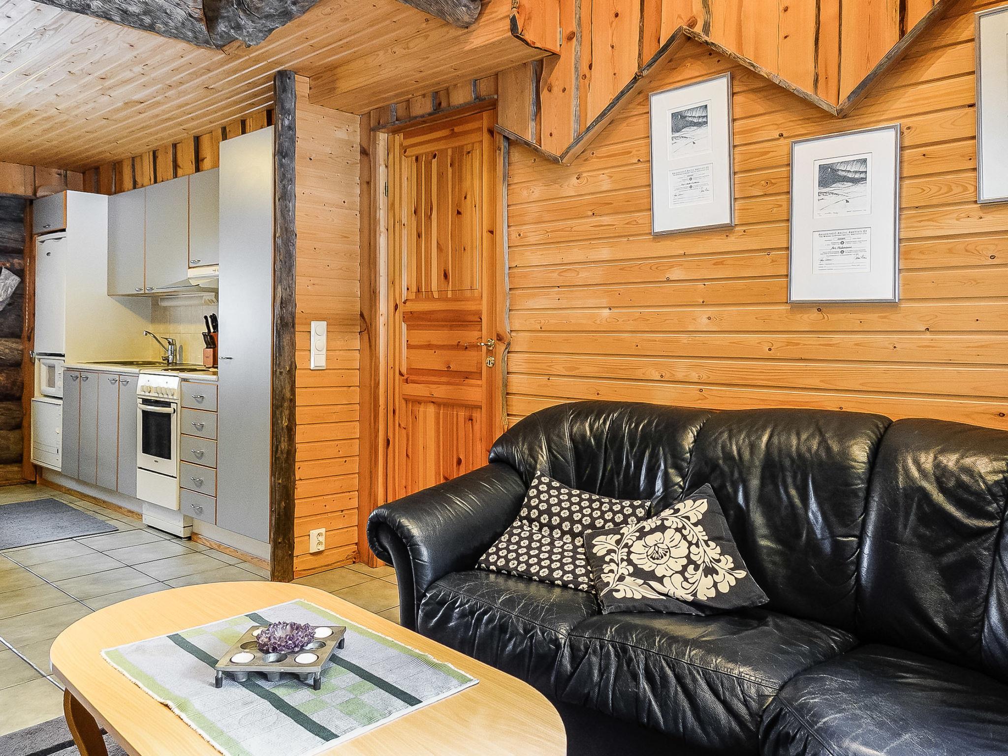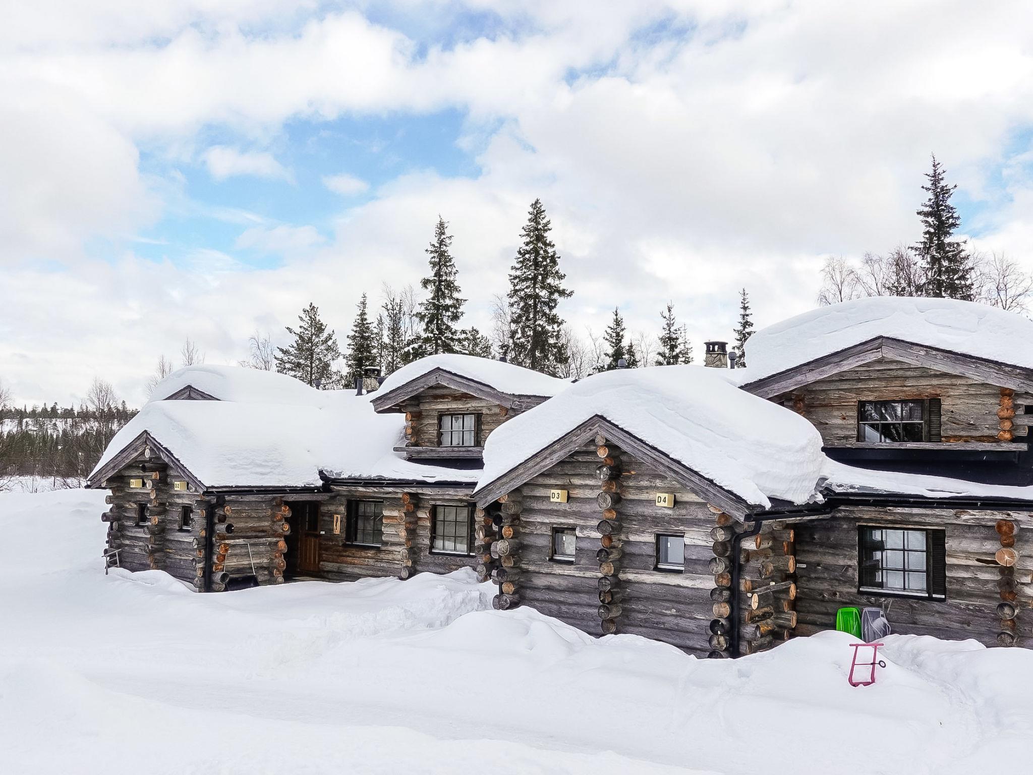 116 km north of Rovaniemi, silverlog apartment in Luosto, built in 2002, floors renovated and walls painted in 2025, sauna renovated in 2020. Kitchen-living room, bedroom with 2 beds, upstairs bedroom with 2 beds, a loft with two beds, a steep staircase to the loft, sauna (electric stove), bathroom, terrace.