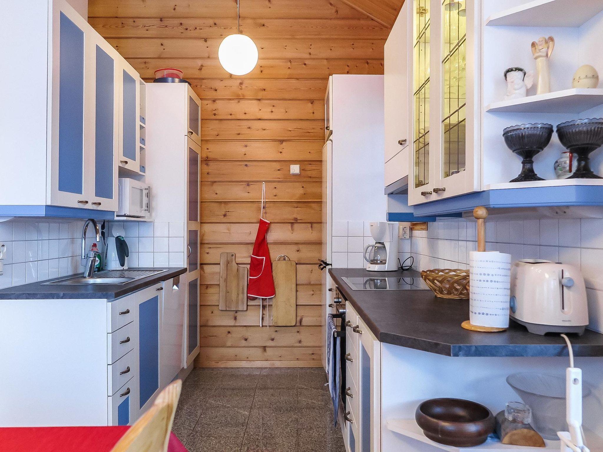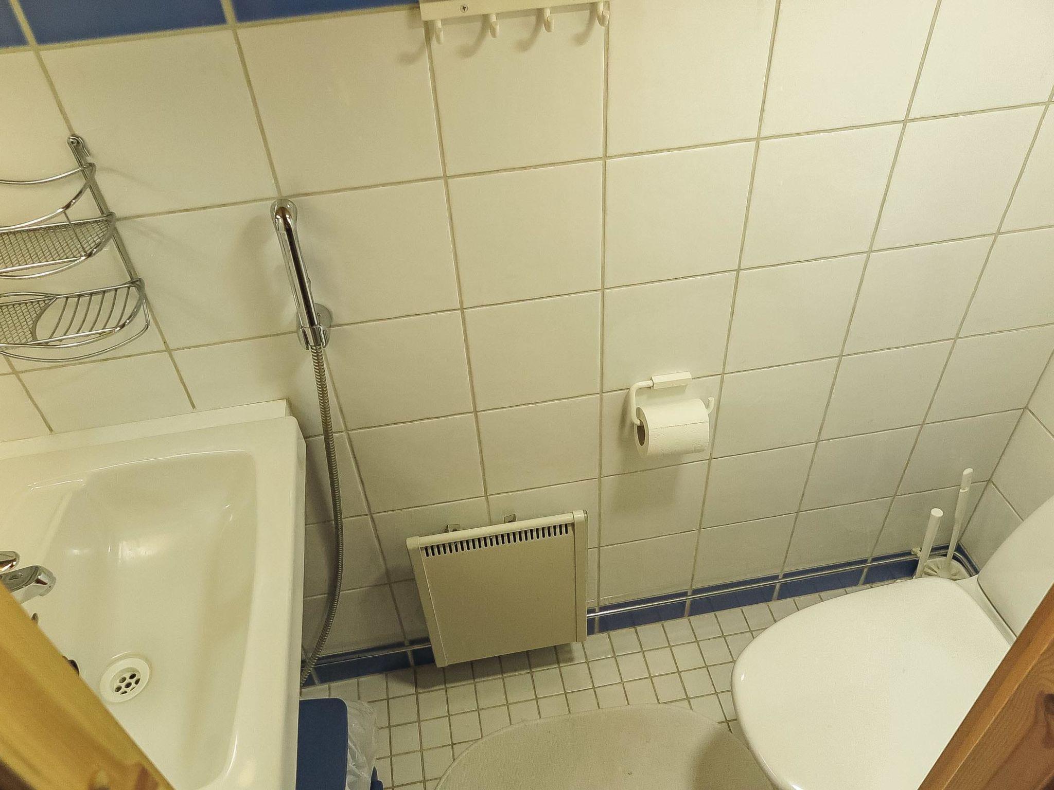 On the ground floor living area/kitchen, 2 bedrooms, each with 2 beds, sauna, washroom, separate WC and a covered porch. On the upper floor there are 2 bedrooms with sloped roofs, each with 2 beds, WC also on the upper floor.