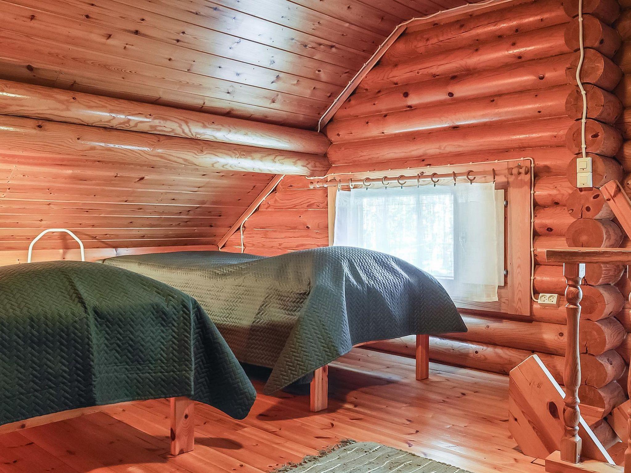 Log cabin 1990. Downstairs: living room/kitchen with sofabed, sauna, toilet-dressing room, shower and sauna, open veranda. Access to the toilet-dressing room both indoors and outdoors.