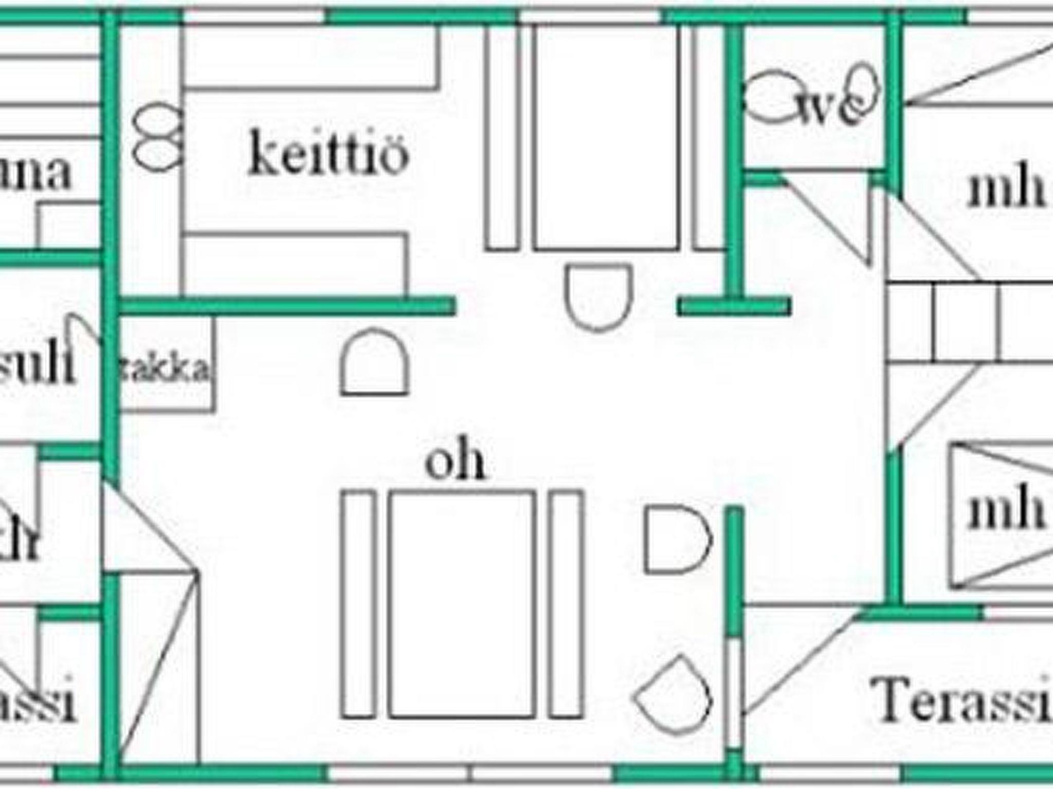 25 km north of Iisalmi. Lake Pyöree-järvi 25 m (length 2 km, breadth 1 km), shallow water, firm sanded rock bottom. Own boat. Log cabin 1998, living room/ kitchen with convertible sofa, bedroom with 1 bed and a bunk bed, bedroom with double bed, washroom, dressing room, spacious sauna for 8 persons, 2 x open verandas.