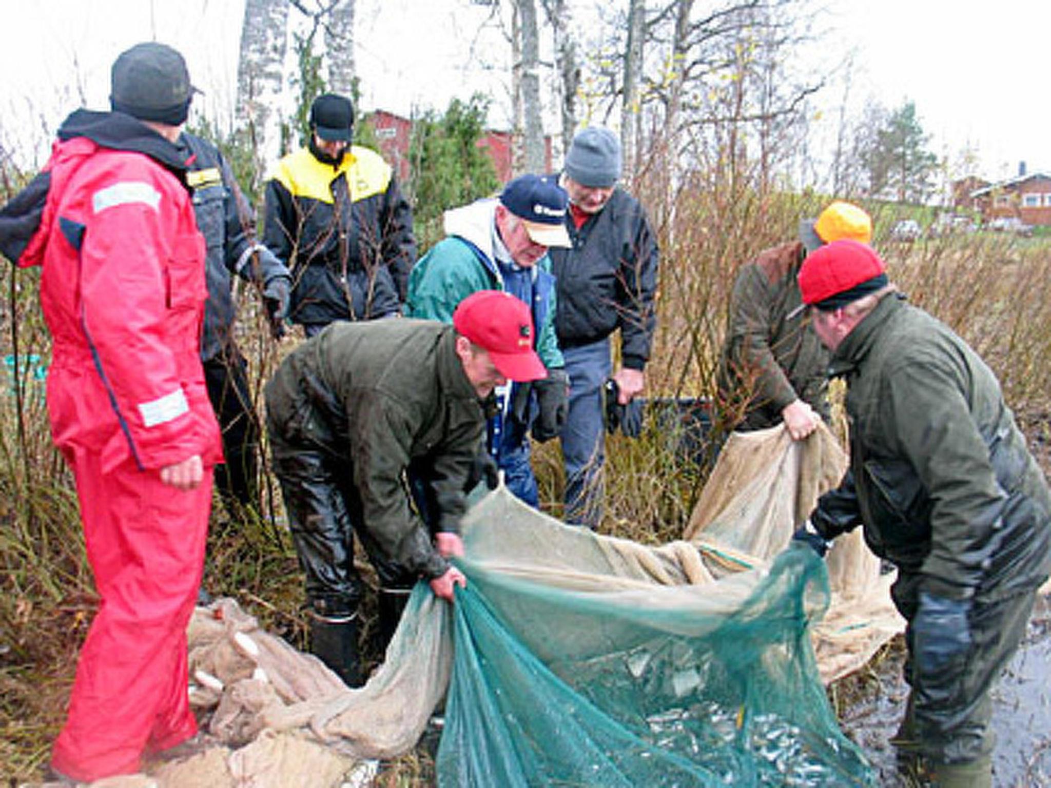 25 km north of Iisalmi. Lake Pyöree-järvi 25 m (length 2 km, breadth 1 km), shallow water, firm sanded rock bottom. Own boat. Log cabin 1997, living room/kitchen with convertibe sofa, bedroom with 1 bed and a bunk bed, bedroom with double bed, washroom, dressing room, sauna, 2 x open verandas.