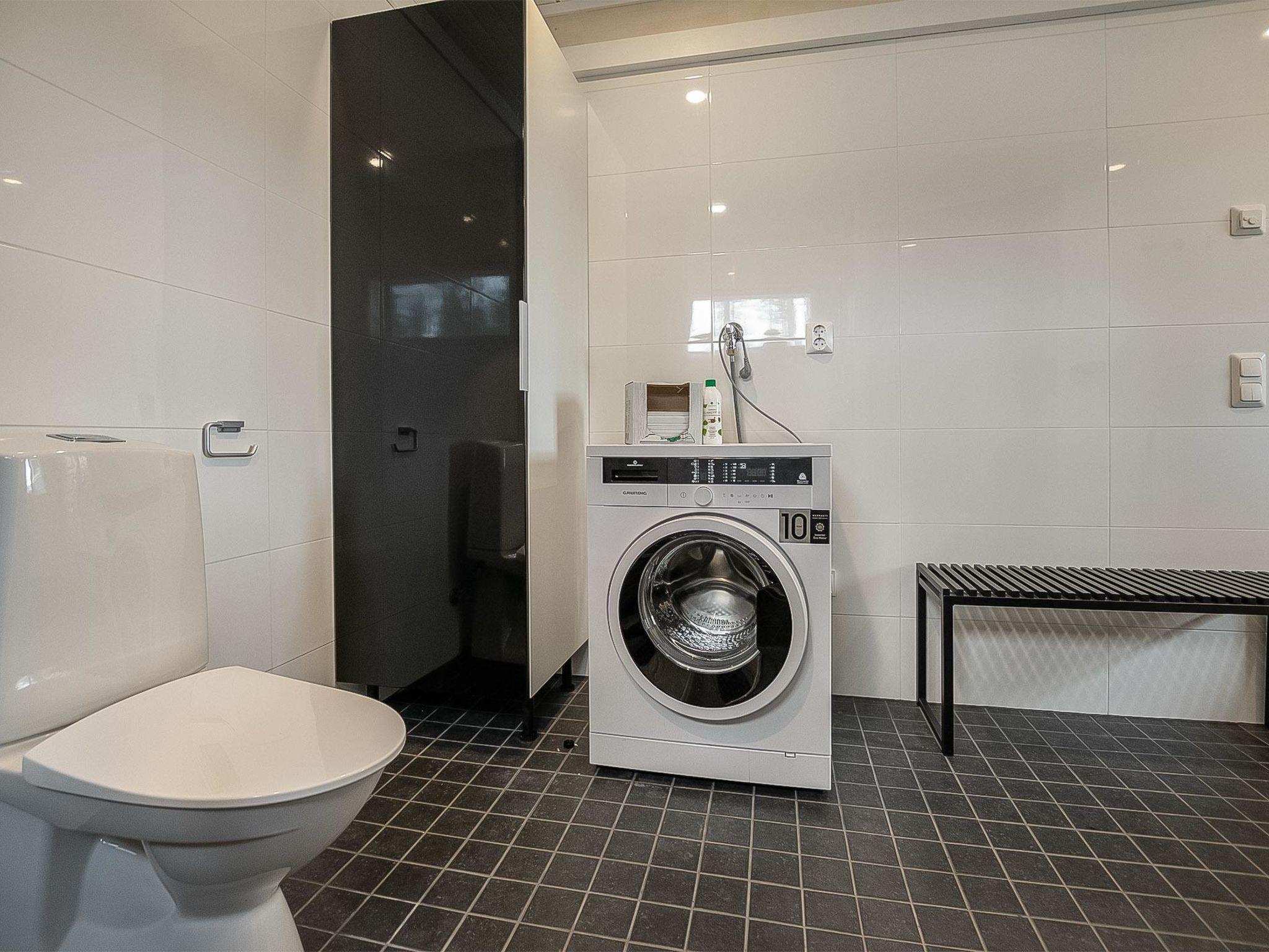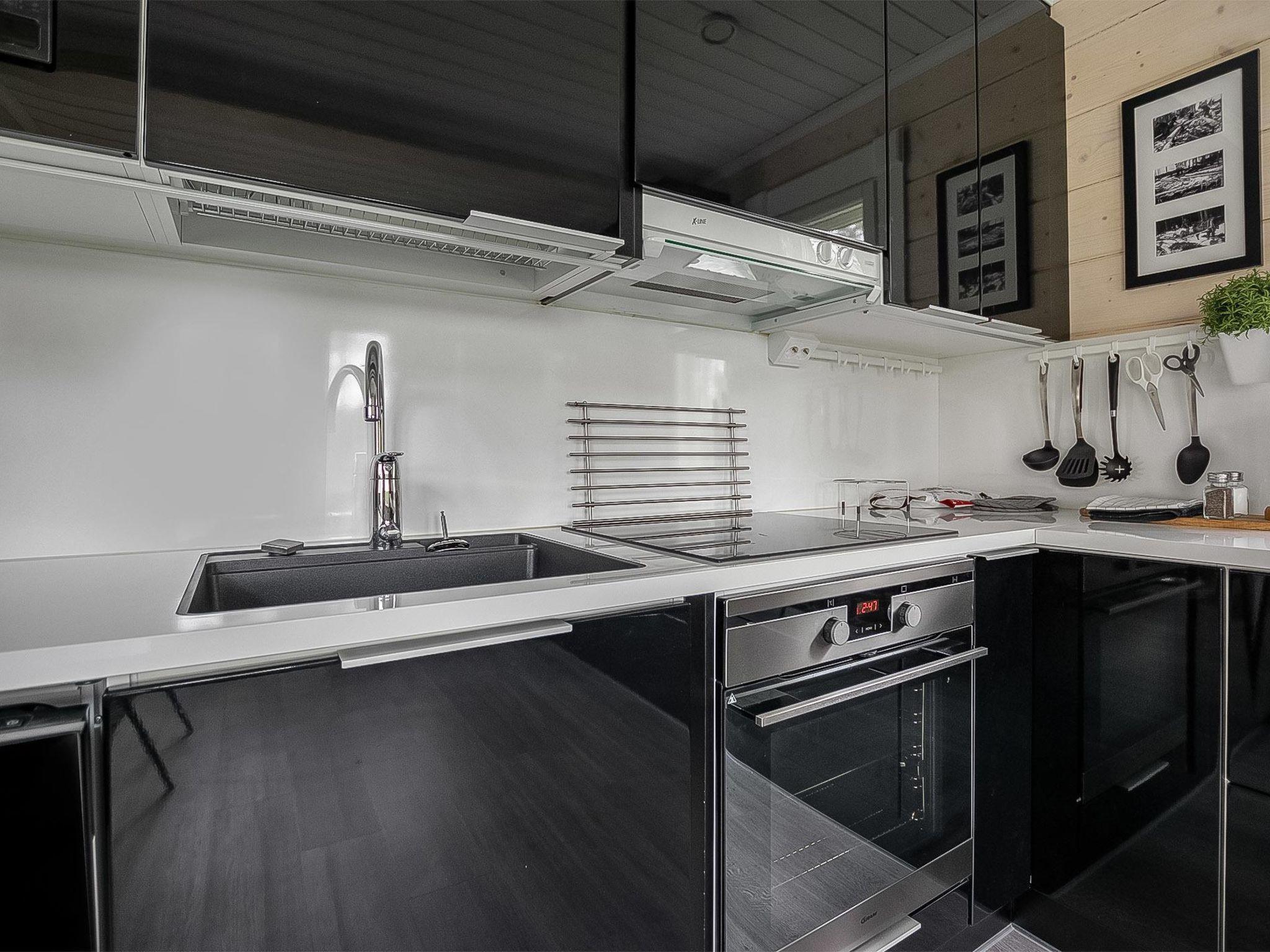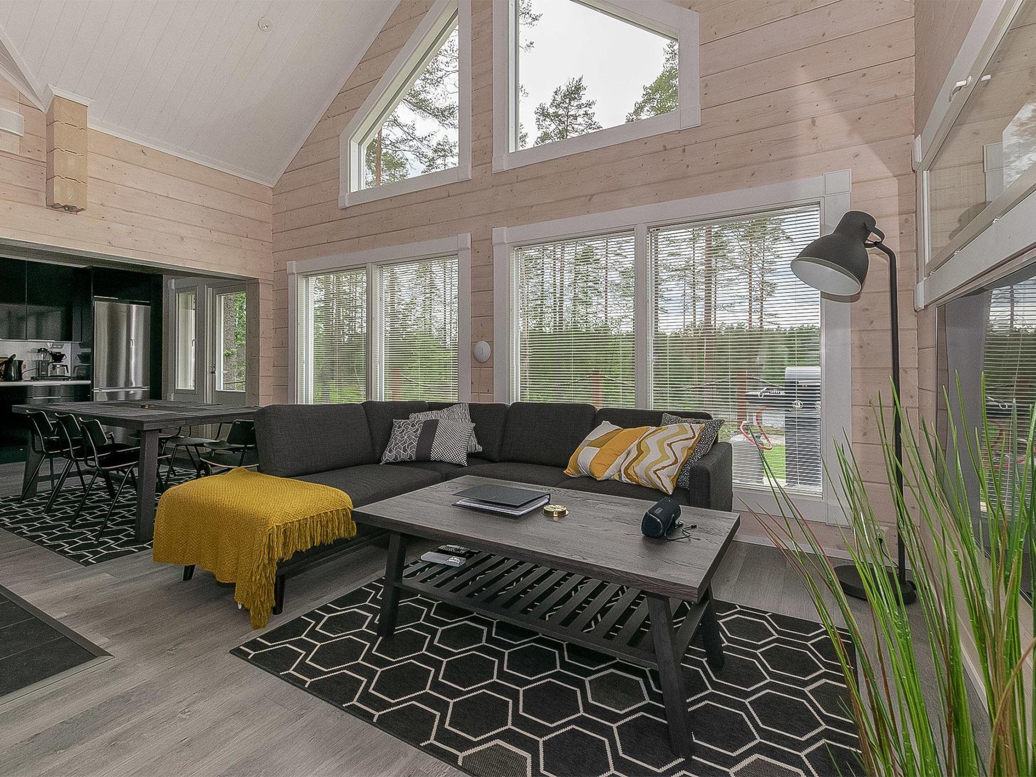Log cabin 2019, bedroom 1: two 80 x 200 cm beds, bedroom 2: 120 x 200 cm bed, bedroom 3: two 80 x 200 cm beds, bedroom 4: two 80 x 200 cm beds, sofa bed (140 x 190 cm spare bed) in the lobby on the upper floor. Living room with wood-burning stove, dining group which can be extended (for 10 people group), well-equipped kitchen corner, sauna (electric sauna stove), washroom, terrace with gas grill and garden furniture.