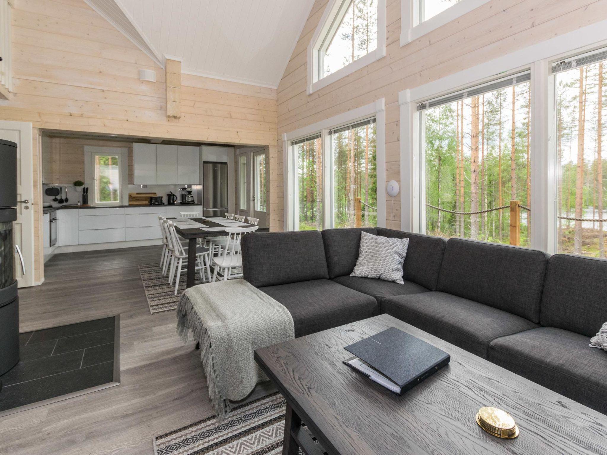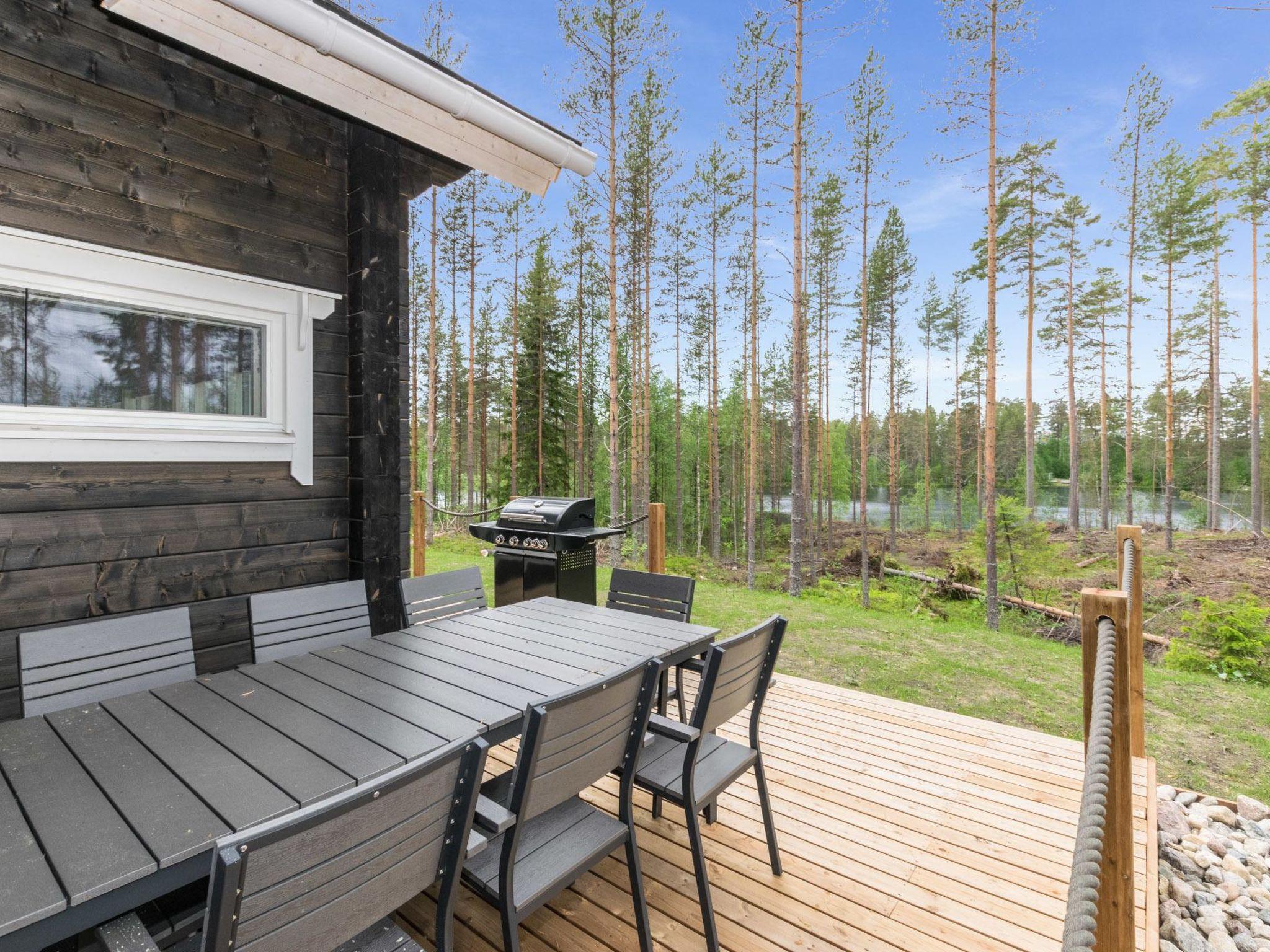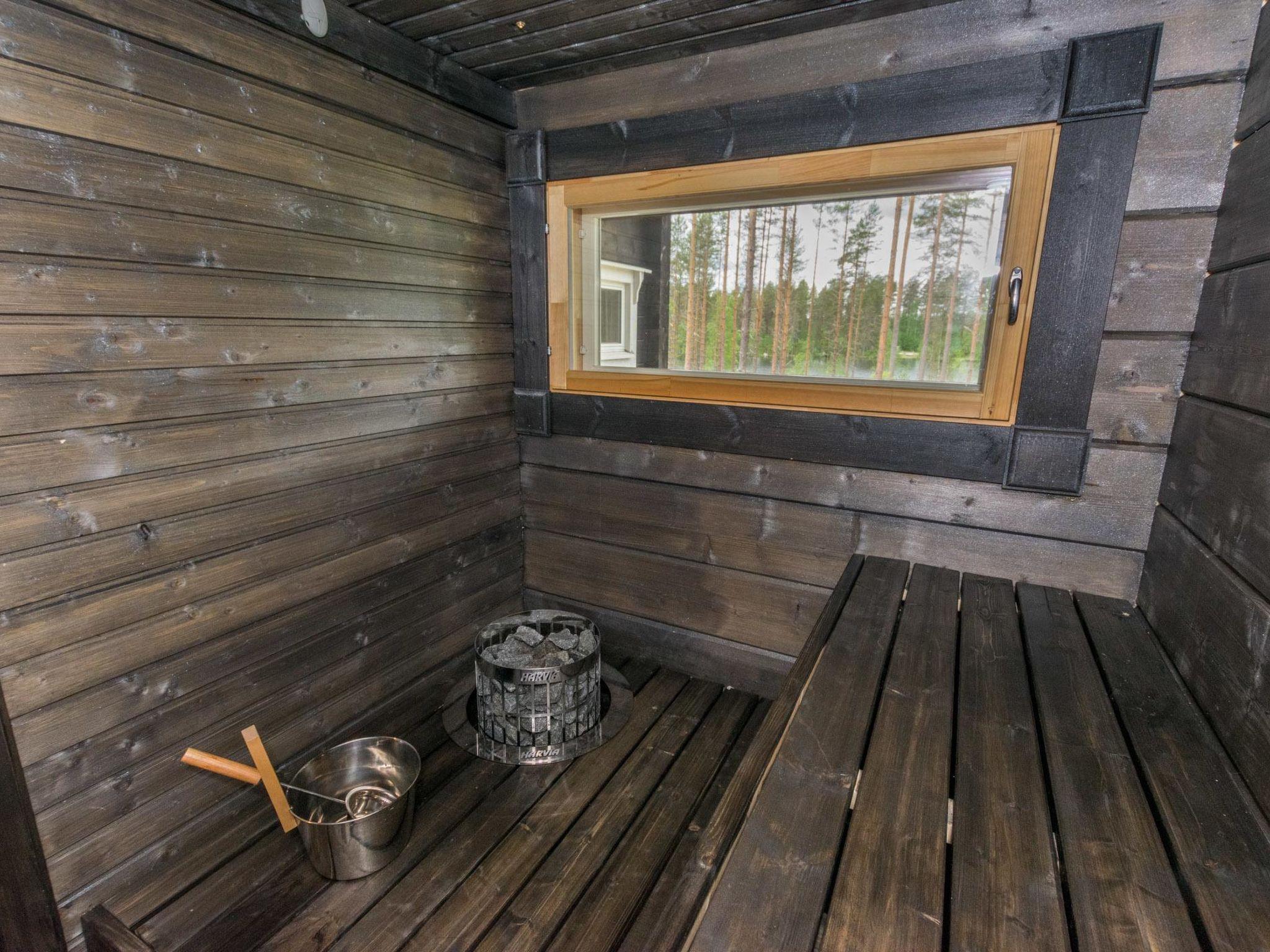 Log cabin 2019, bedroom 1: two 80 x 200 cm beds, bedroom 2: 120 x 200 cm bed, bedroom 3: two 80 x 200 cm beds, bedroom 4: two 80 x 200 cm beds, sofa bed (140 x 190 cm spare bed) in the lobby on the upper floor. Living room with wood-burning stove, dining group which can be extended (for 10 people group), well-equipped kitchen corner, sauna (electric sauna stove), washroom, terrace with gas grill and garden furniture.