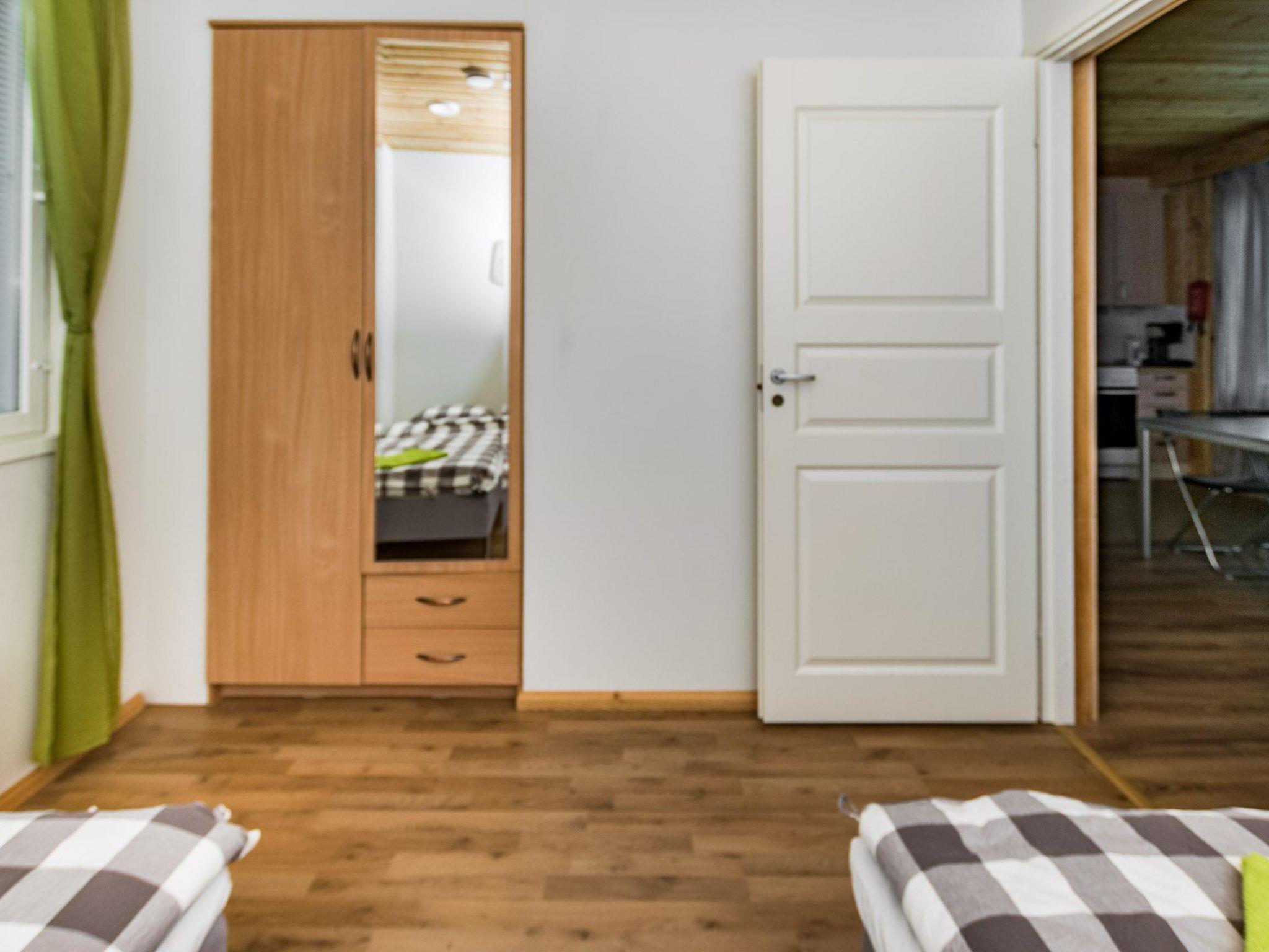 Log panel faced cabin 2012, living room/kitchen, a living room with heat reserving fireplace, bedroom 1 double bed, bedroom 2 two beds, WC with shower. Sauna, washroom and a separate dressing room with own entrance.