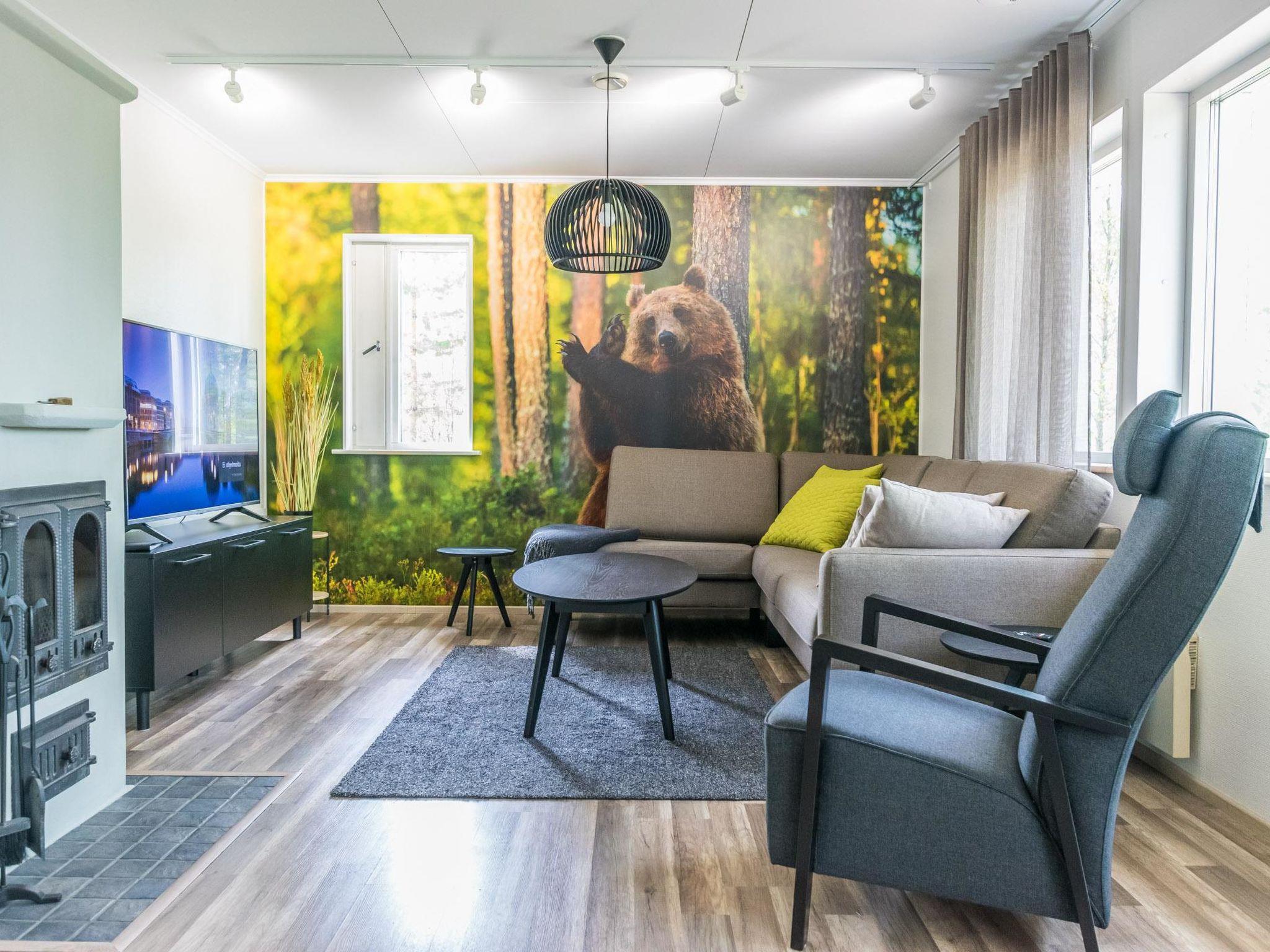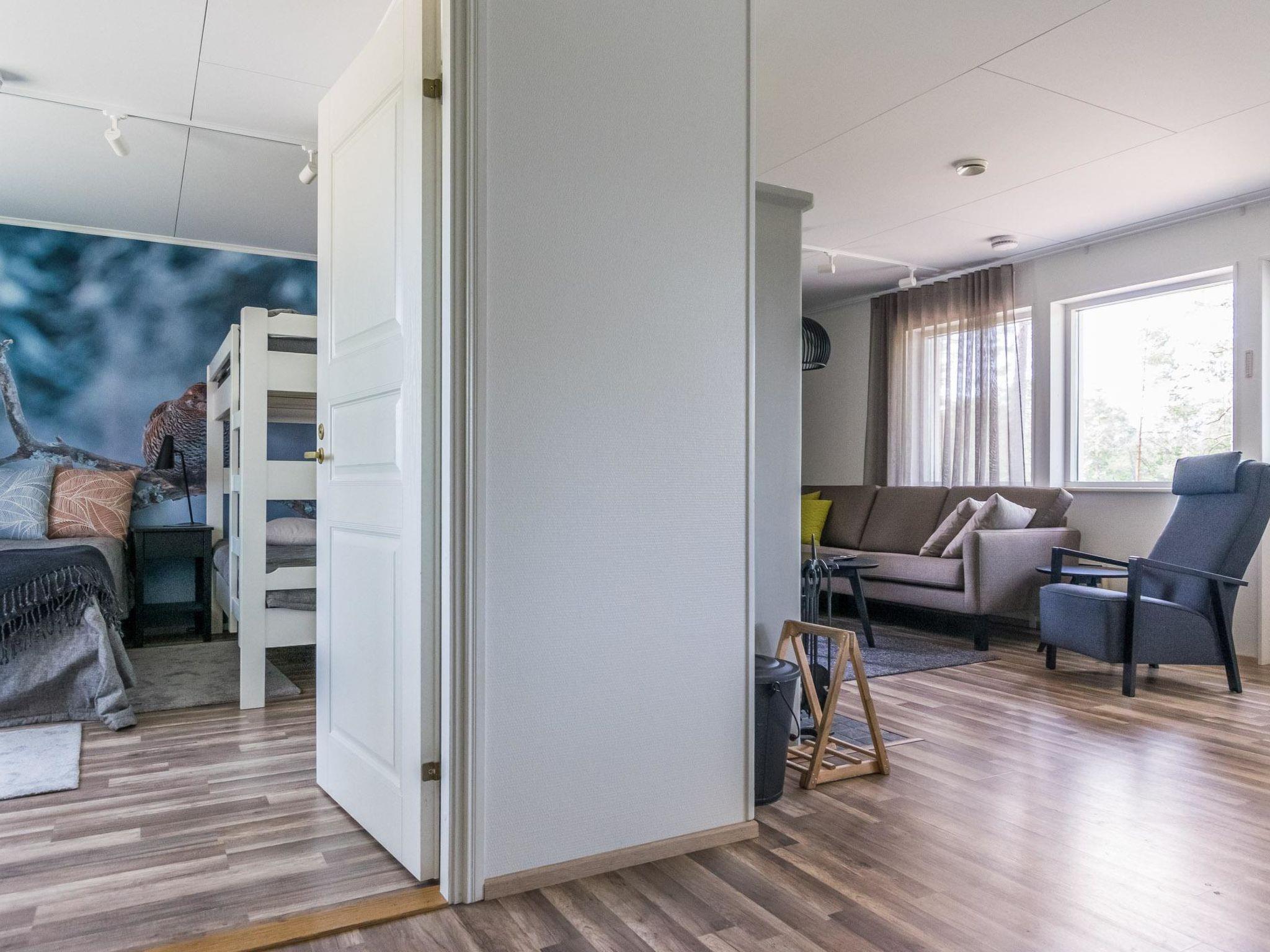 Wooden cabin 1991, bedroom 1: 2 beds and bunk bed 80x200 cm, bedroom 2: 2 beds, living room with fireplace in the TV corner, dining group for eight people, well-equipped kitchenette, sauna (electric sauna stove), washroom with shower and washing machine, terrace with a gas grill and garden furniture.