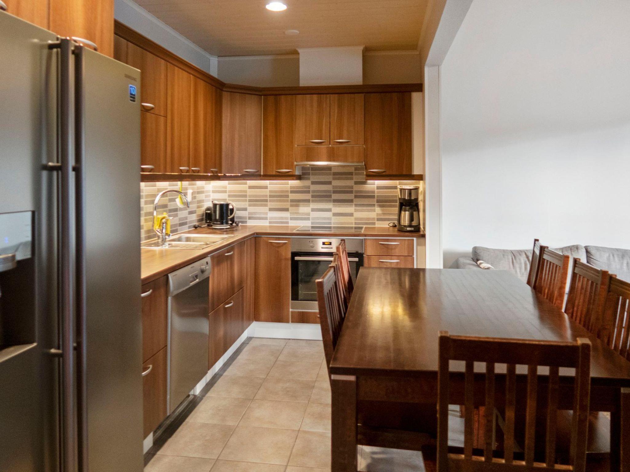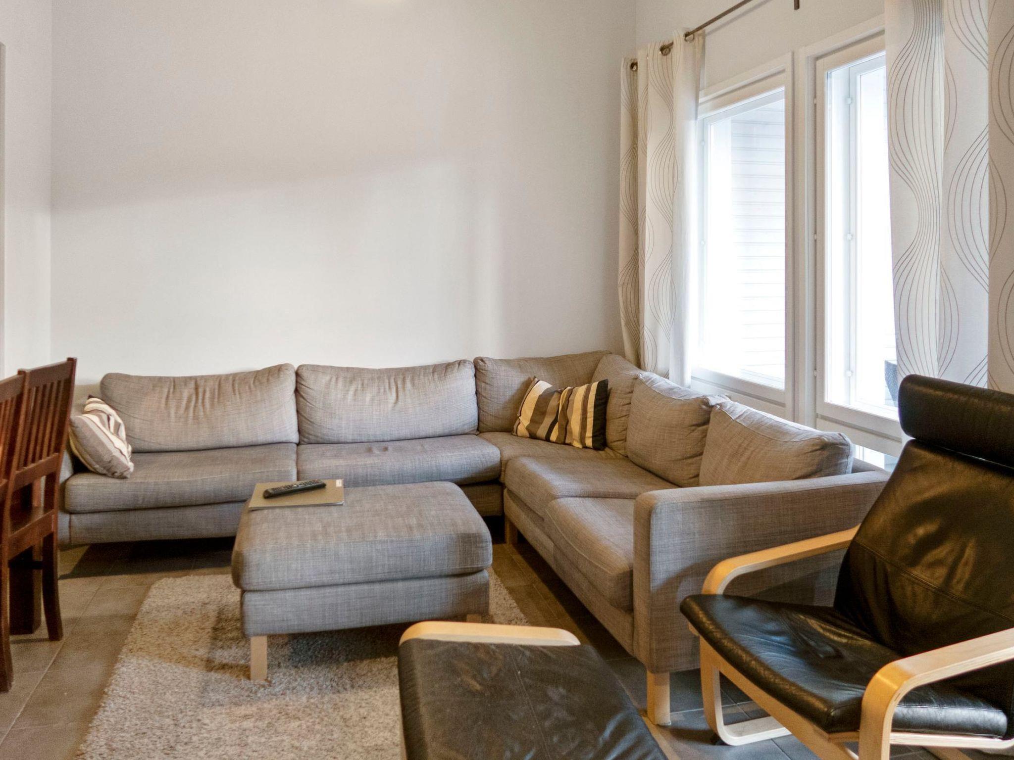 This luxury semi-detached house was completed in March 2013. Located near the Vuokatti skislopes. Floor area 97m². On the ground floor there is living room, kitchen, 2 bedrooms, sauna (electric heating), washroom / hydro massage bath, toilet and separate toilet. Upstairs: 2 bedrooms and toilet. Terrace. Internet connection (wireless 1Mb).