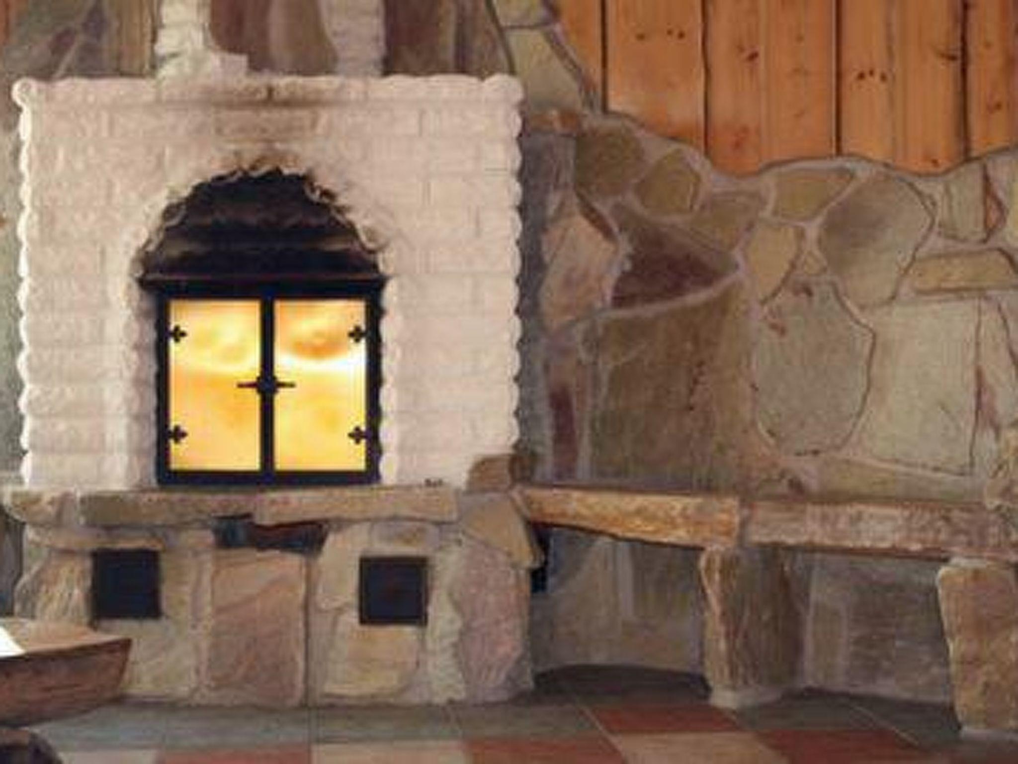 Downstairs sauna, bath room, room with fireplace and storage.
