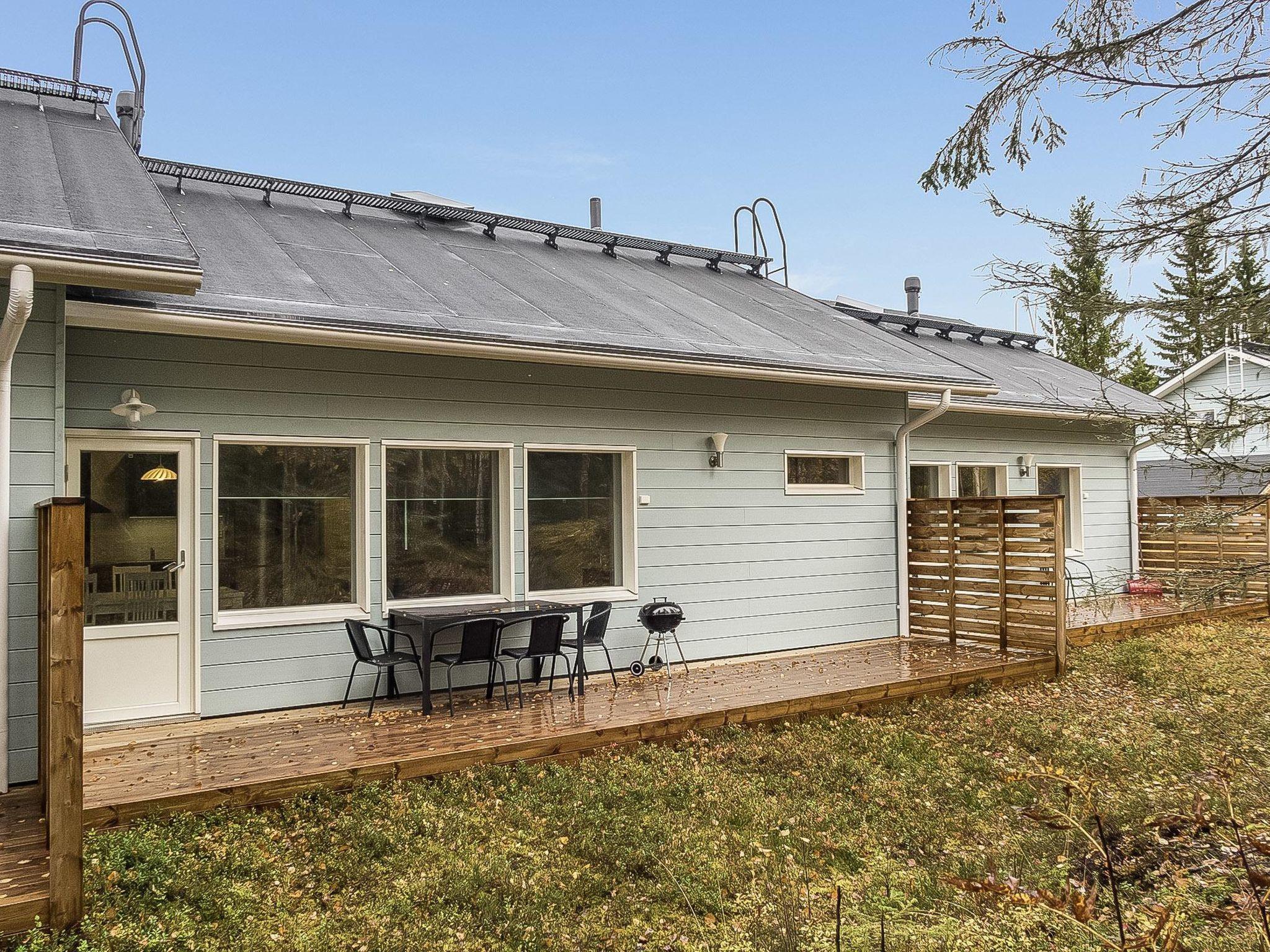 This row house apartment located middle in Vuokatti ski centre, completed in 2018. Floor area 82 m² on one floor. Combined living room & kitchen with sofa-bed for 1-2 persons. Two bedrooms, one with twin bed and one with separate beds for three. wc/shower (x2), sauna (electric heating), veranda, terrace.