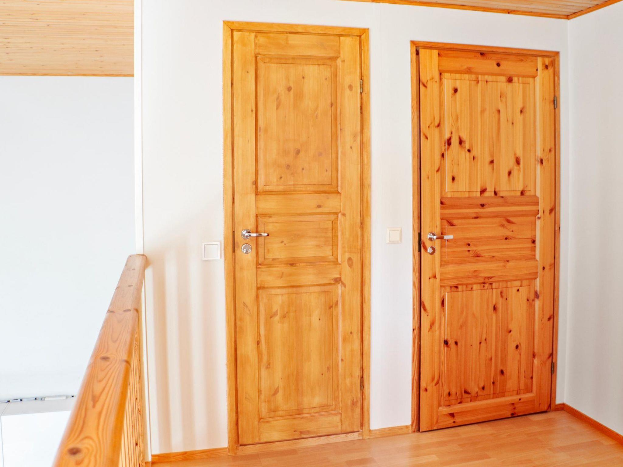 Living area is 75 m², loft 15 m². On the ground floor there is combined living room & kitchen and one bedroom with twin bed. Upstairs there is loft, two bedrooms, one with separate beds for two, and one twin bed and separate toilet. Sauna (electric heating), washroom, shower and toilet. Storage for a skis.