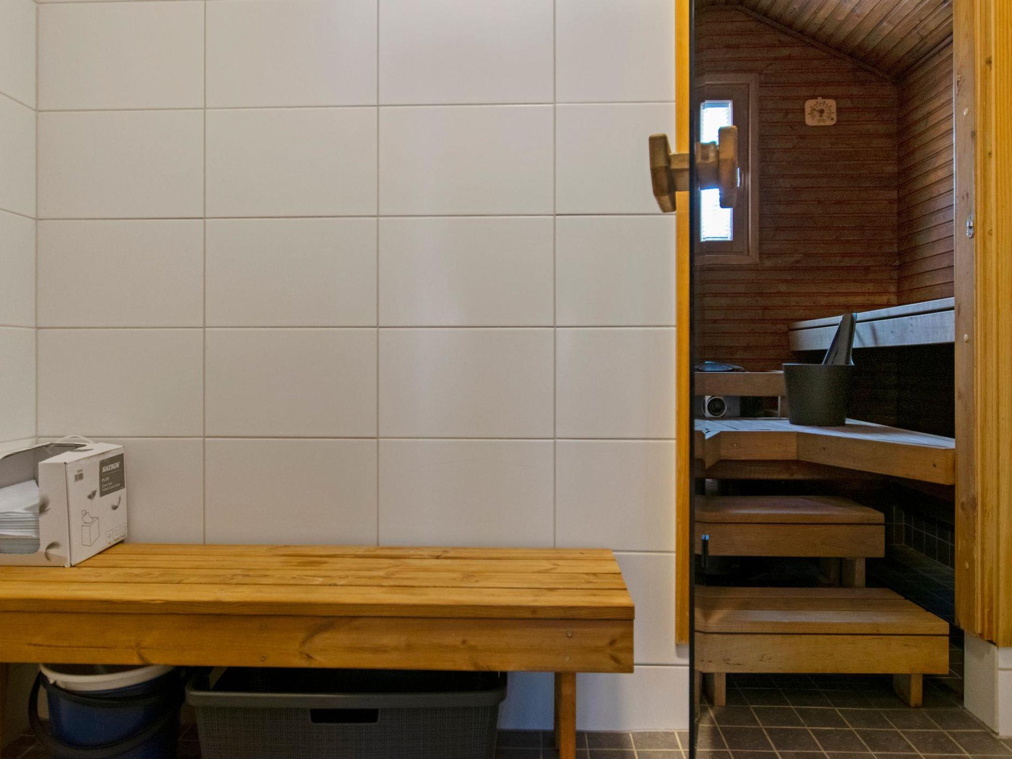Living area is 72,5 m². On the ground floor there is combined living room & kitchen and one bedroom with twin bed. Upstairs there are two bedrooms, both with separate beds for two. Open loft with sofabed for 1-2 persons, toilet. Sauna (electric heating), washroom, shower and separate toilet.