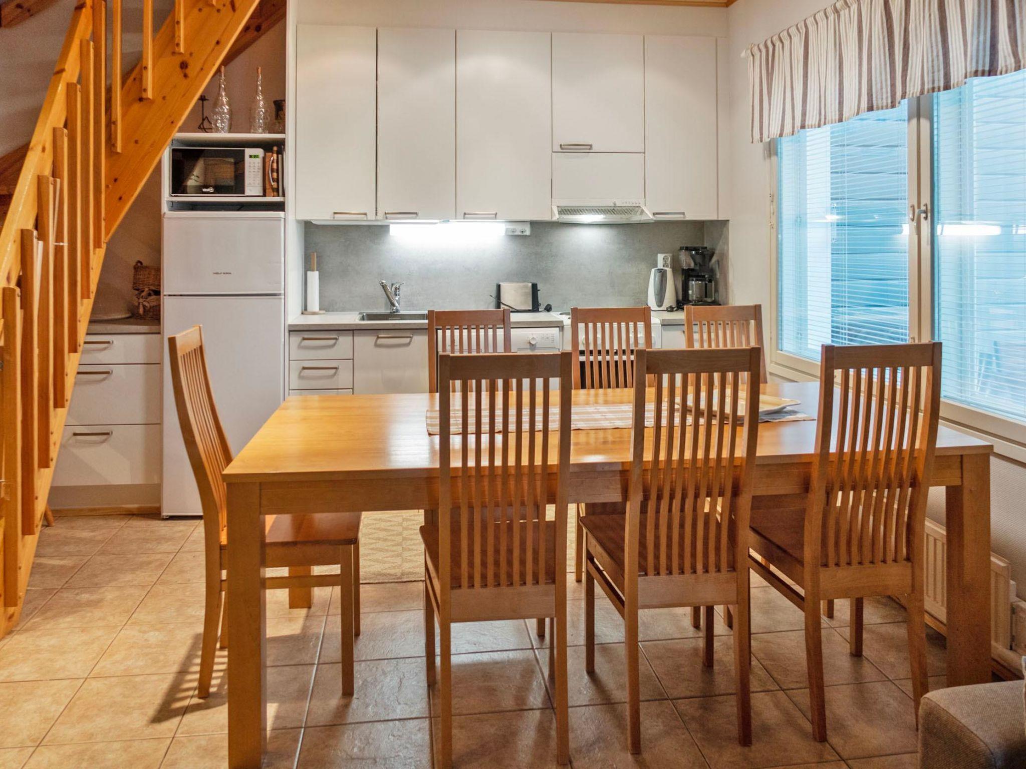 This wooden semidetached apartment was completed in 2003. It is located in Vuokatti ski centre.