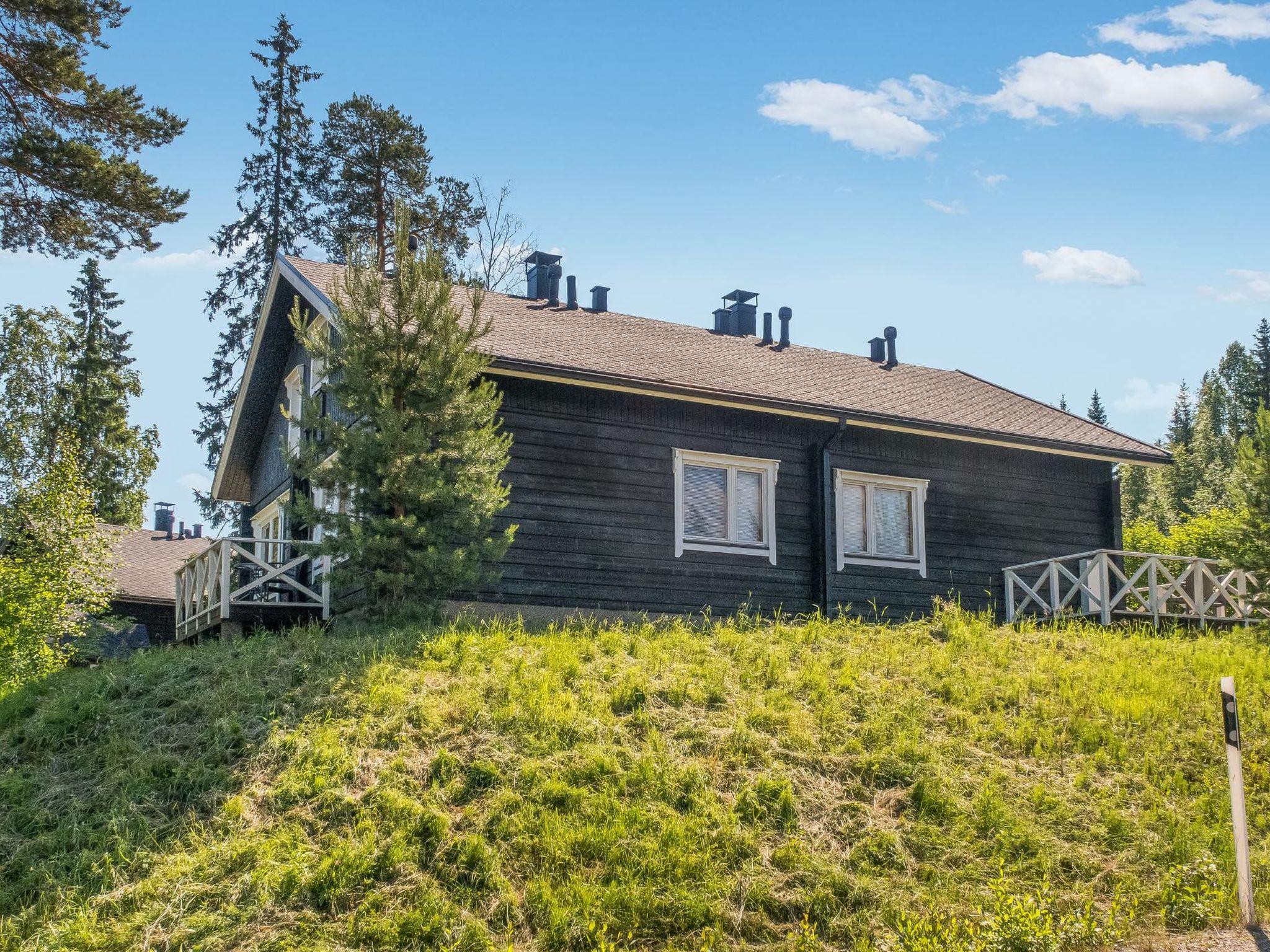 Semi-detached log apartment in the slope center of Vuokatti, built 2003. Area 74 m², inc. loft 14 m², living room / kitchen with sofa bed for 1-2, fireplace, bedroom with double bed. Sauna (electric heater), shower and separate toilet. Upstairs bedroom with twin beds, sleeping loft with twin beds and toilet.