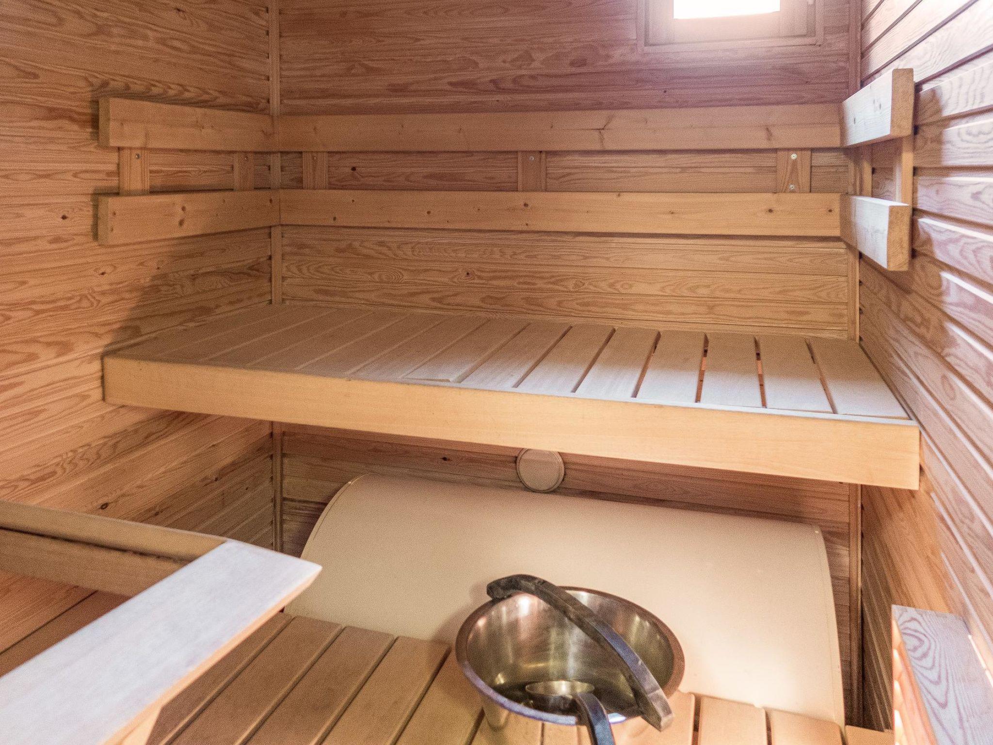 Living area: 36 m² + loft, kitchen/living room, dinning for 4 persons, bedroom with double bed. Open loft with two separate beds + 1 mattress (for child). Sauna (electric), shower/wc.