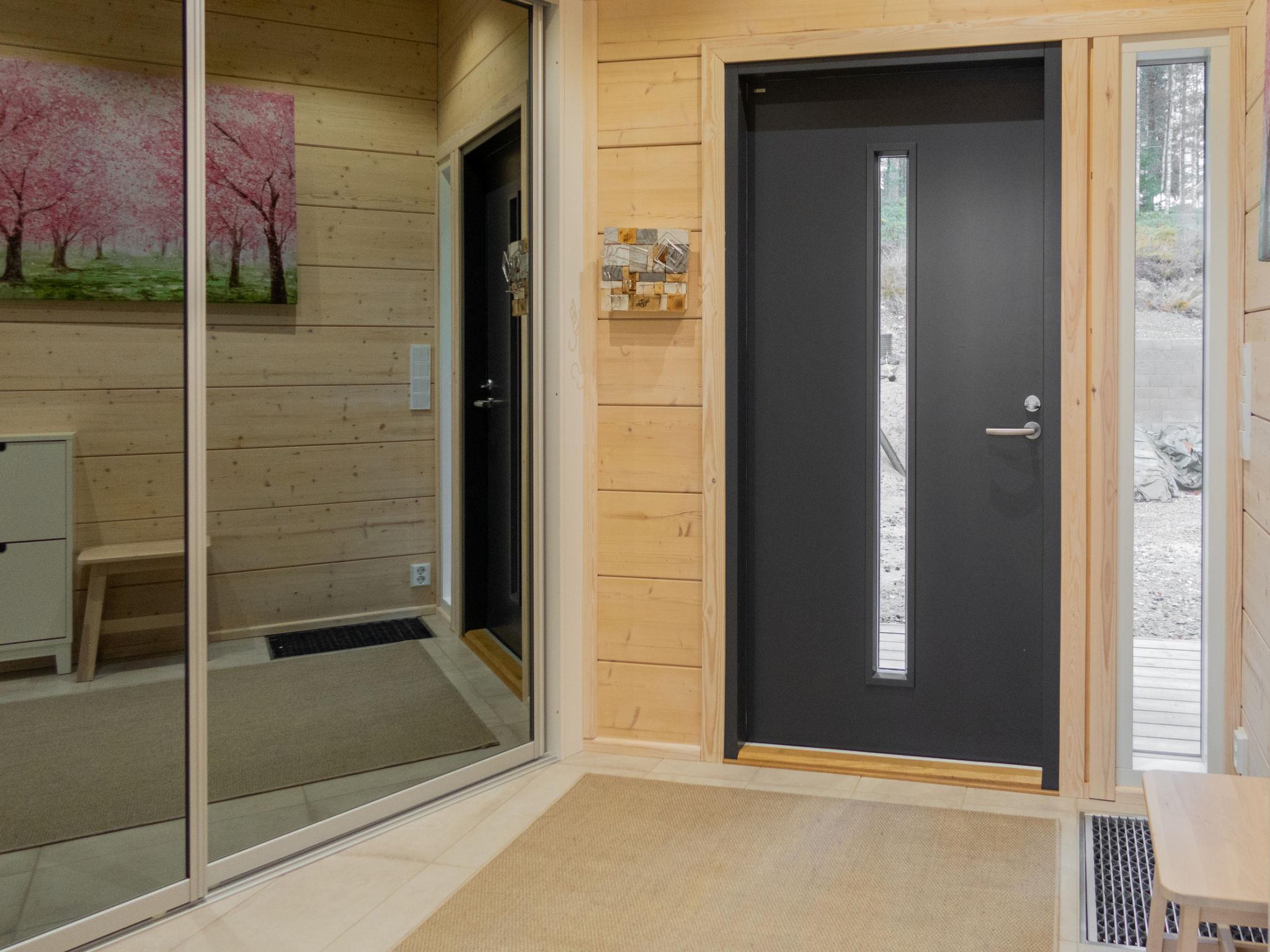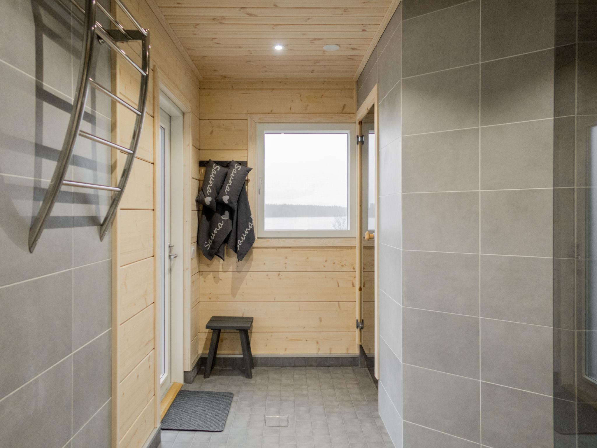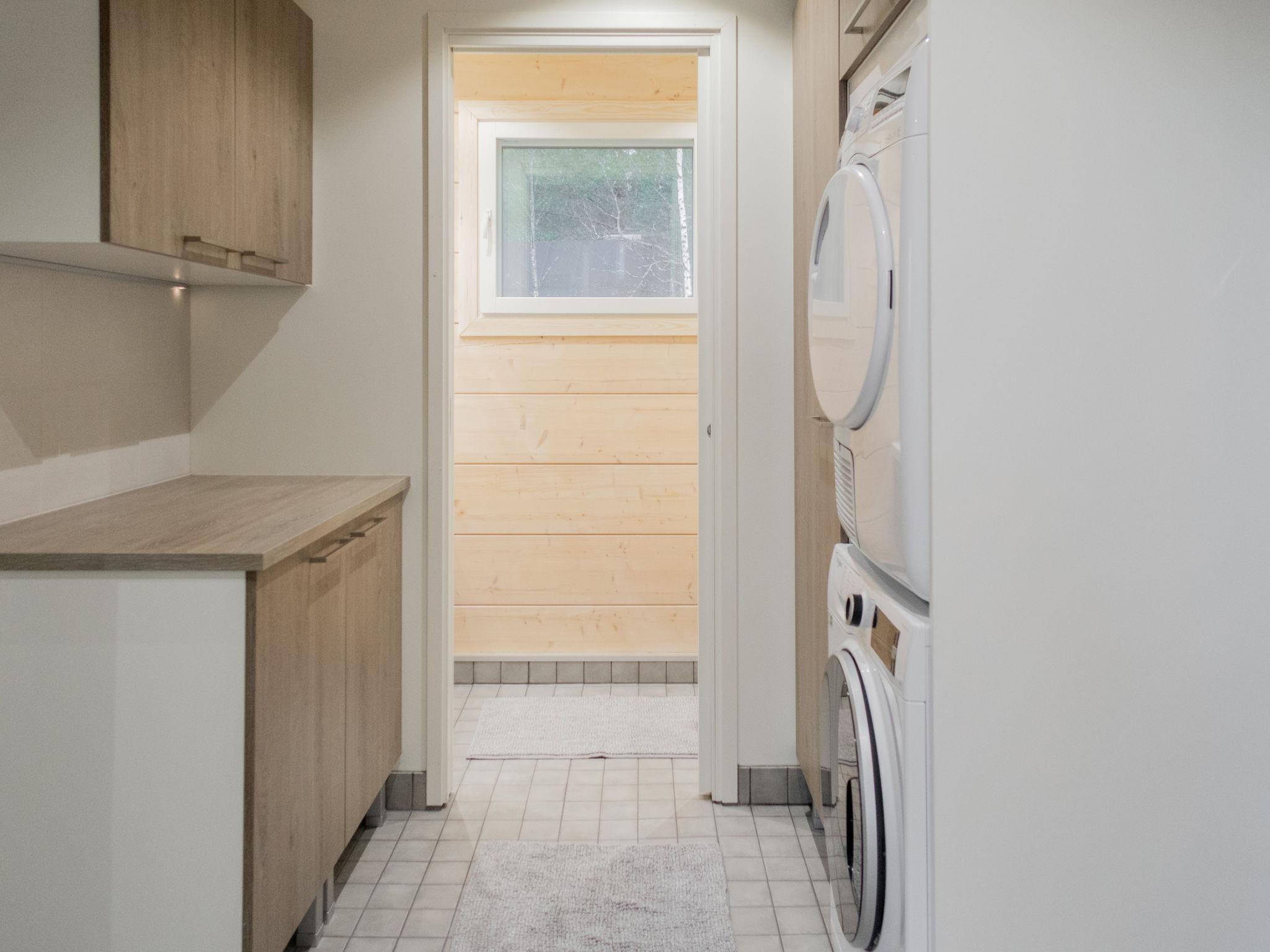 Access from the living room to the utility/dressing room (washing machine and tumble dryer), 2 x shower, sauna with electric sauna stove and large window facing the lake. Two separate toilets. There is also access to the terrace from the washing facilities. In terrace furnitures and gas grill. The drying cabinet is located behind the sliding door in the lobby.