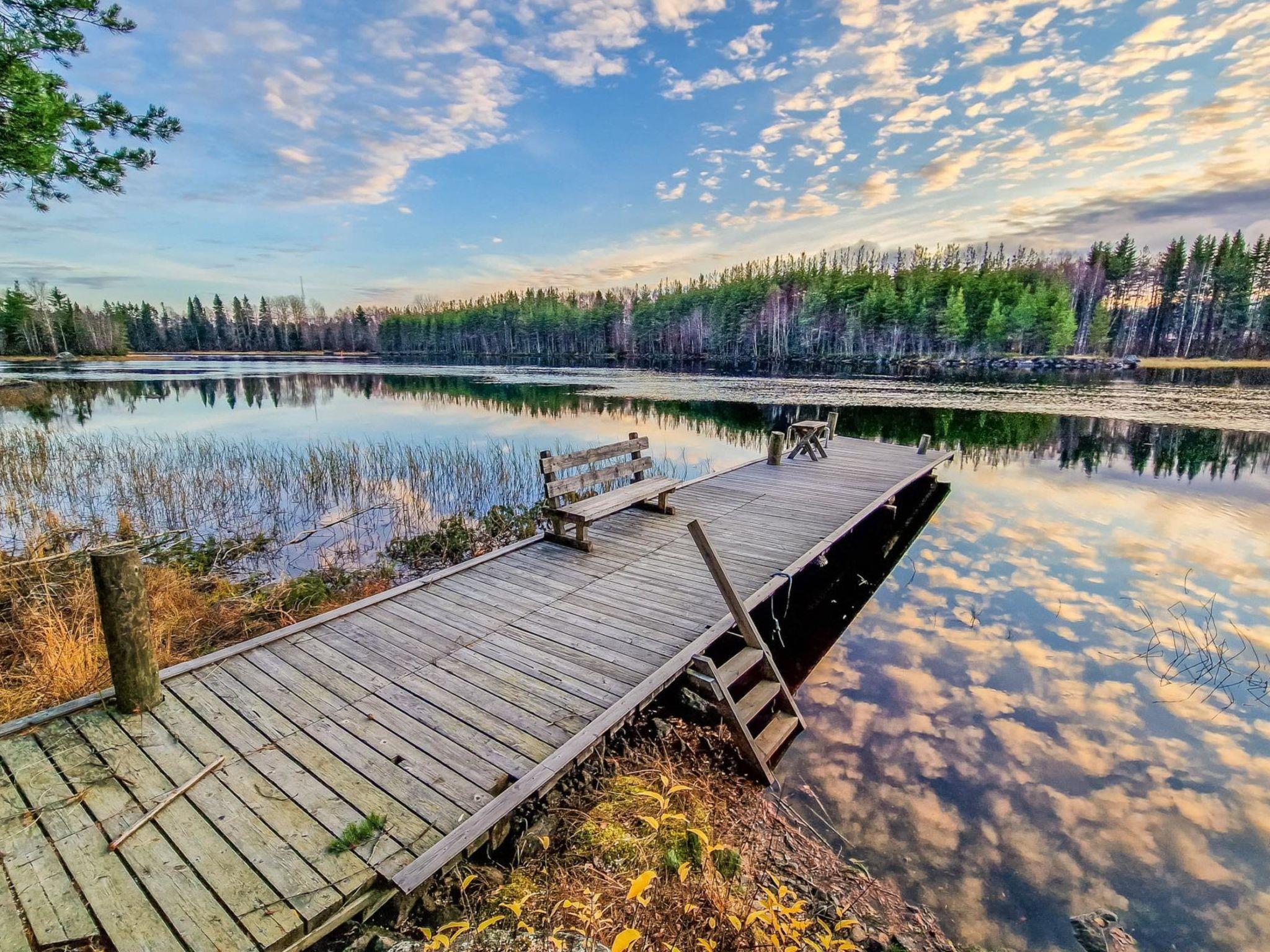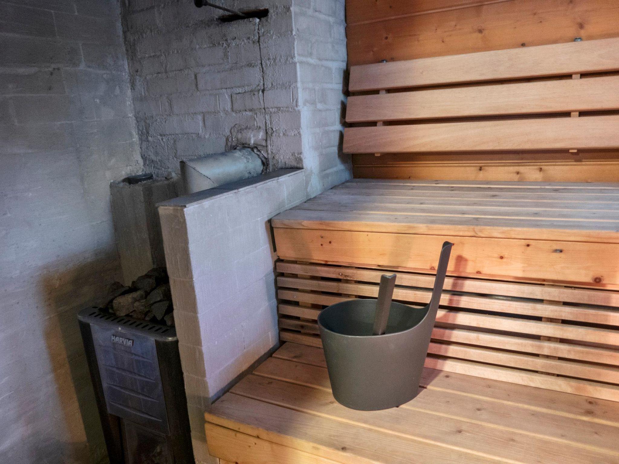 There is also a separate lakeside sauna with a wood-heated stove and cauldron. In connection with the sauna building, a small living area /dressing room. Sauna has electricity. Water to the sauna must be brought by using a bucket; in summer from the river, in winter from the cabin. Access to the sauna along a narrow path, no winter maintenance.