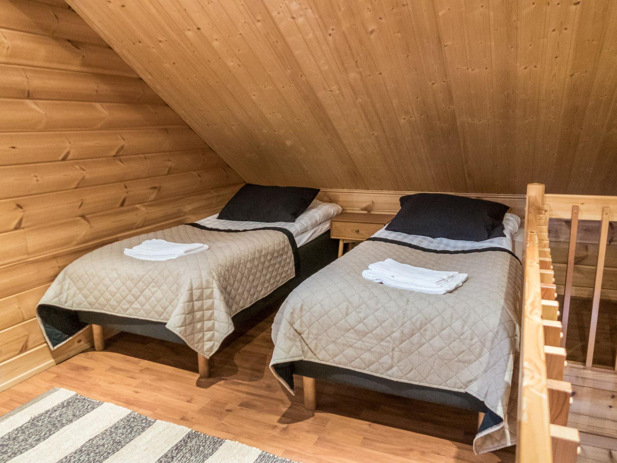 The area of ??the villa is 94 m² on two floors. Downstairs is a living-kitchen, two bedrooms, one with a double bed (160 cm), the other with separate beds for two (2 x 80 cm). Sauna, shower, separate toilet. Upstairs, a bedroom with separate beds for four (4 x 80 cm), a double bed (160 cm) in the mezzanine hall, toilet.