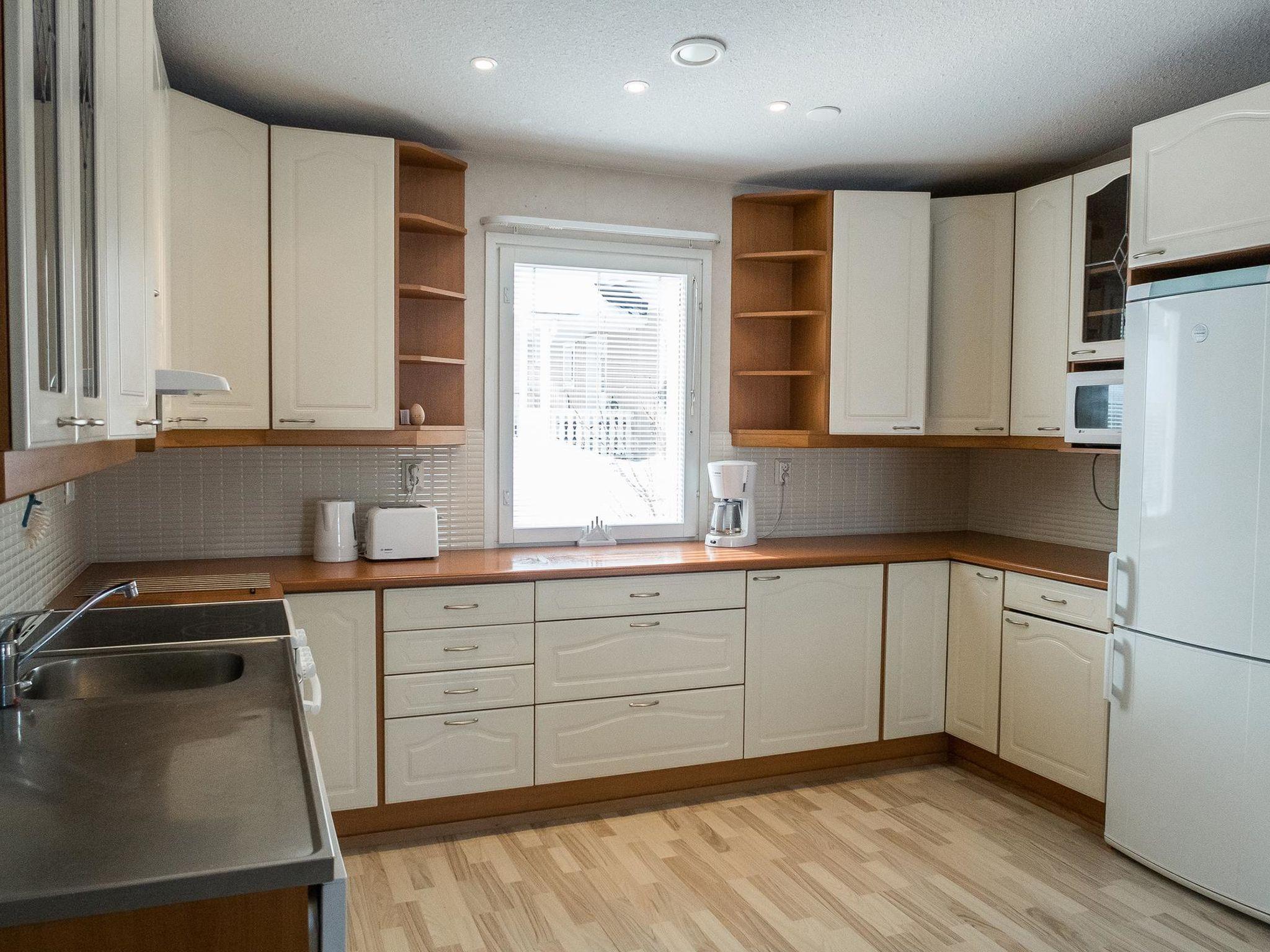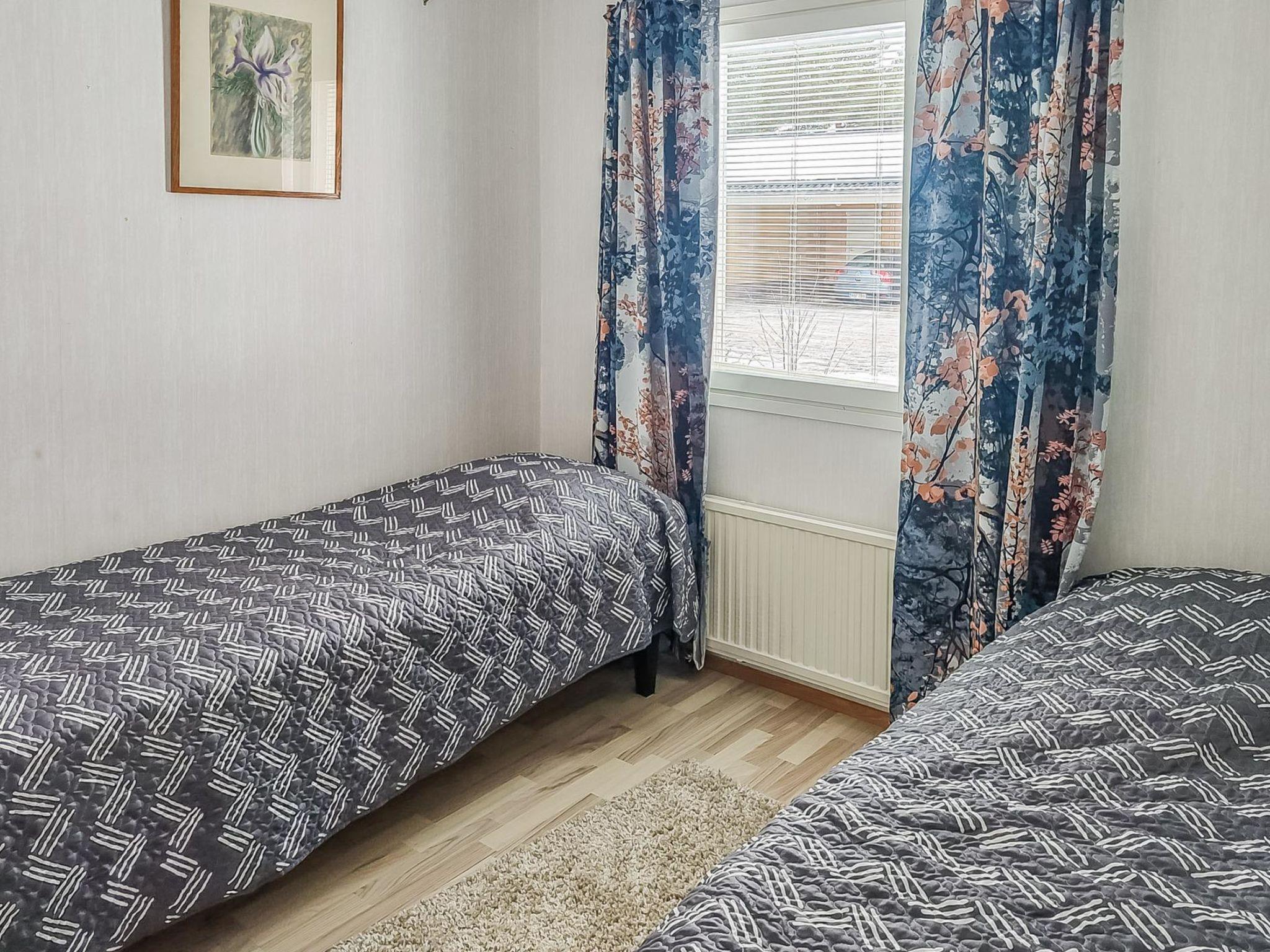 The total area of the apartment is 73 m², on one floor. Spacious living room/kitchen, dining group for 5 people, two separate bedrooms, one with a double bed (motor bed) and another with separate beds for 2. In addition, a folding bed/mattress as an extra bed, mainly for a child. Sauna (electric sauna stove), shower corner and utility room with access to the covered back terrace.