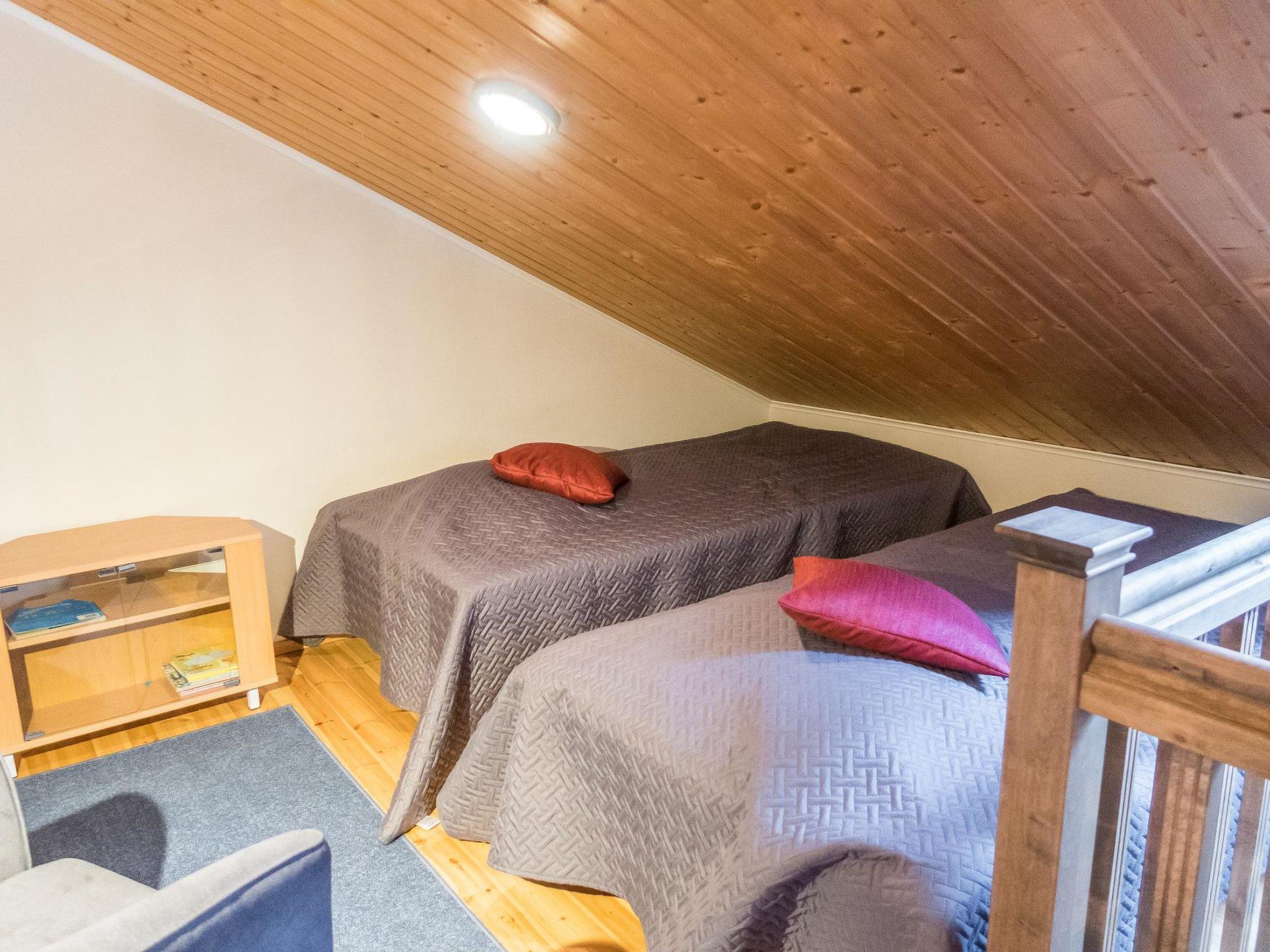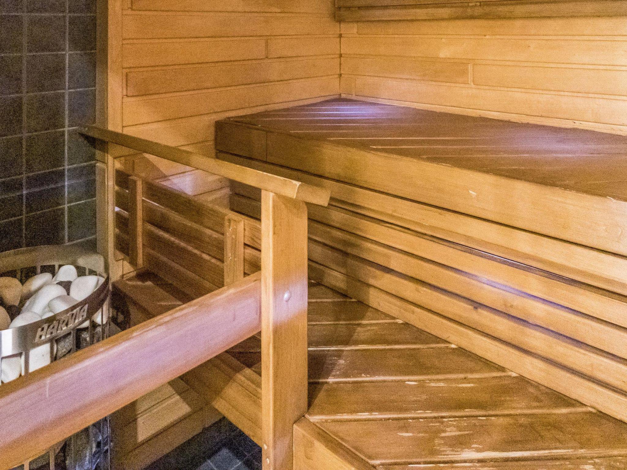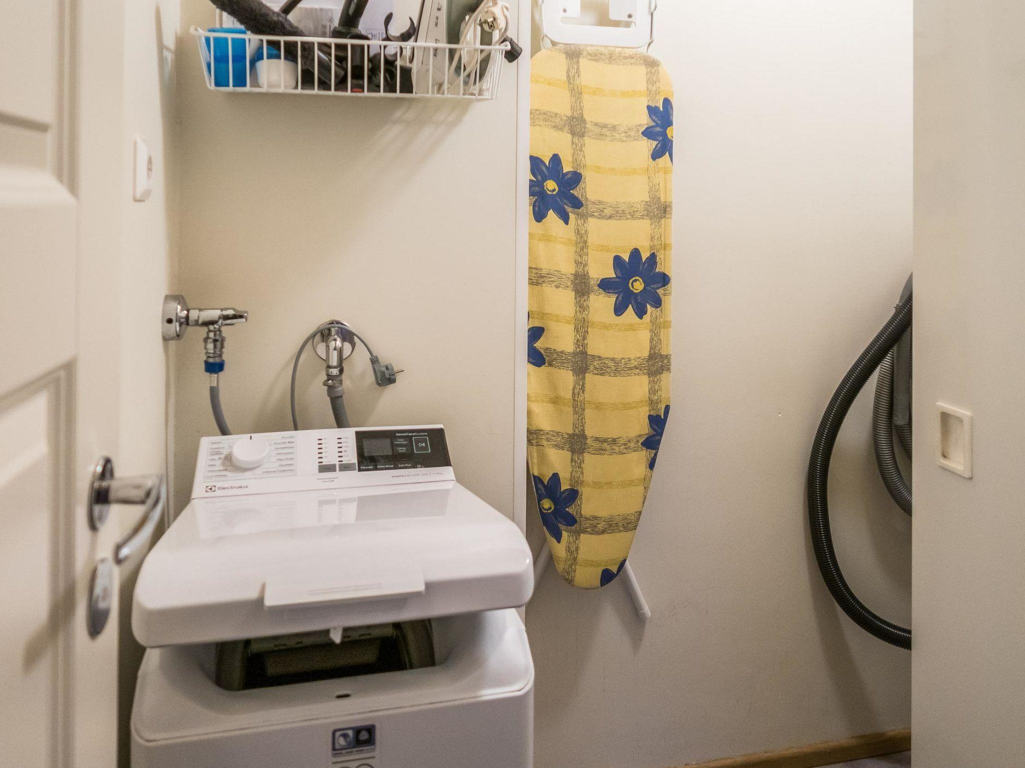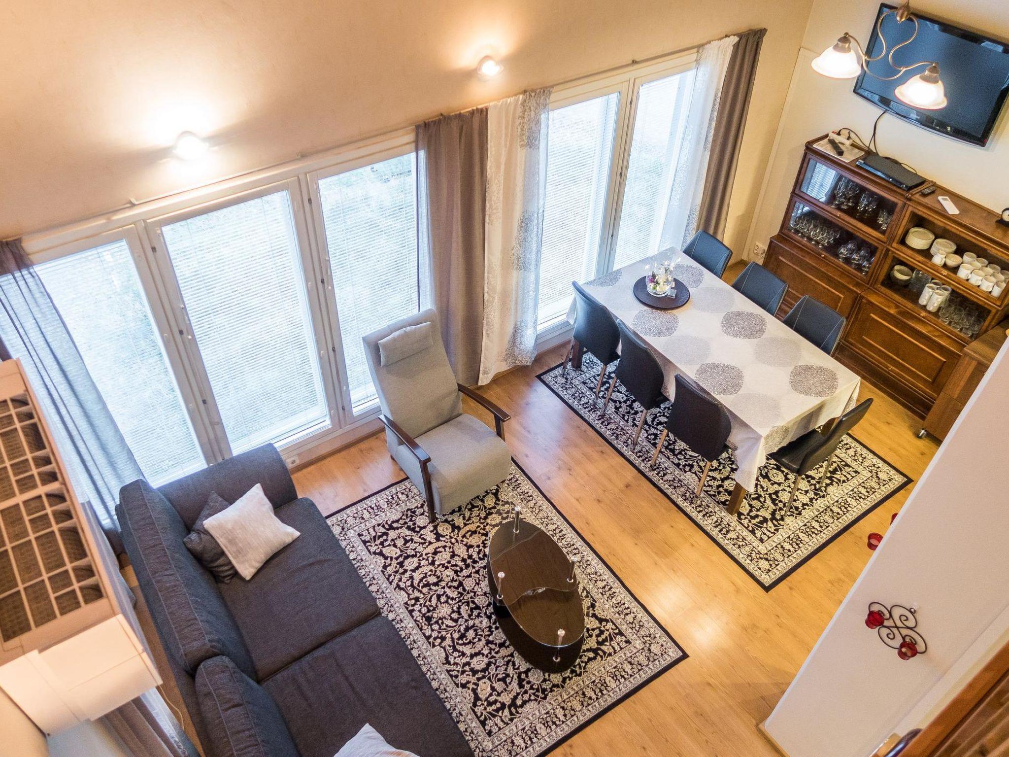 Total area approx. 112 m², on three floors. On the middle floor, an open kitchen and living room, a dining set for 6-8. A bedroom with a double bed (160 cm). Separate toilet. In the open loft, separate beds for 4 (2 x 80 cm and 2 x 110 cm beds), the loft is open space. On the lowest floor, a room with a fireplace, with a sofa bed for 1-2 as an alternative bed, and a bedroom with a double bed (160 cm). Washroom/toilet and sauna (electric stove), in addition a small utility room (washing machine, cleaning equipment). There is a drying cabinet in the airing cupboard downstairs. In connection with the middle floor, a terrace/balcony with garden furniture and an electric grill (in use during the summer).