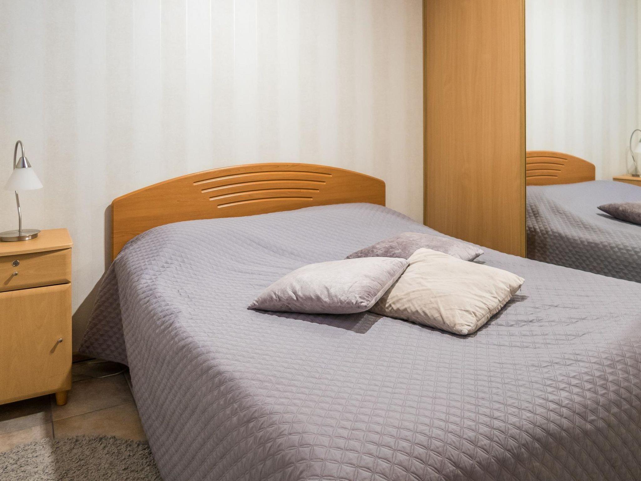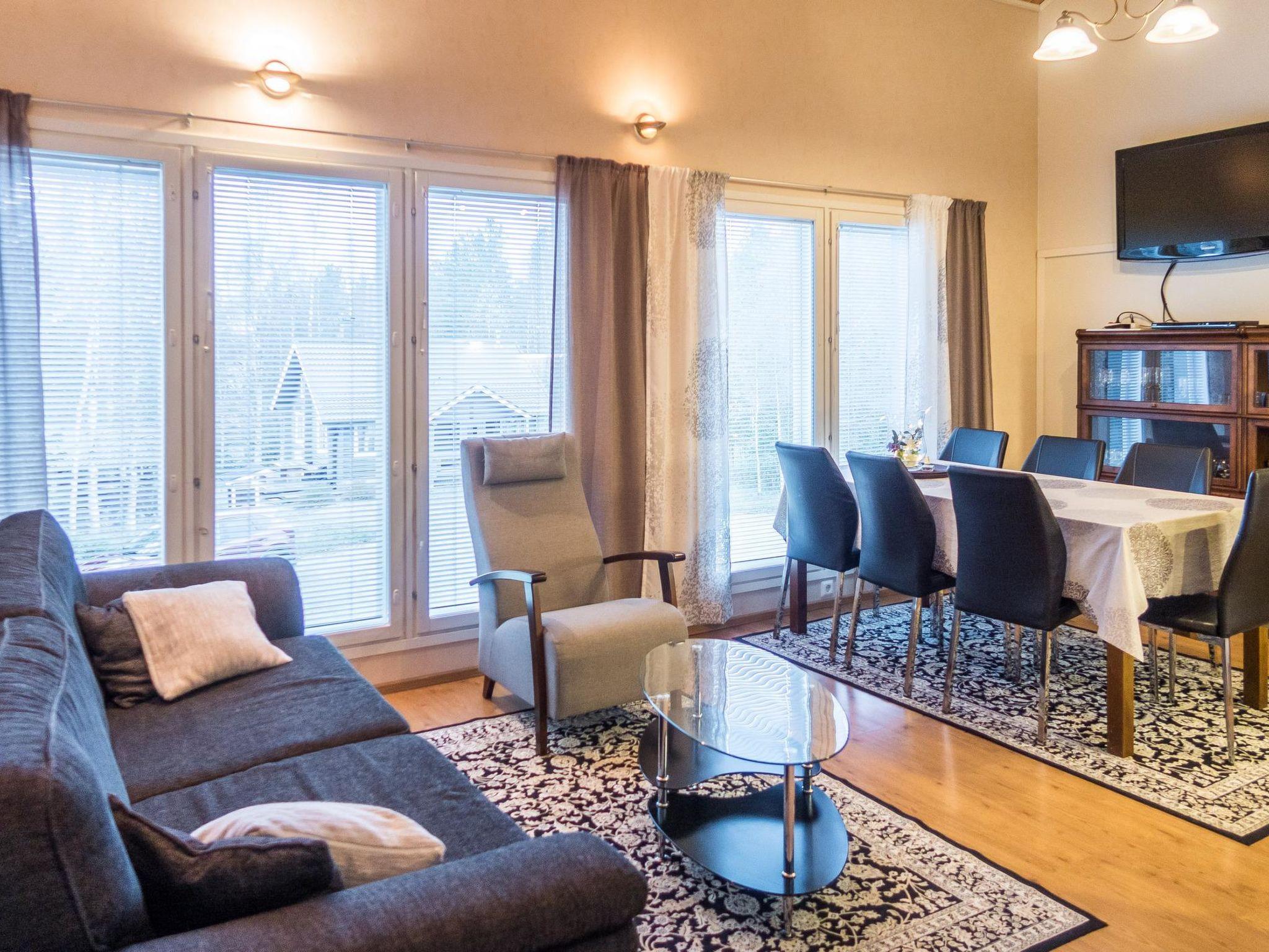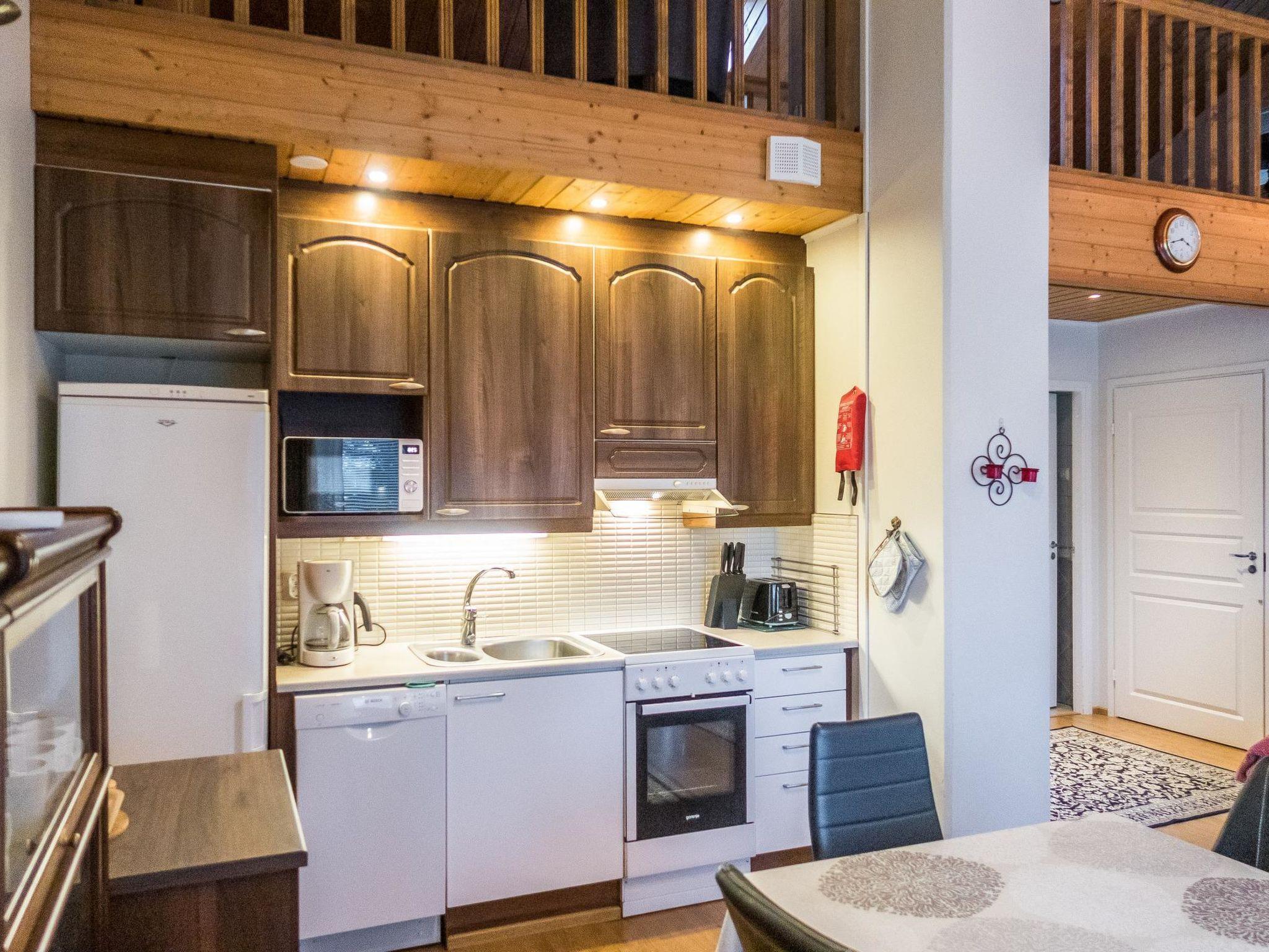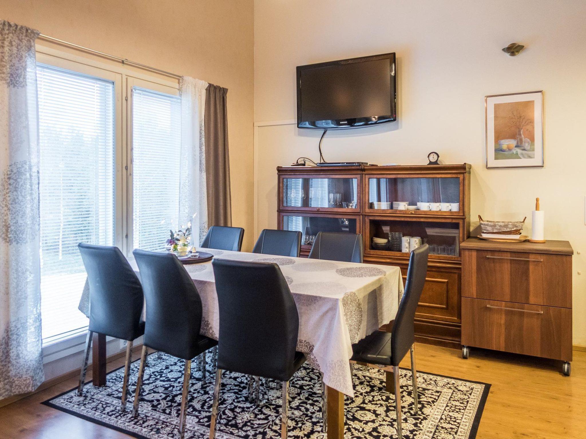 Total area approx. 112 m², on three floors. On the middle floor, an open kitchen and living room, a dining set for 6-8. A bedroom with a double bed (160 cm). Separate toilet. In the open loft, separate beds for 4 (2 x 80 cm and 2 x 110 cm beds), the loft is open space. On the lowest floor, a room with a fireplace, with a sofa bed for 1-2 as an alternative bed, and a bedroom with a double bed (160 cm). Washroom/toilet and sauna (electric stove), in addition a small utility room (washing machine, cleaning equipment). There is a drying cabinet in the airing cupboard downstairs. In connection with the middle floor, a terrace/balcony with garden furniture and an electric grill (in use during the summer).