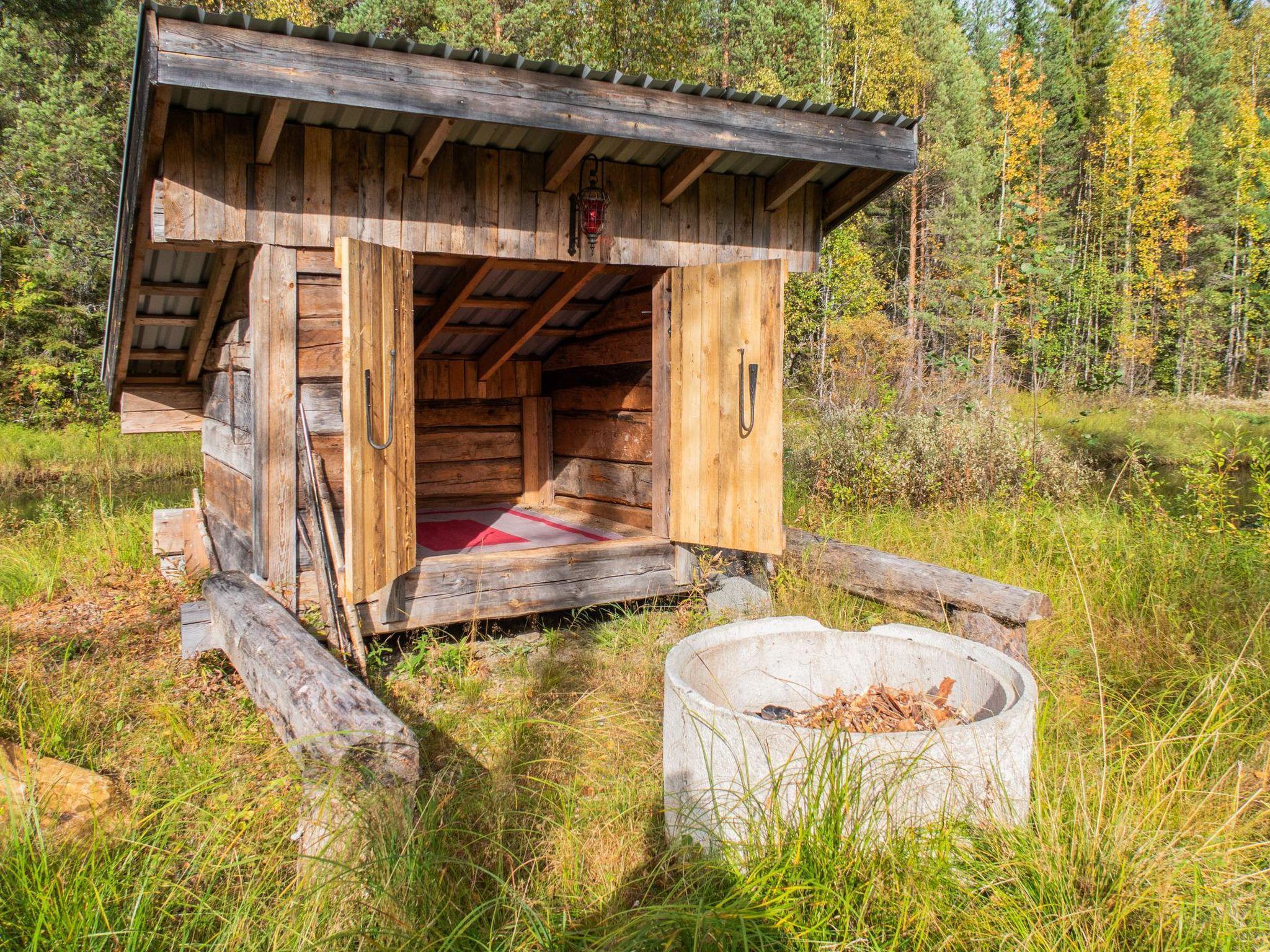 Wood-heated sauna (hot water from the heater) + dressing room. Access to the stream from the sauna is via stairs, and at the end of the stairs is a platform / terrace and a ladder. The courtyard sauna is available all year round. Note the stream is not suitable for swimming (natural mud bottom). On the beach there is a campfire place and a porch with a door. A rowing boat is available to get to Sapsojärvi (distance approx. 400 m), if you are boating, please bring your own life jackets. At the end of the stream, at the head of the promontory on the Sapsojärvi side, there is a good sandy swimming spot available (with another cabin), there are old buildings on the beach that are not used by tenants, but you can otherwise use the beach freely.