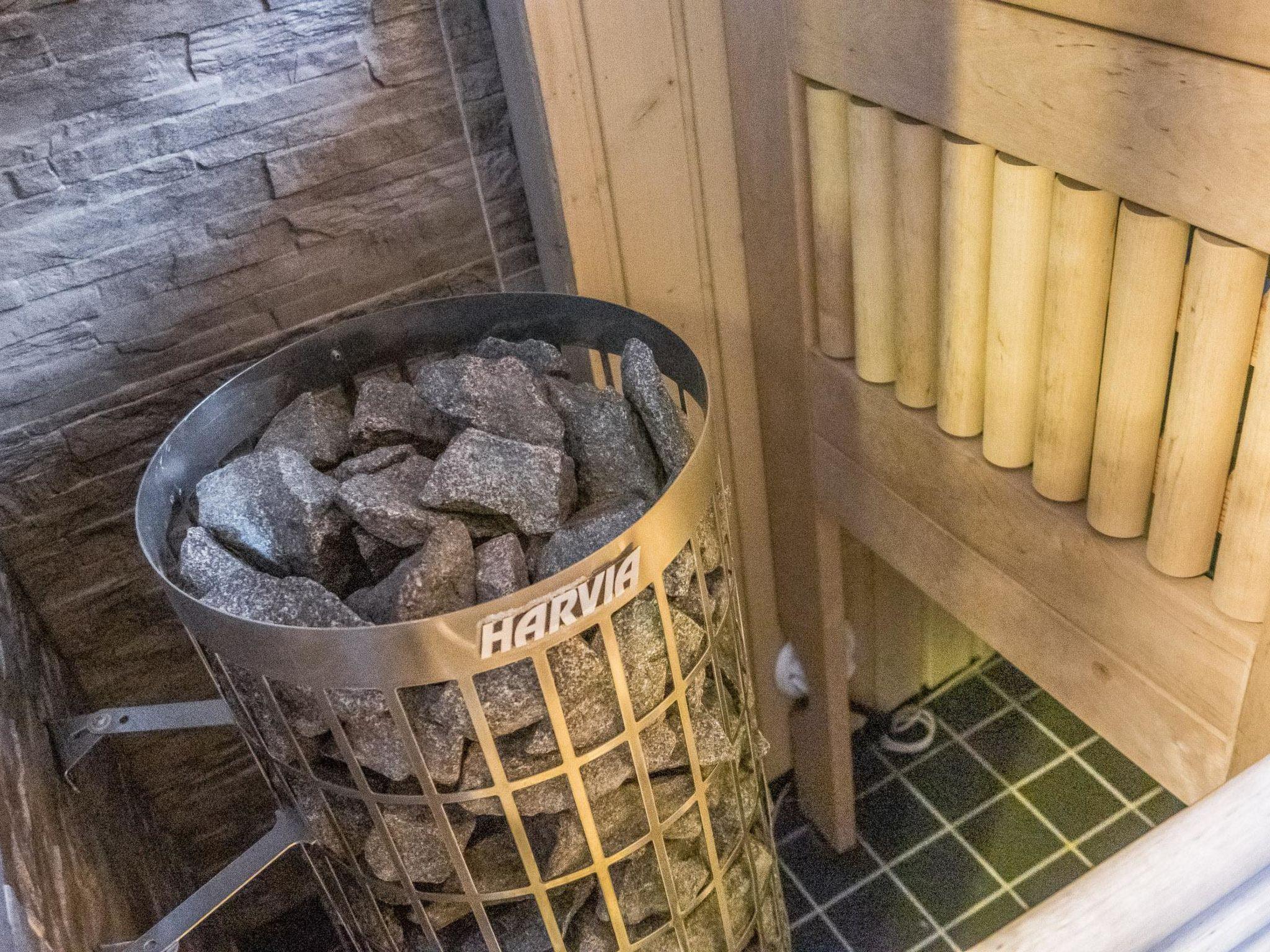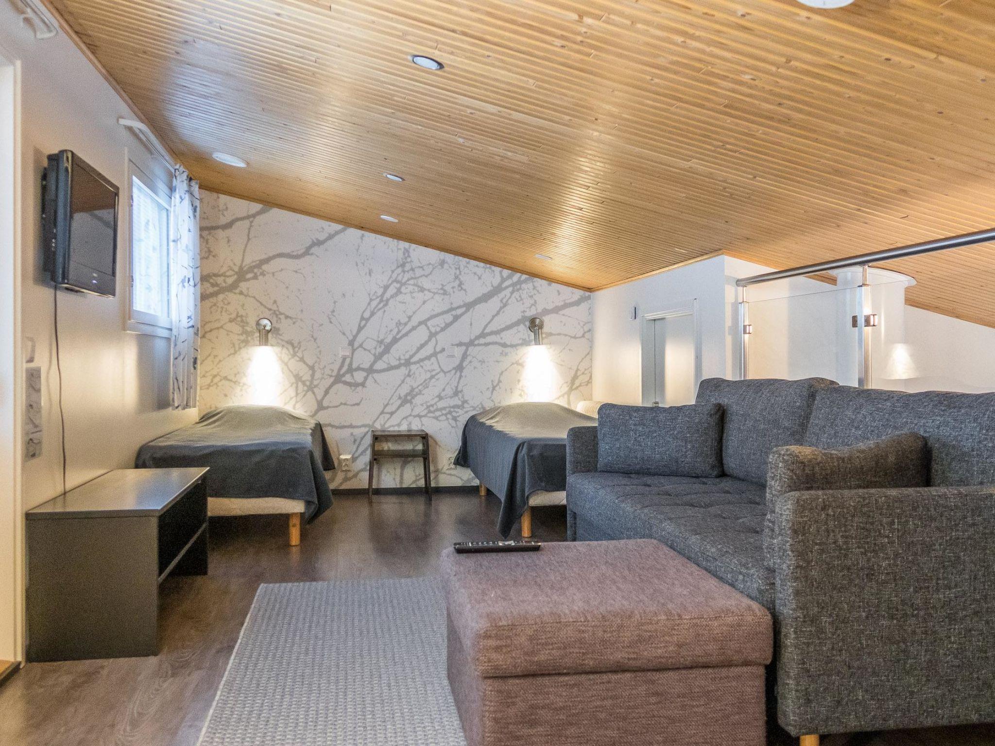 The Vuokatinranta Suite apartment is 113 m², on two floors. Downstairs, a bright and spacious living room kitchen with a cozy fireplace, a dining table for 6-8 people (extra chairs). Two bedrooms, both with beds for 2. From the living room, easy and sturdy stairs lead up to the loft, where there are separate beds for 4. A sofa bed that can be spread out as an extra bed in the loft for 1-2 guests. Access from the loft to a glazed balcony with wooden outdoor furniture. Relaxation and a cottage holiday are crowned by an atmospheric sauna with a Harvia stone tower electric stove, two showers in the washroom, and a toilet in the washroom. Access to a separate toilet space from the hall. A drying cabinet in the air cupboard.