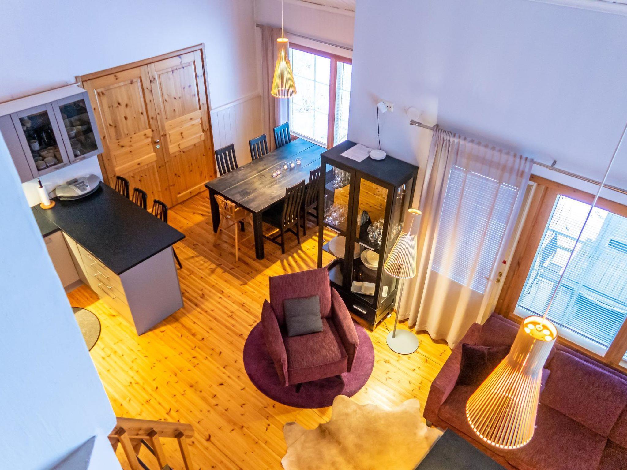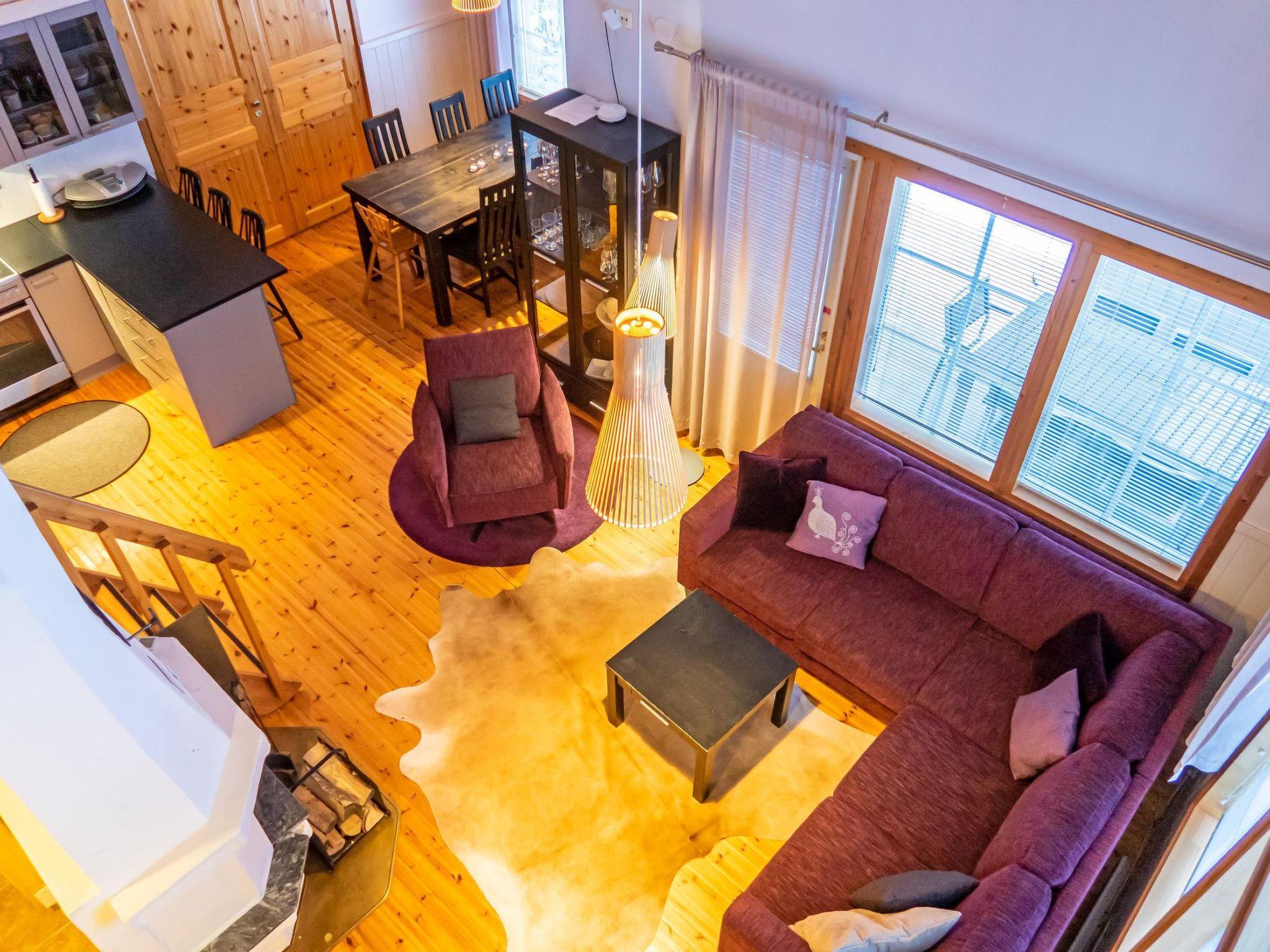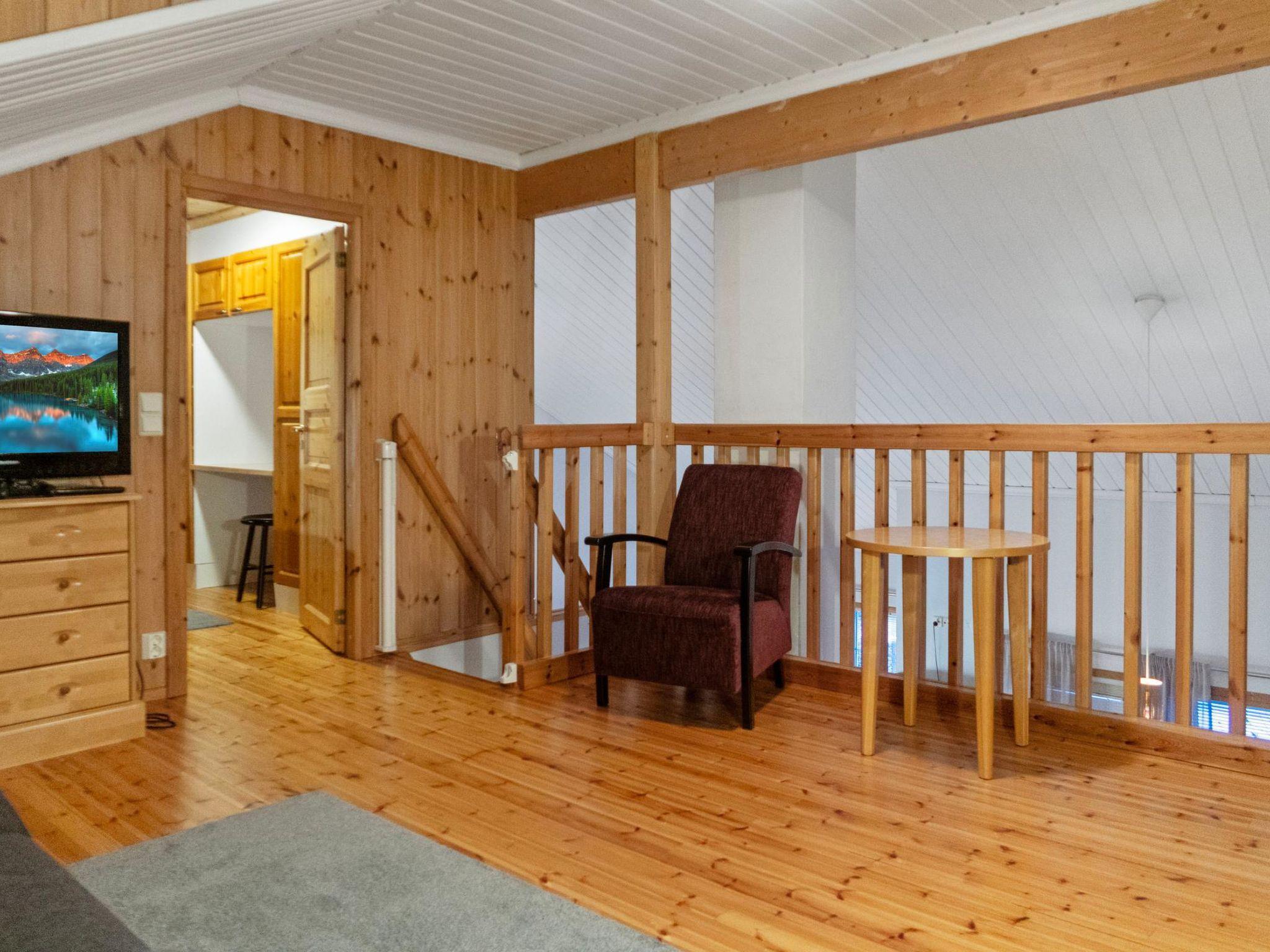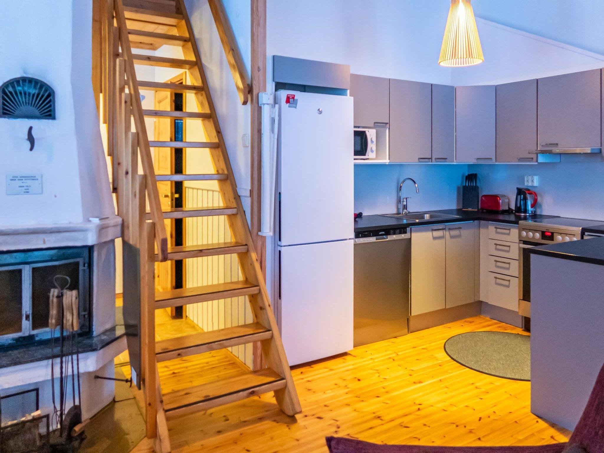 The Katinkulma 2 apartment has a total of 75 m² of space including a loft. Spacious living room / living room with a U-shaped kitchen, dining area with a dining group for 6, a cozy fireplace adds atmosphere. Downstairs, a bedroom with a double bed. Steep stairs to the loft, with a sofa bed for 1-2. Access from the loft to the bedroom with a double bed. Access from the loft to the balcony as well. Shower/wc, sauna (electric heater), porch and garden furniture for 4, view of the pond / Vuokatti slopes from the apartment. Särkinen pond 30 m, shared beach. There is a road between the beach and the holiday home (a ski track in winter).