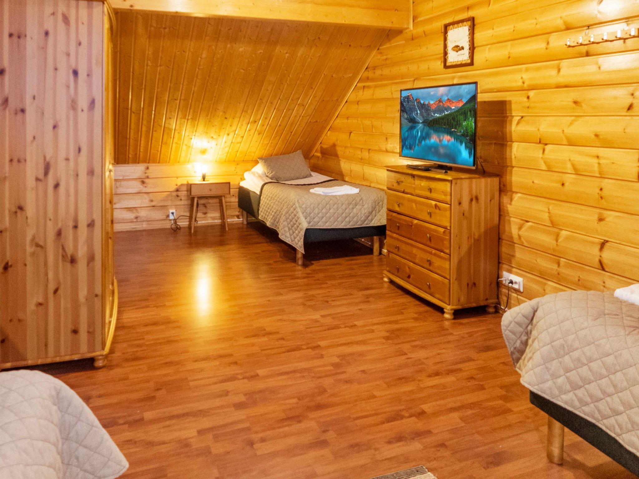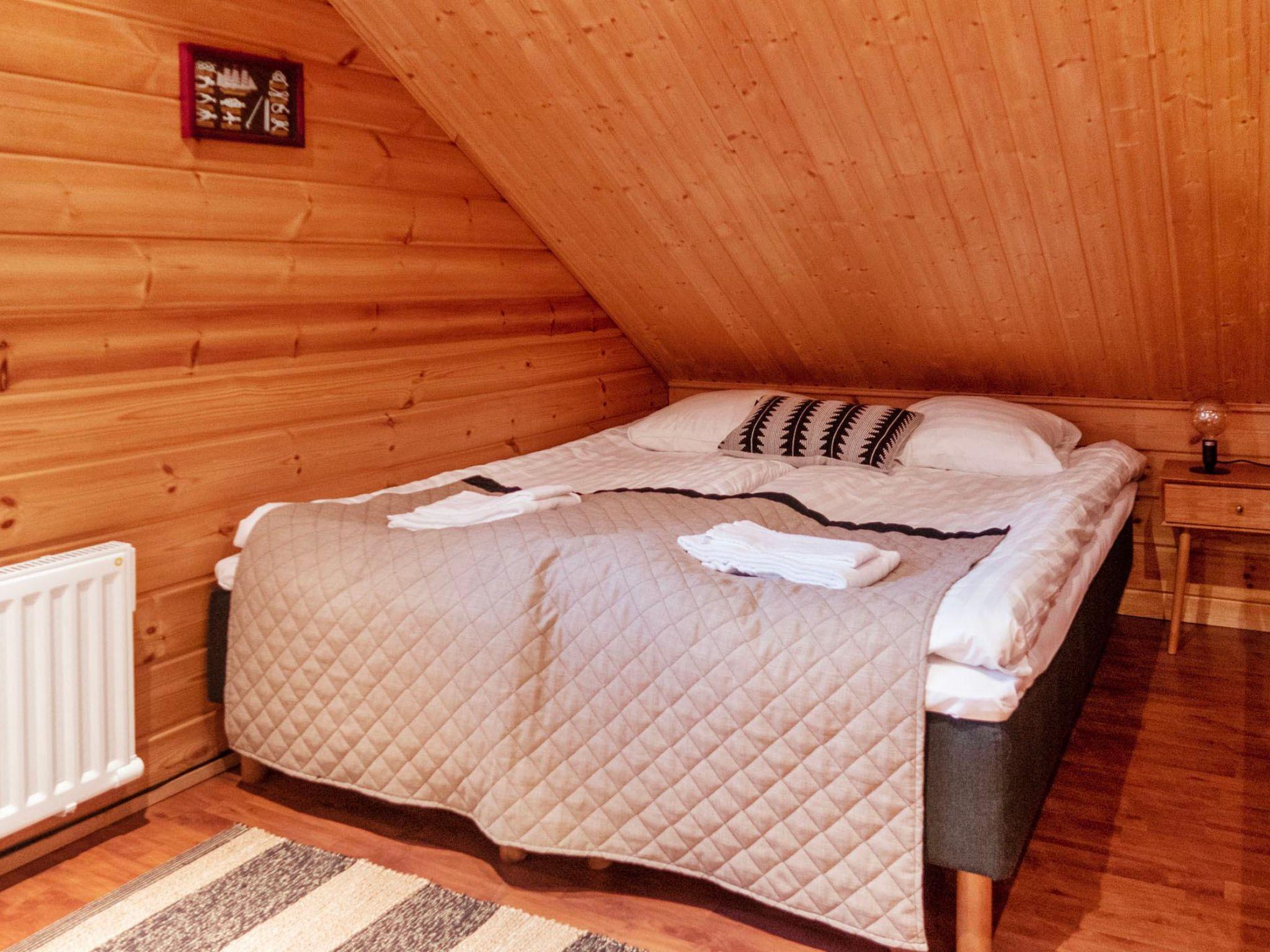 The area of ??the villa is 94 m² on two floors. Downstairs is a living-kitchen, two bedrooms, one with a double bed (160 cm), the other with separate beds for two (2 x 80 cm). Sauna, shower, separate WC. Upstairs, a bedroom with separate beds for four (4 x 80 cm), a double bed (160 cm) in the mezzanine hall, WC.